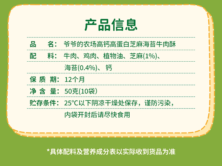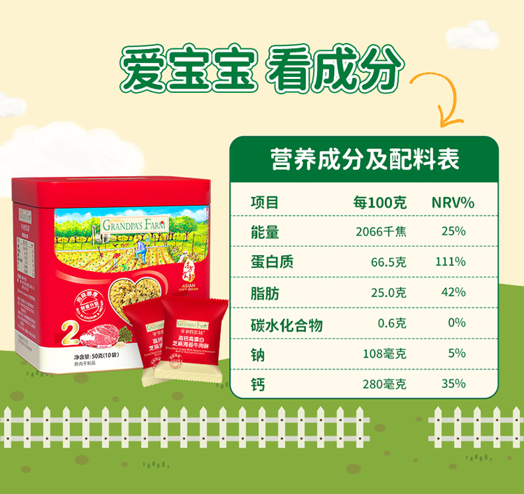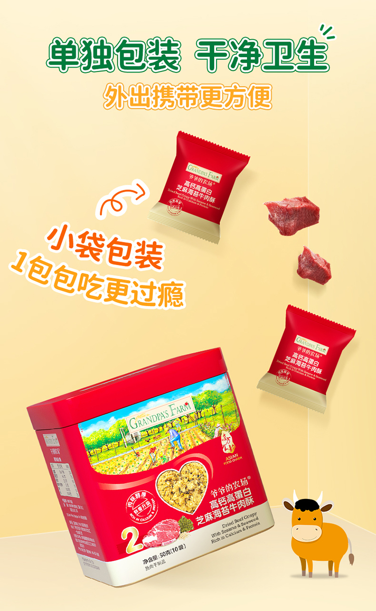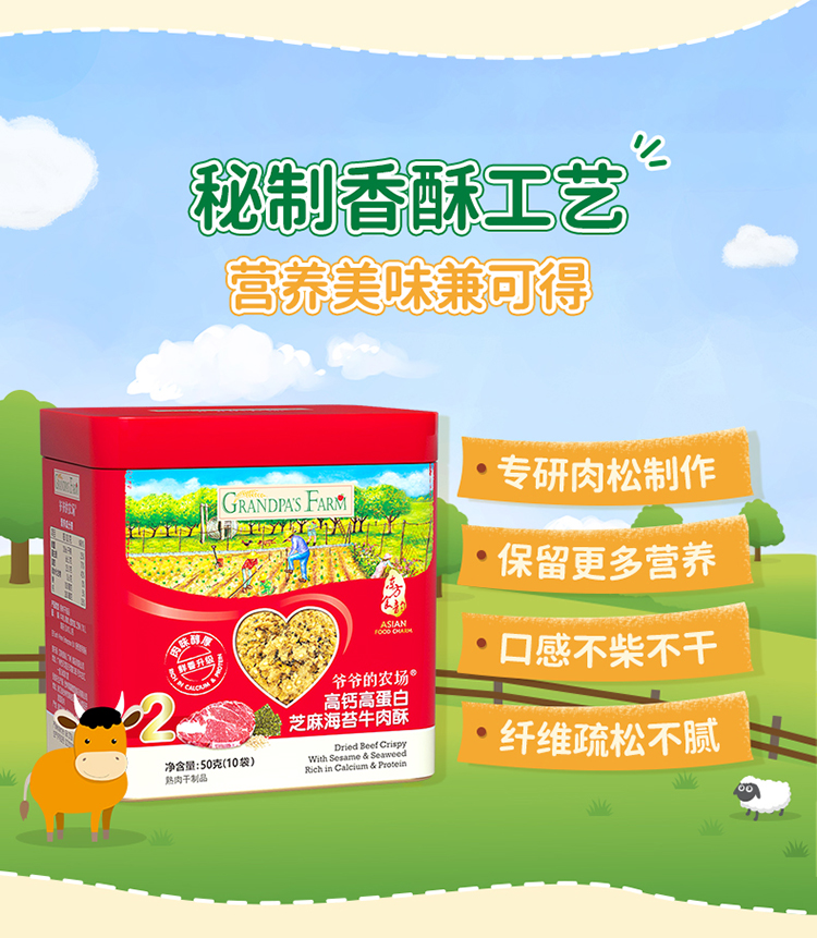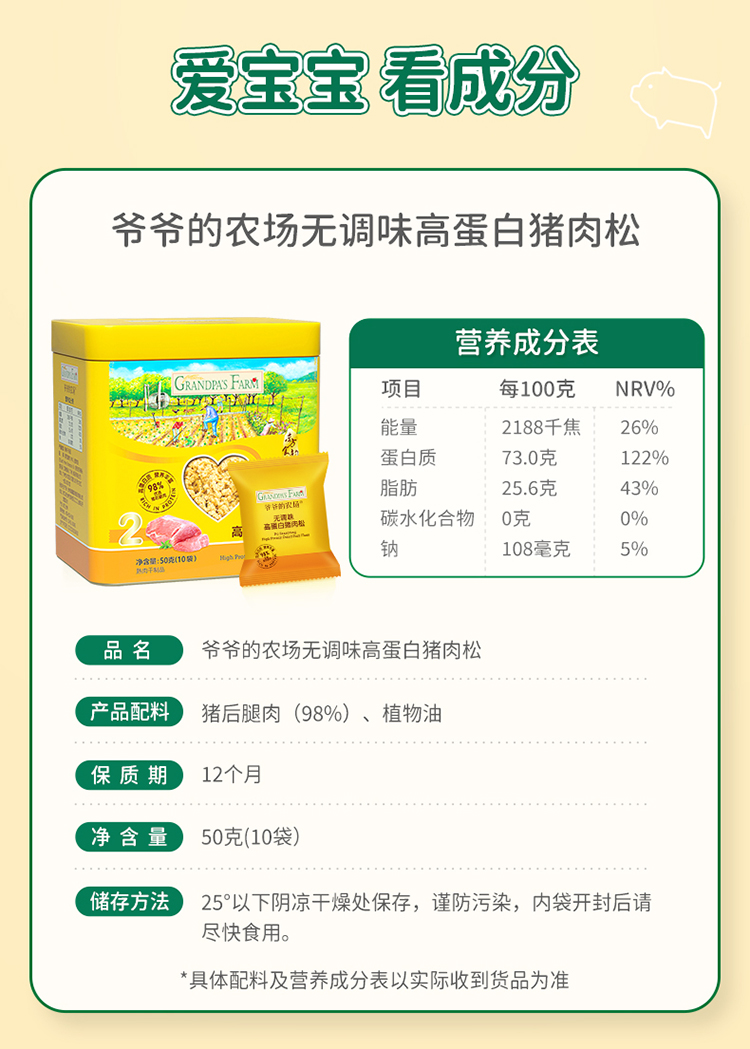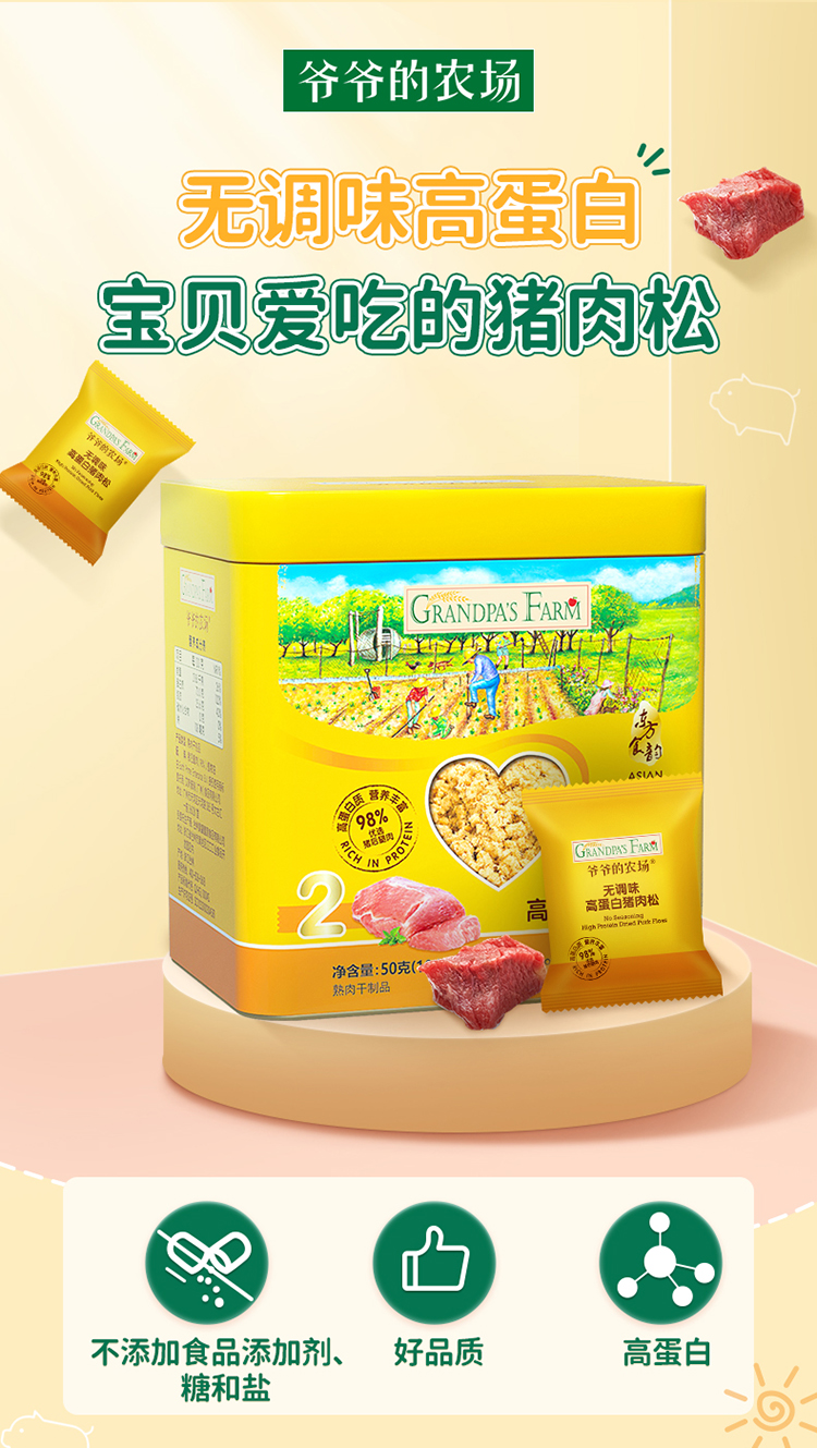 爷爷的农场无调味高蛋白猪肉松50g/芝麻海苔高蛋白牛肉酥/YNC-940199/940182