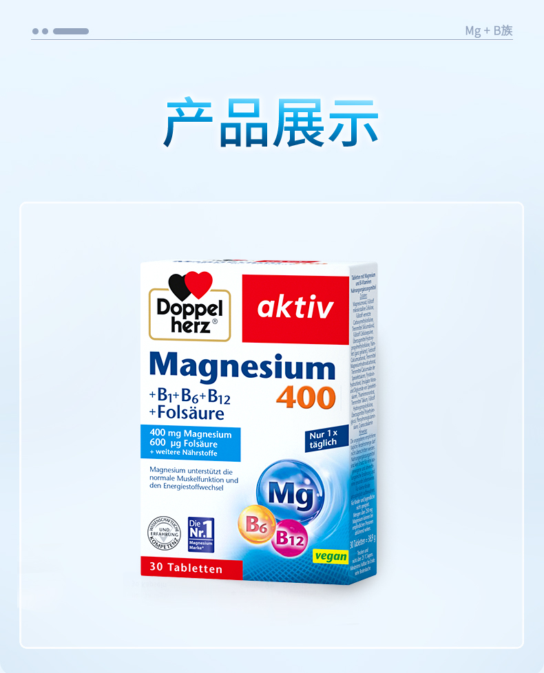 【德国双心】镁+维生素B族营养片成人复合维生素b族矿物质综合镁补充剂30粒 三盒装