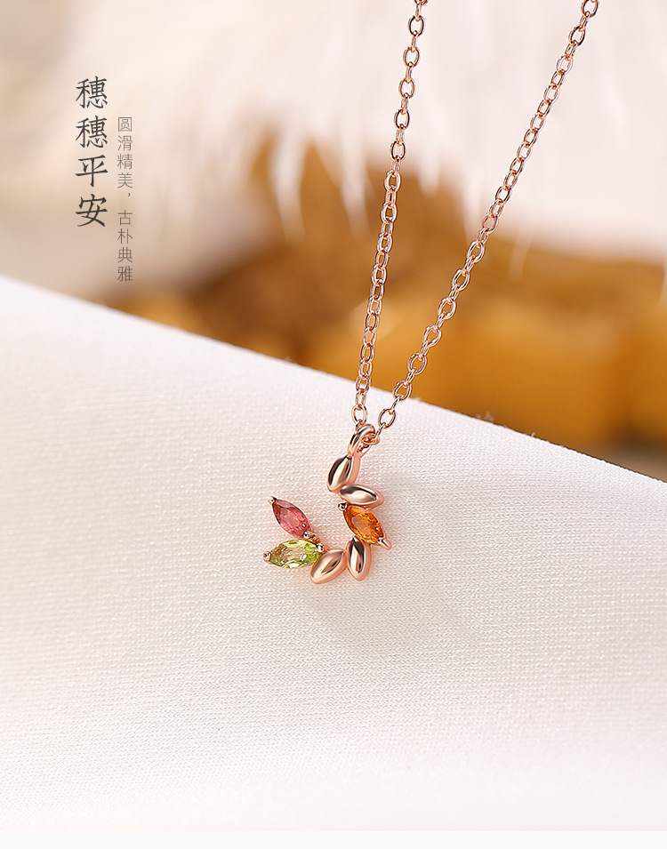 【岁岁平安】S925纯银镀玫瑰金碧玺麦穗项链【CW-DZ07120】
