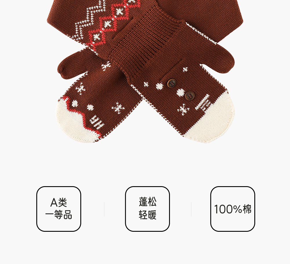 英氏儿童围巾带手套男童保暖复古针织秋冬新款围脖YRPLJ4R027A