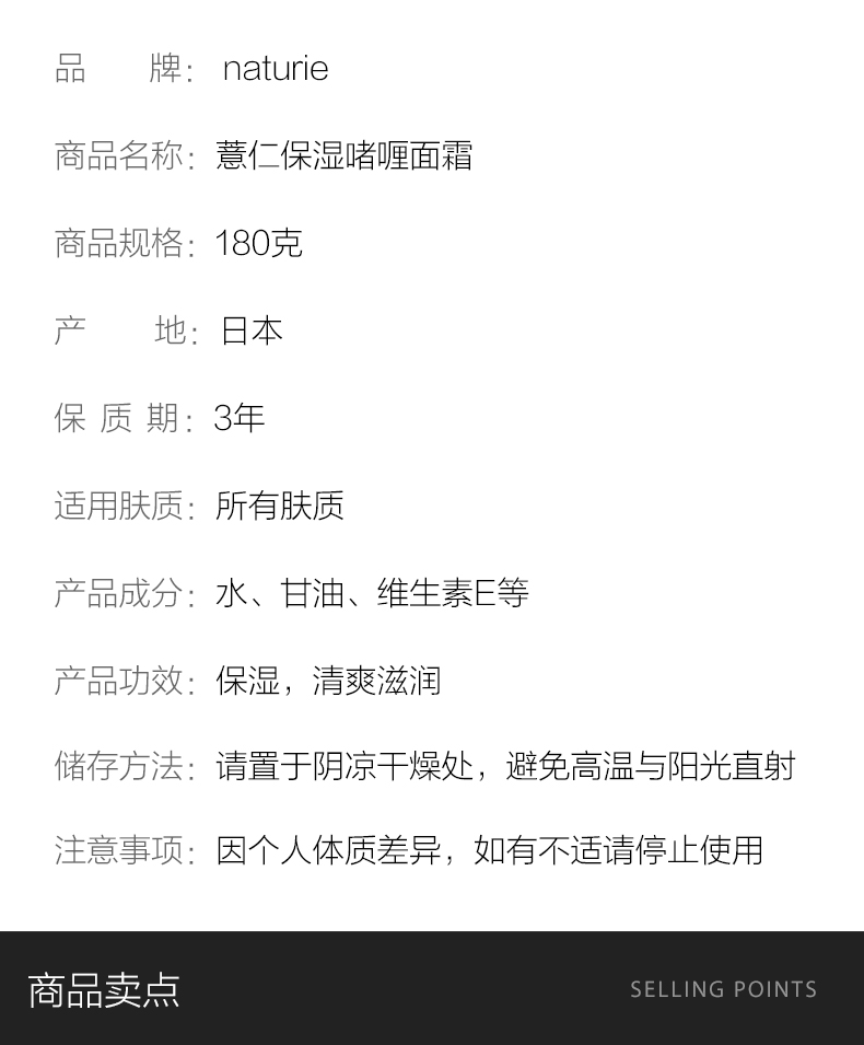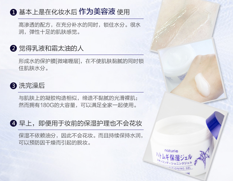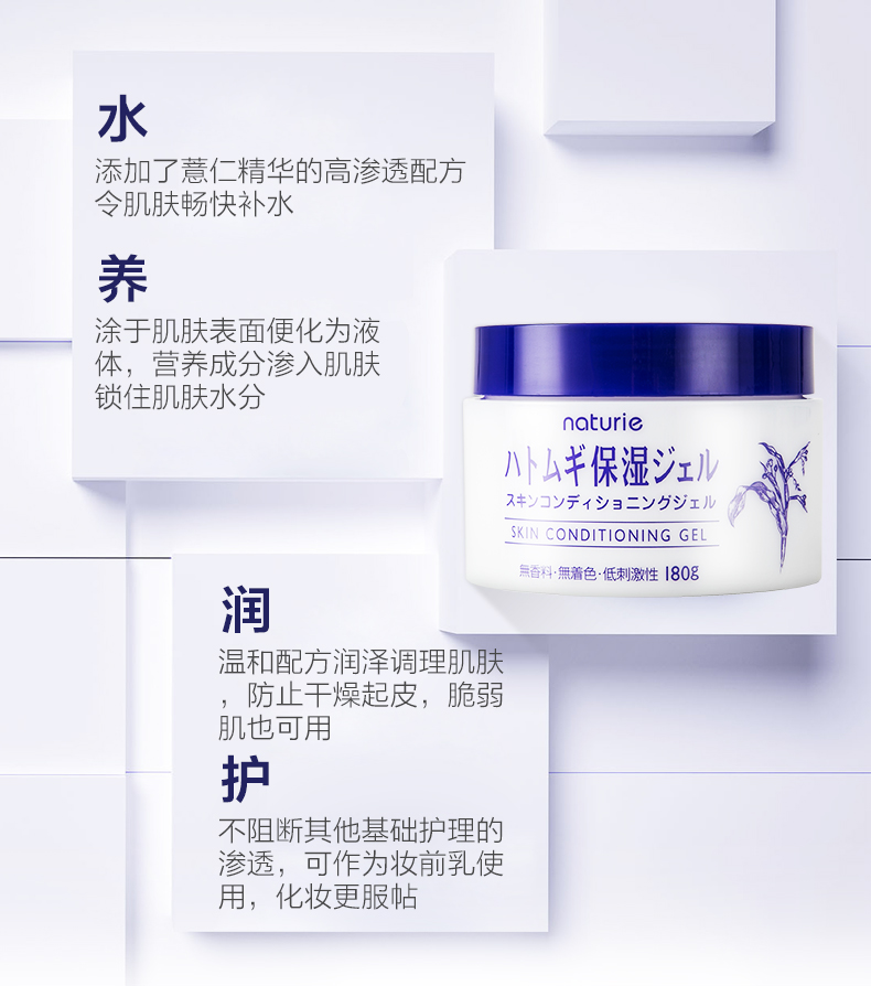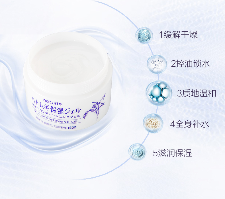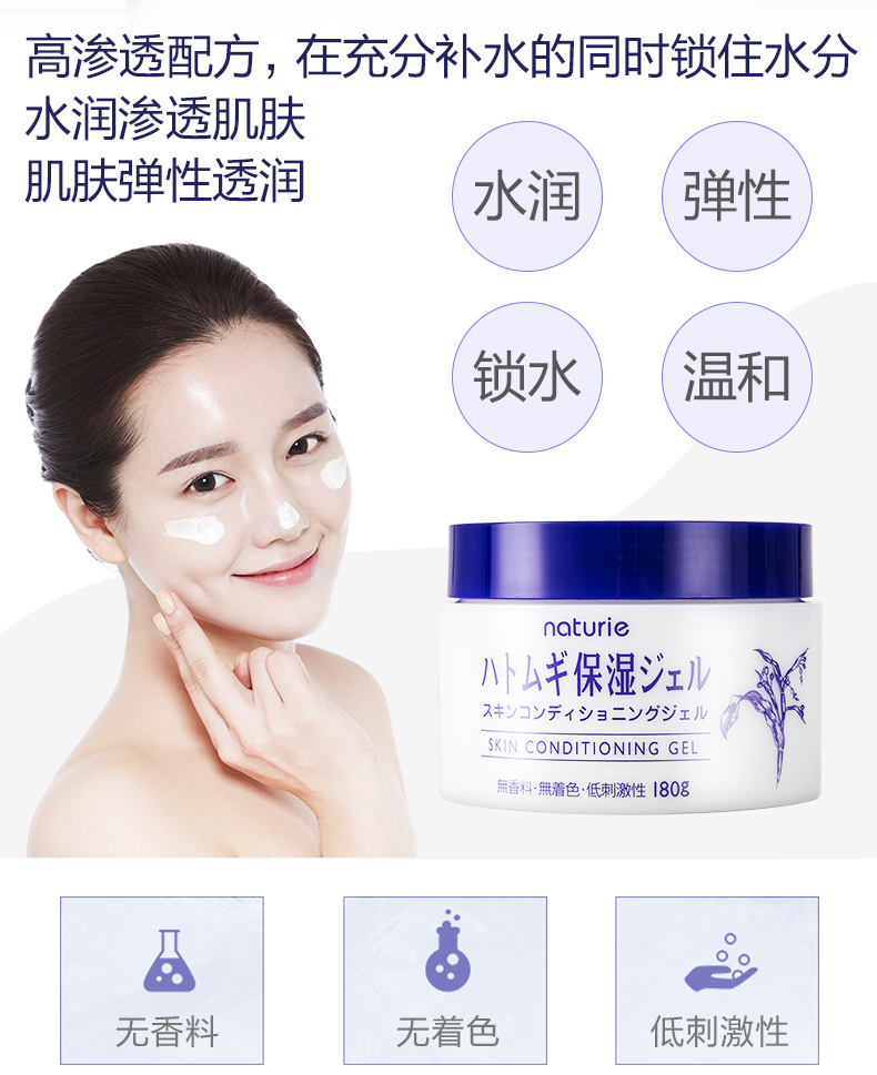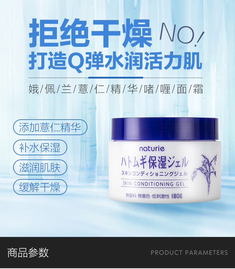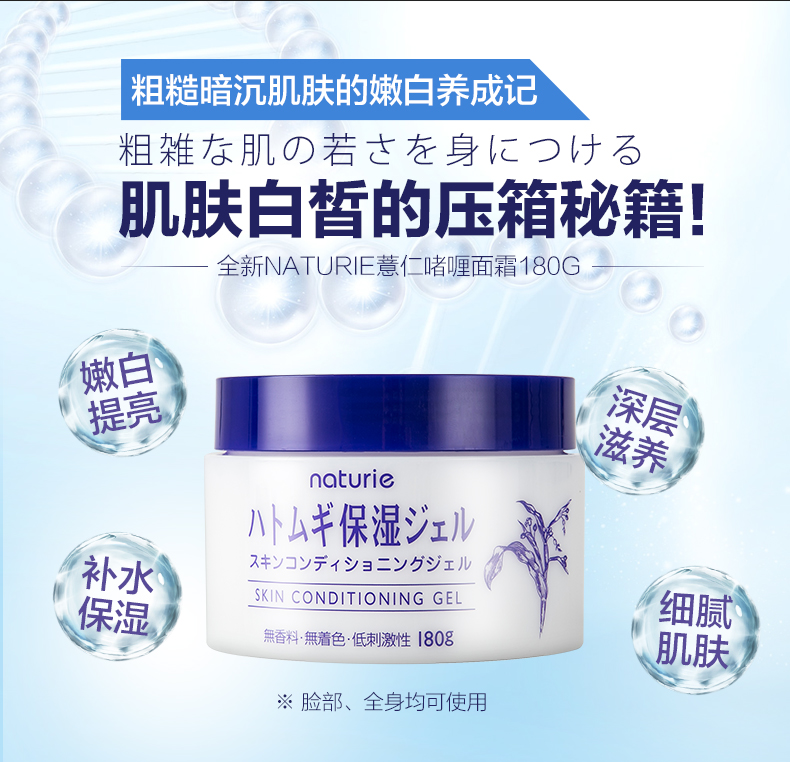 日本naturie娥佩兰进口薏仁保湿面霜啫喱乳液懒人180g清爽素颜霜