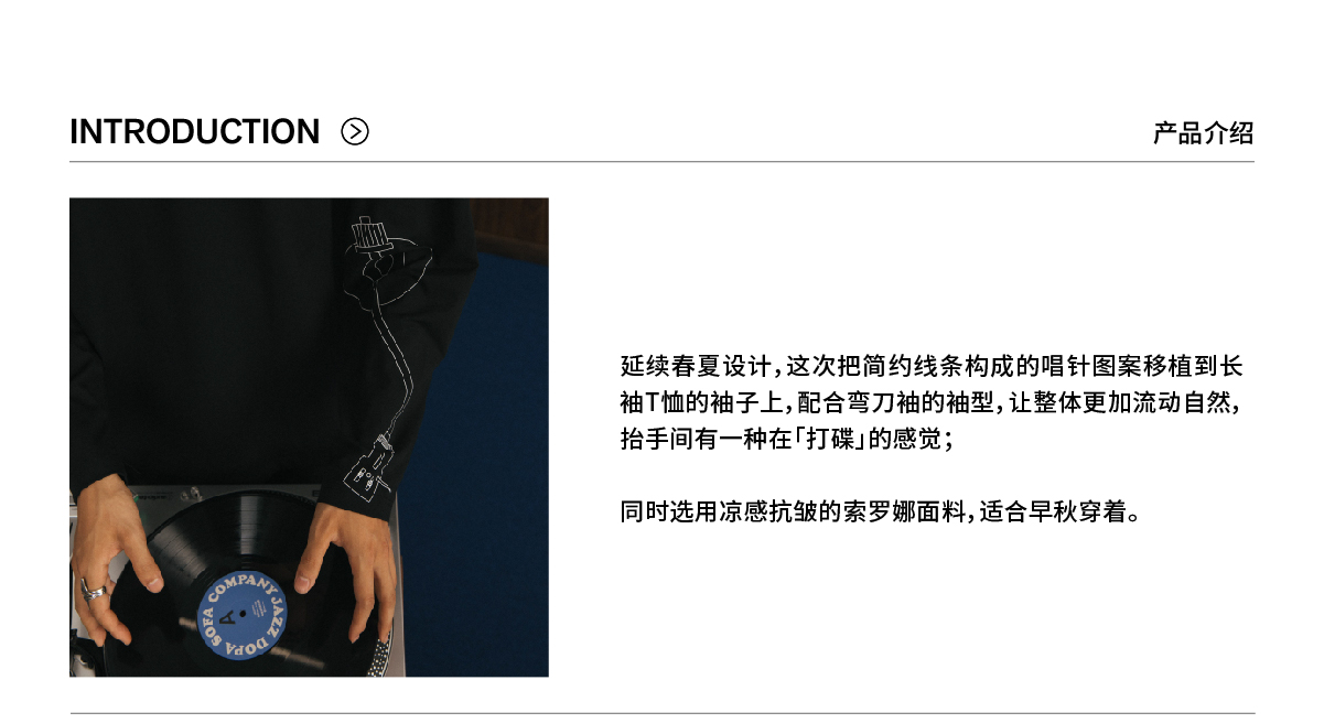 SUPERTOFU(SPTF)/CDT-AW24-T038/唱针臂袖 微弹速干索罗娜面料 弯刀袖长袖T恤