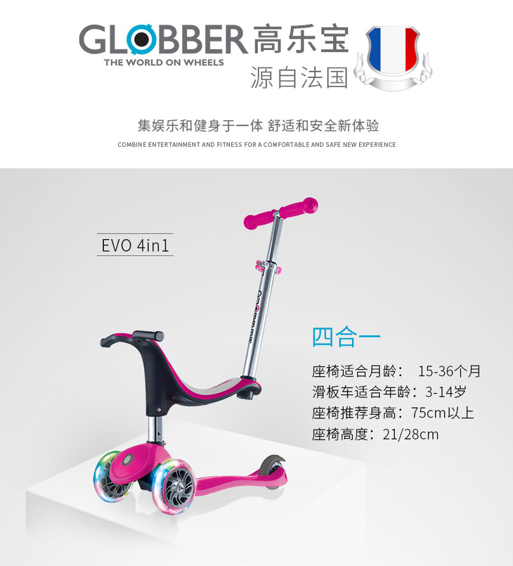 【高乐宝】GLOBBER高乐宝多功能4合1滑板车可坐可滑
