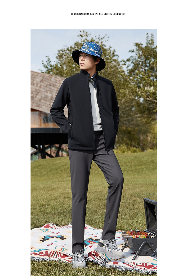 【高弹】柒牌男装立领夹克2024秋季新款面料免烫时尚休闲男士外套 127K71310