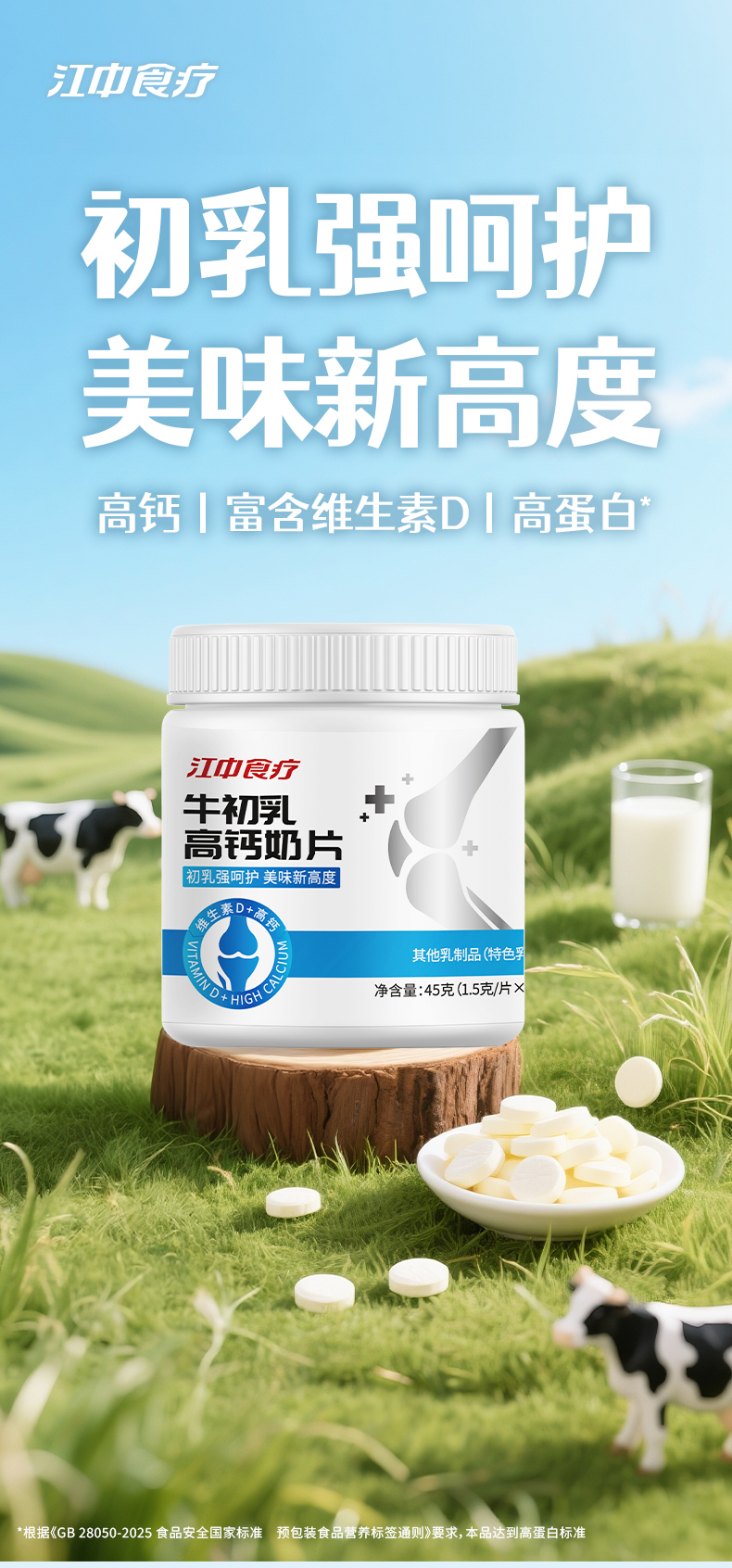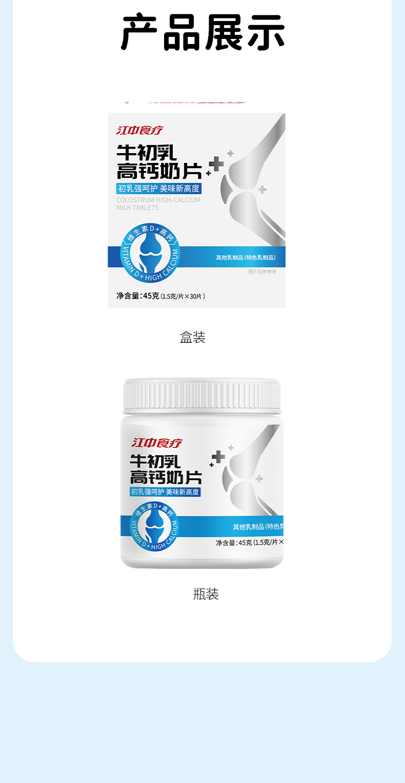 2罐*江中食疗 牛初乳高钙奶片 45克/30片/罐 低至19.8元/罐