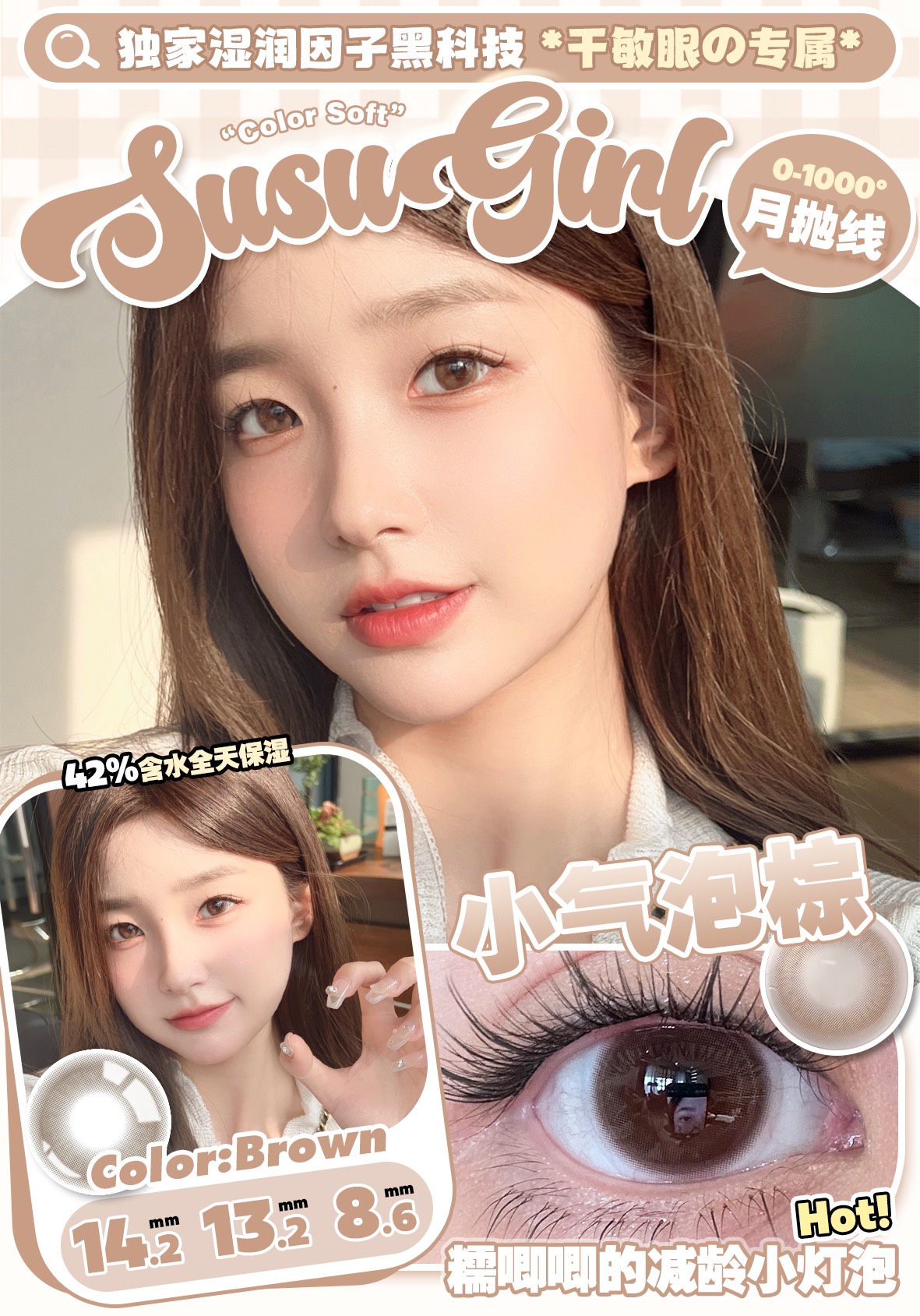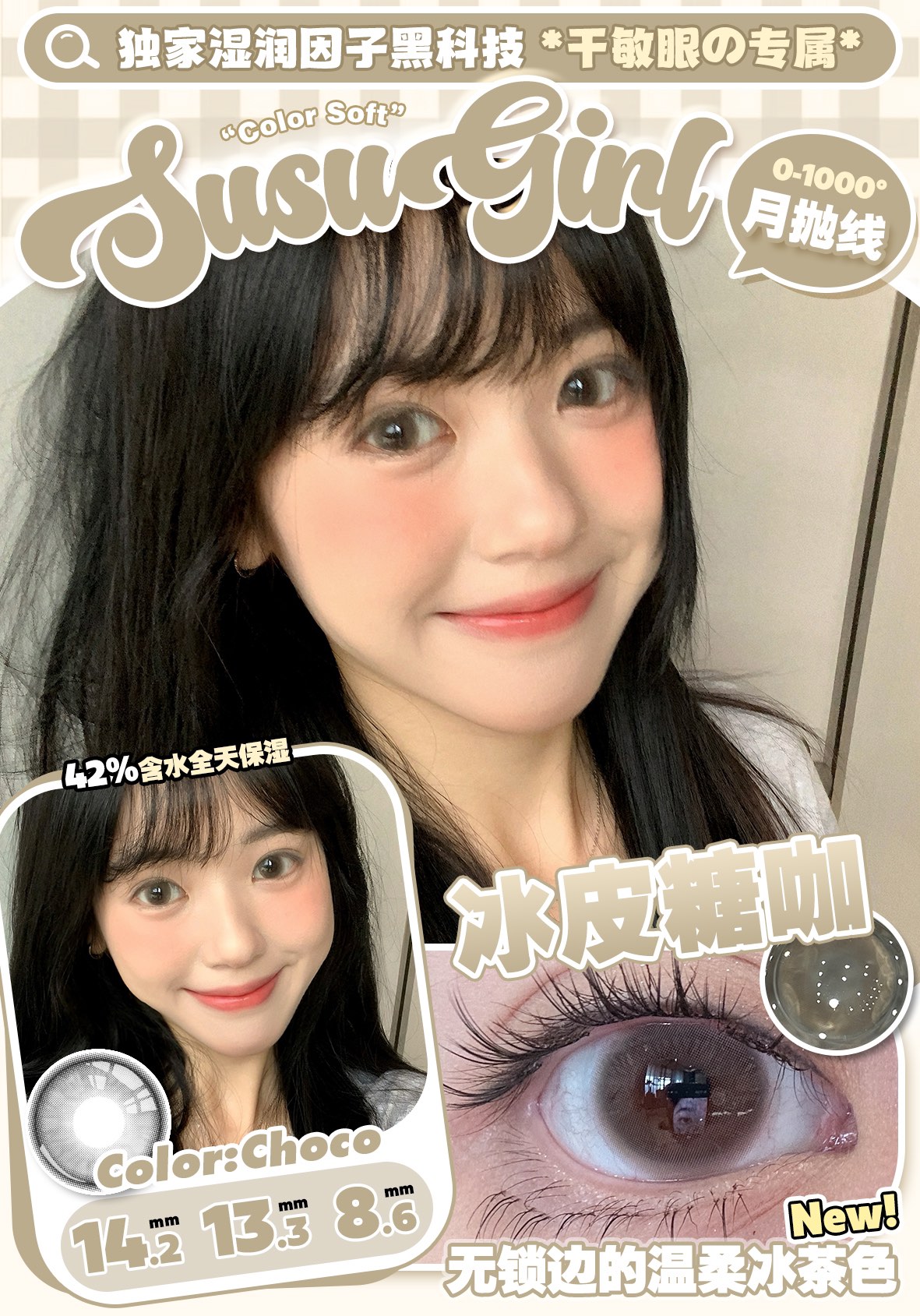 susugirl月抛 冰皮糖咖/冰皮糖棕/小气泡棕/小气泡黑 14.2mm 水凝胶