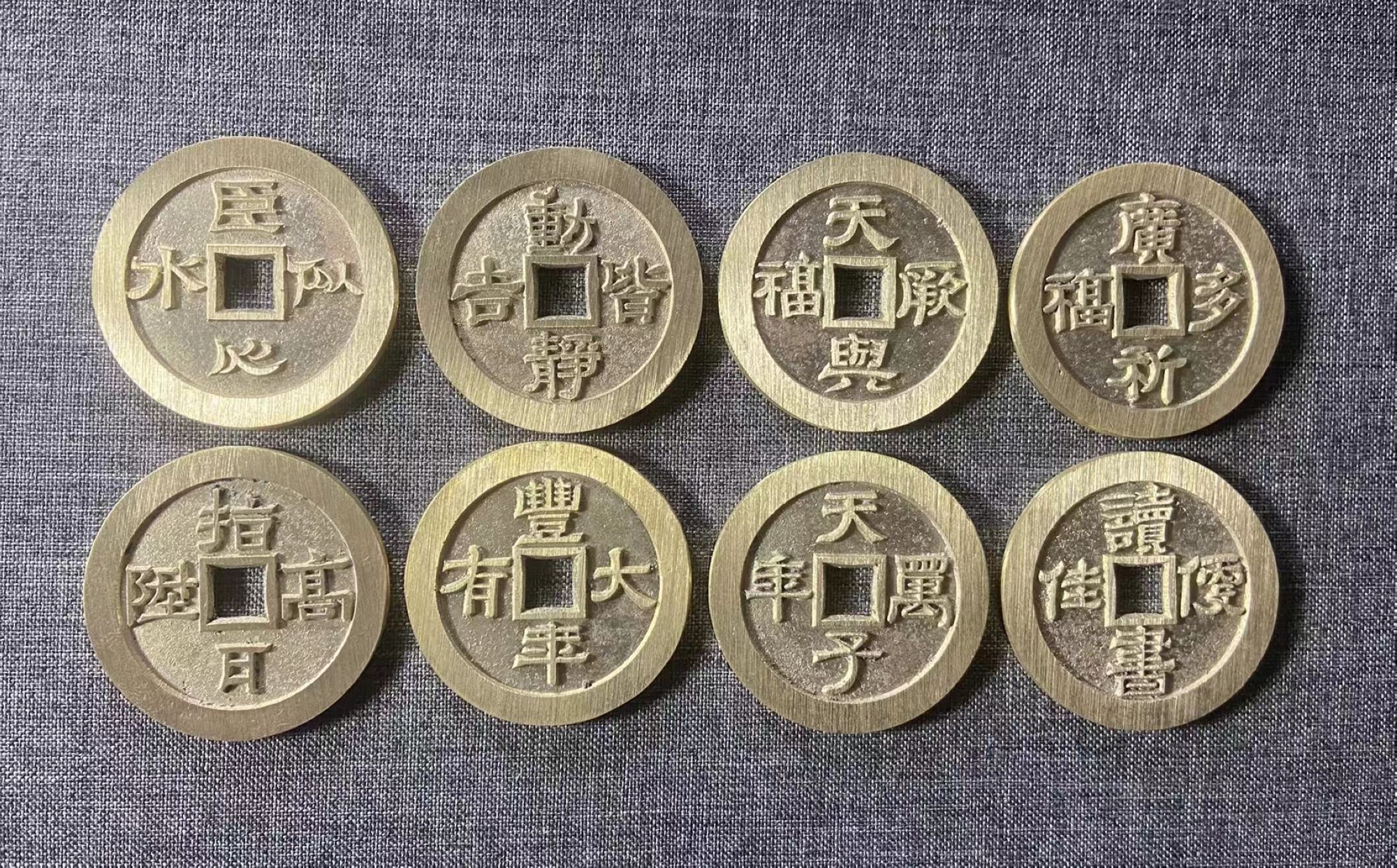 古法翻砂工艺铸造 当代工艺品花钱-京炉套花八枚一套 GY018