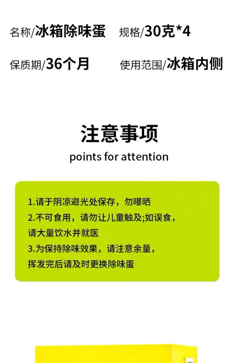 活动拍1发12颗【全耀冰箱除味蛋】天然茶多酚成分 主动分解异味分子 告别异味困扰 源头去除 守护食材新鲜 兼具杀jun+除味+保鲜,一个可用45天