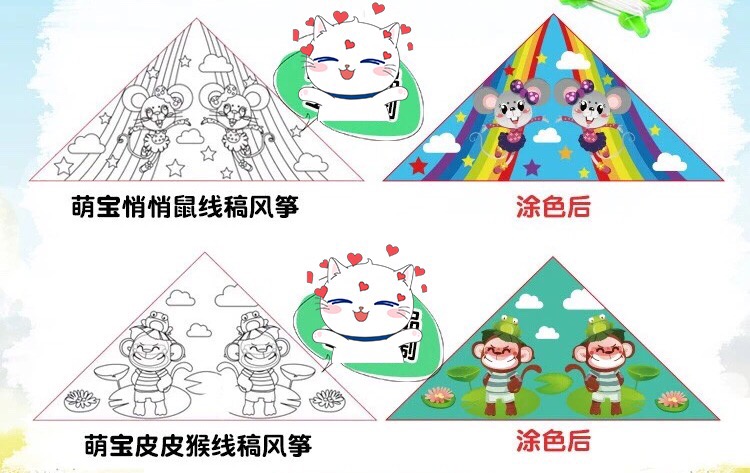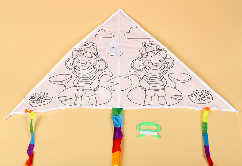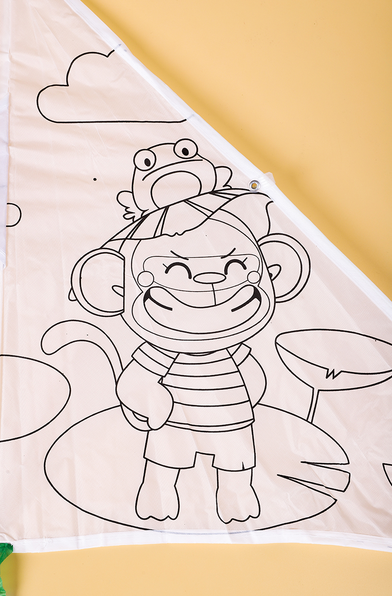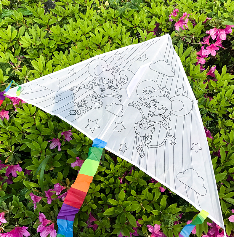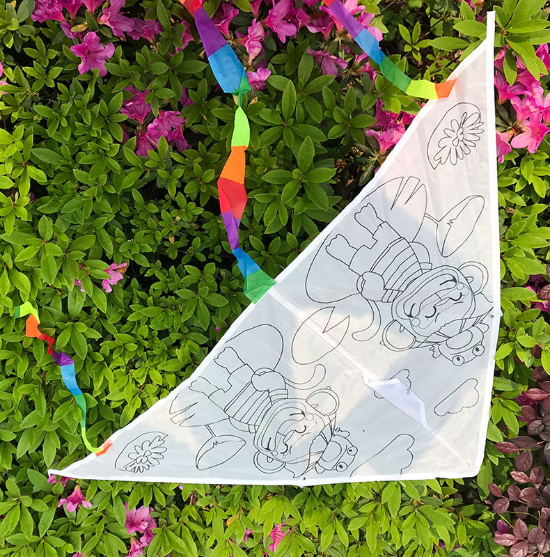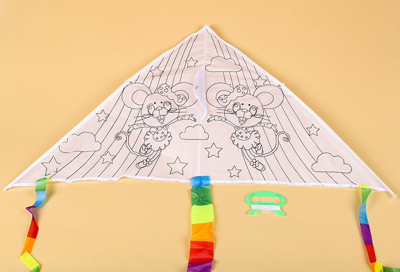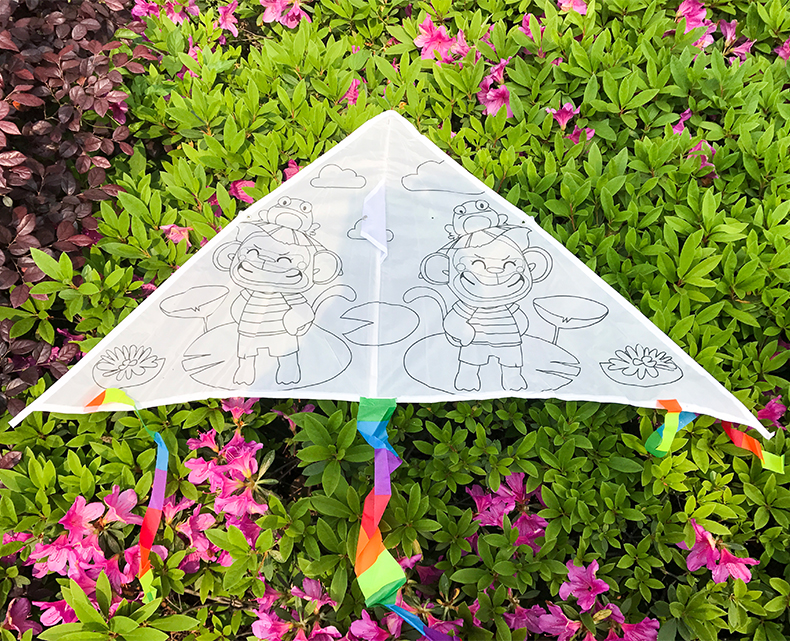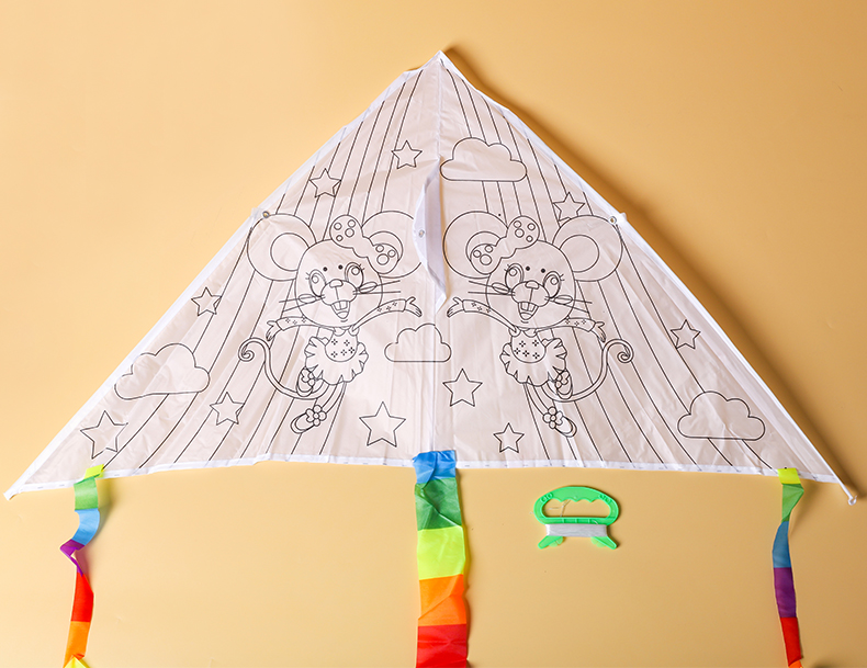 直播间-单件包邮-DIY涂色风筝套装(风筝一枚,12色水彩笔一包,30米风筝线轴)