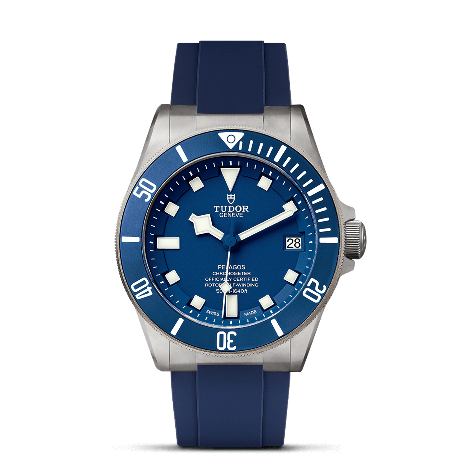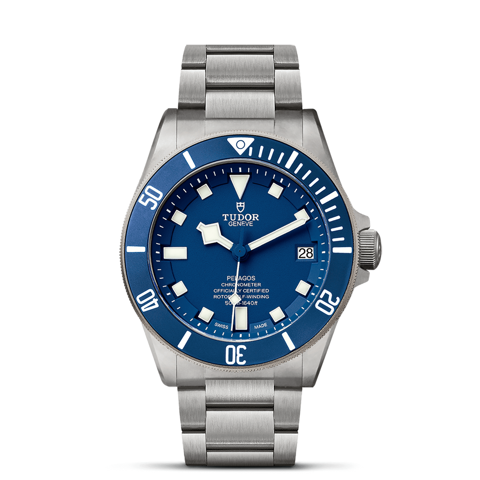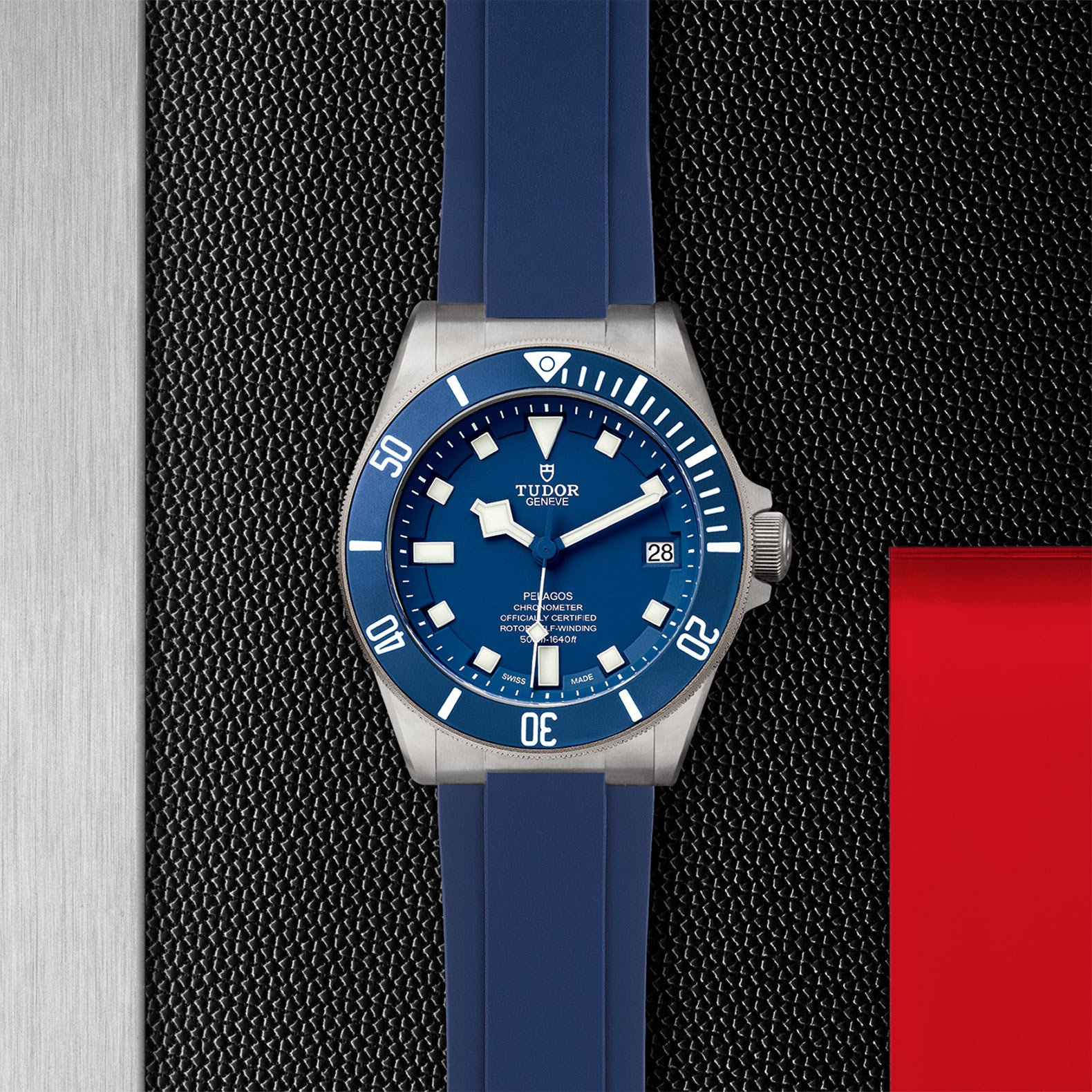 钛金属表带,配摺扣及保险扣,钢摺扣内置由帝舵表研发、并获得专利的自动调节弹簧装置