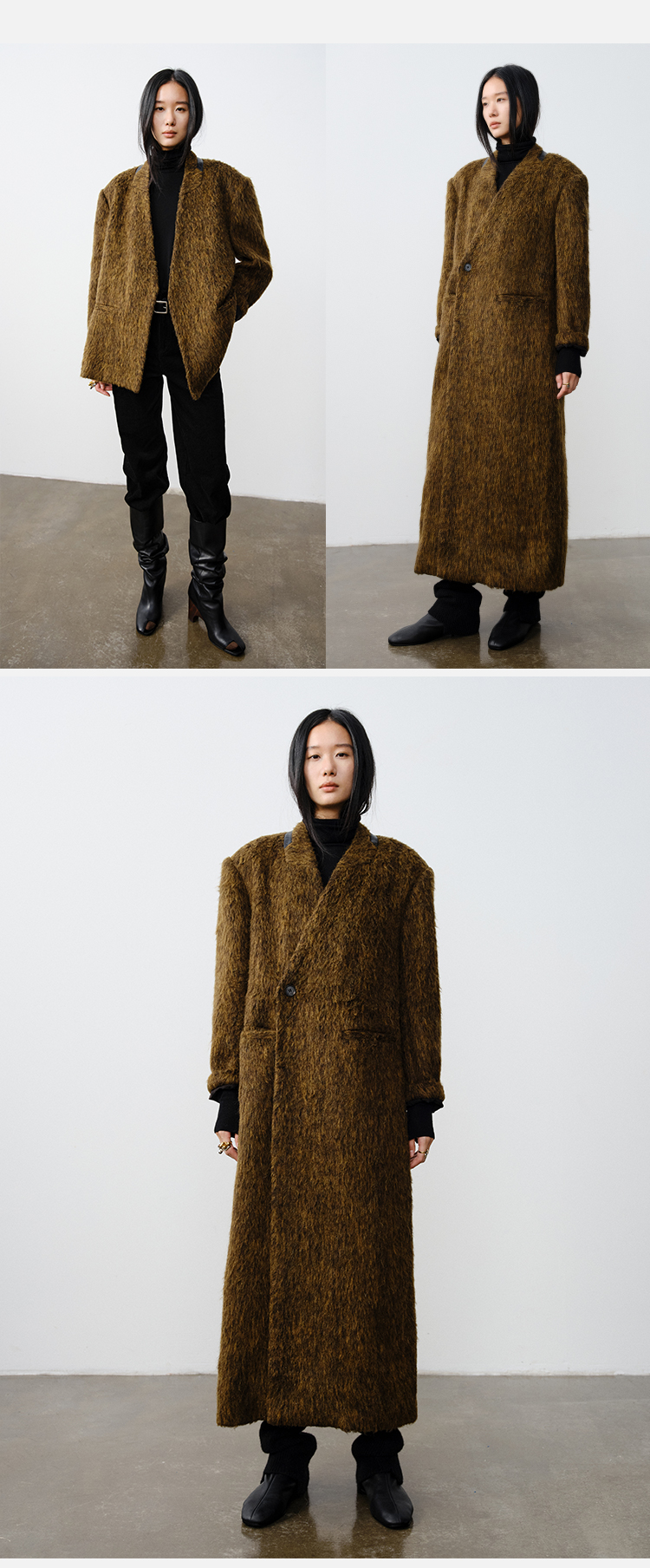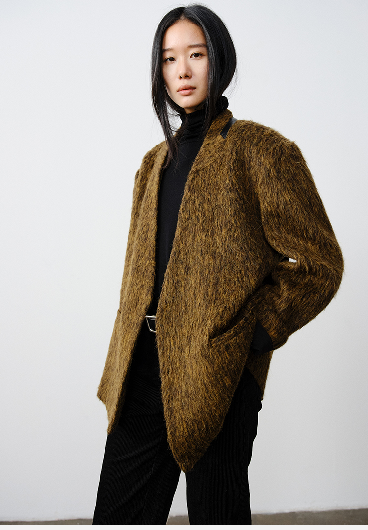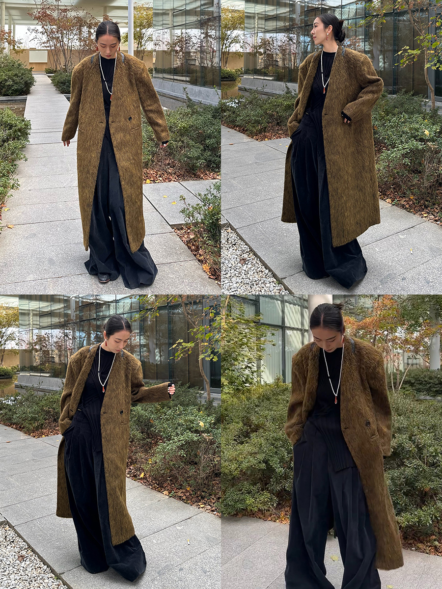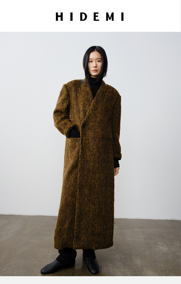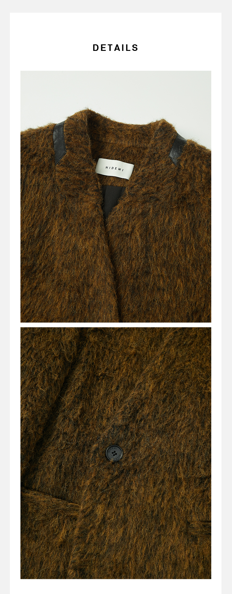 HIDEMI alpaca长毛羊驼毛苏力无领式垫肩一粒扣西装大衣 长款/短款