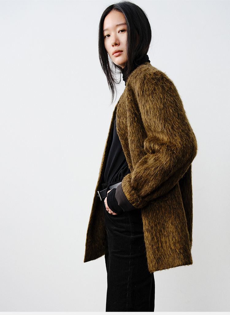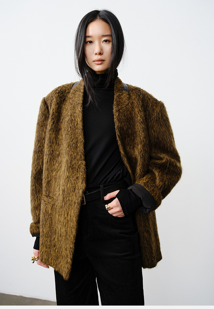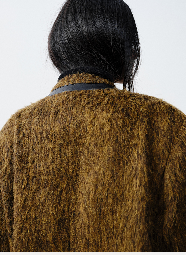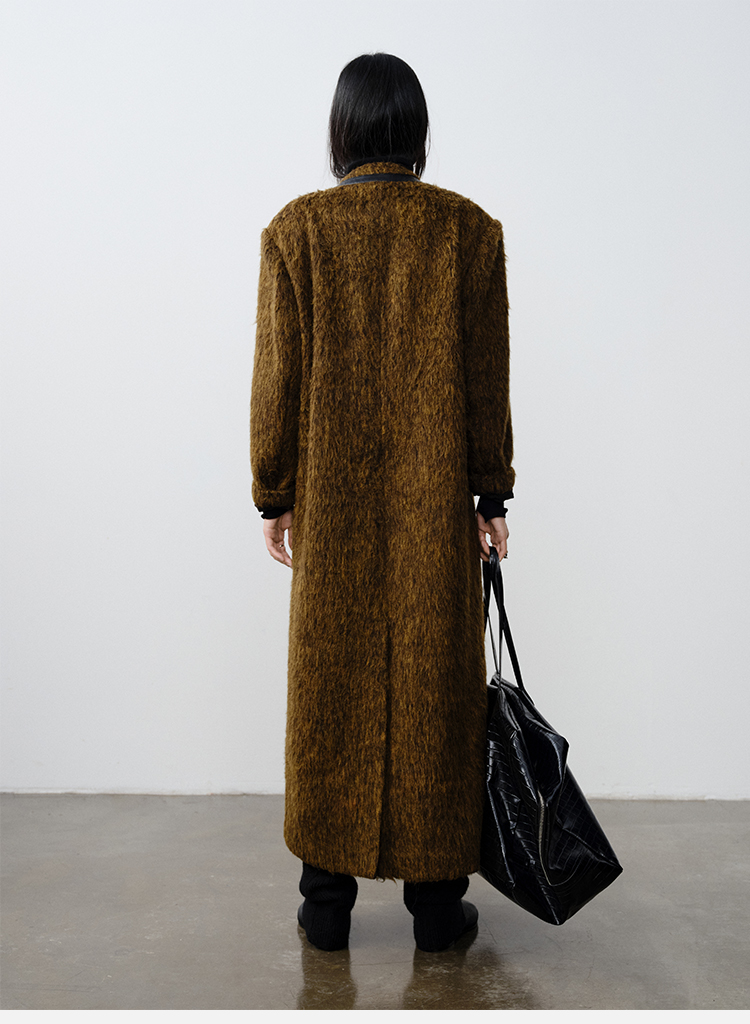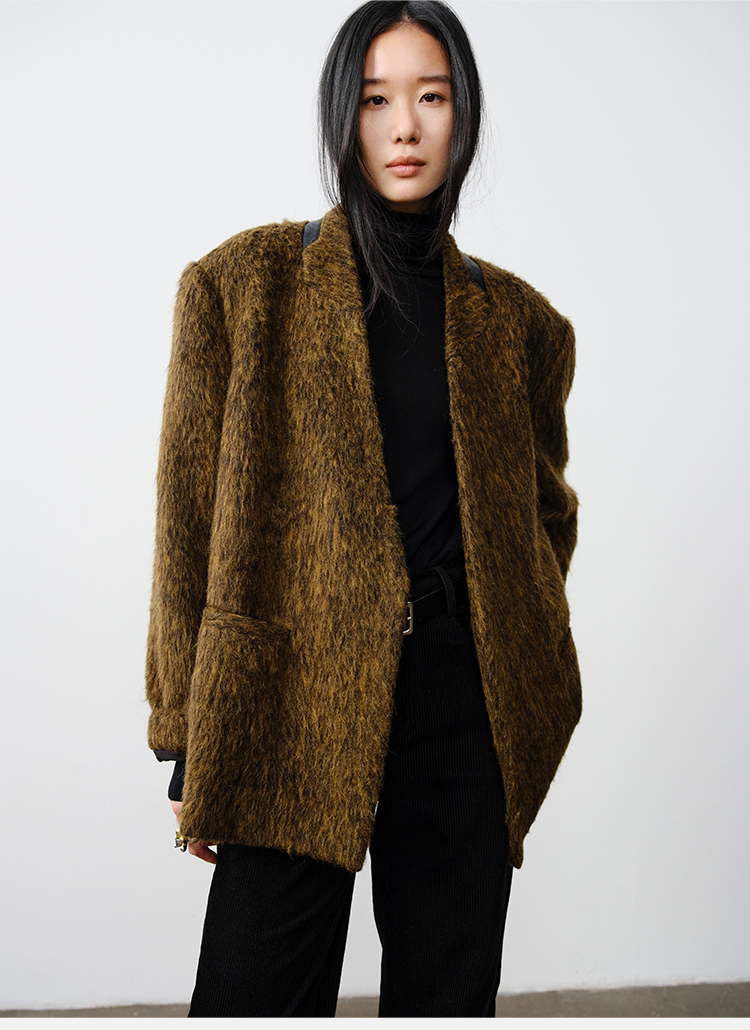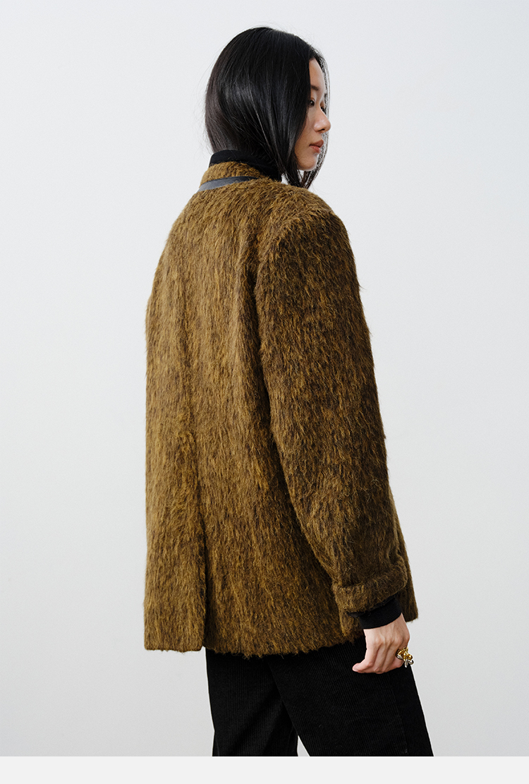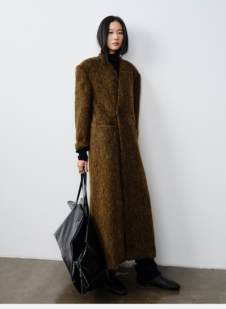 HIDEMI alpaca长毛羊驼毛苏力无领式垫肩一粒扣西装大衣 长款/短款