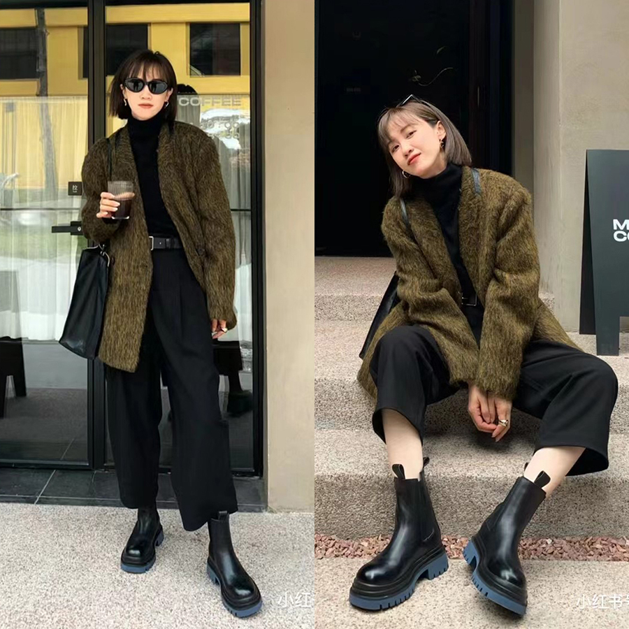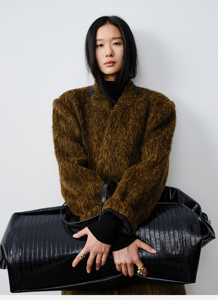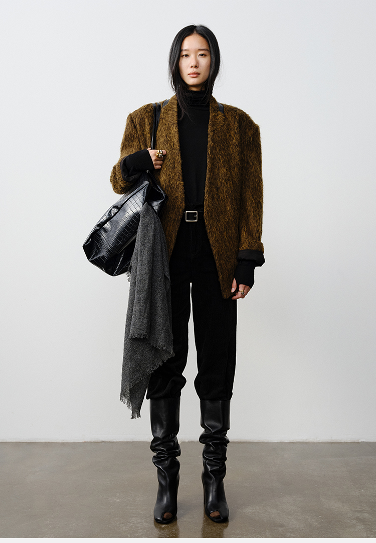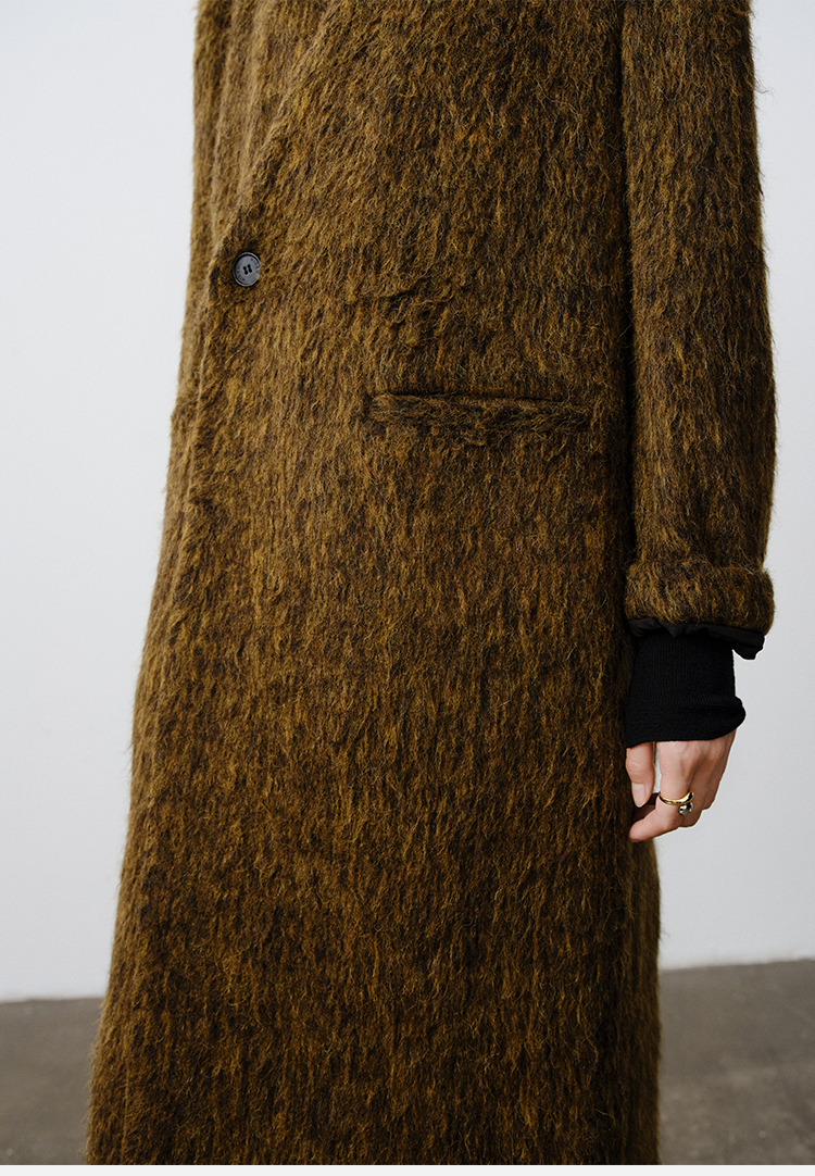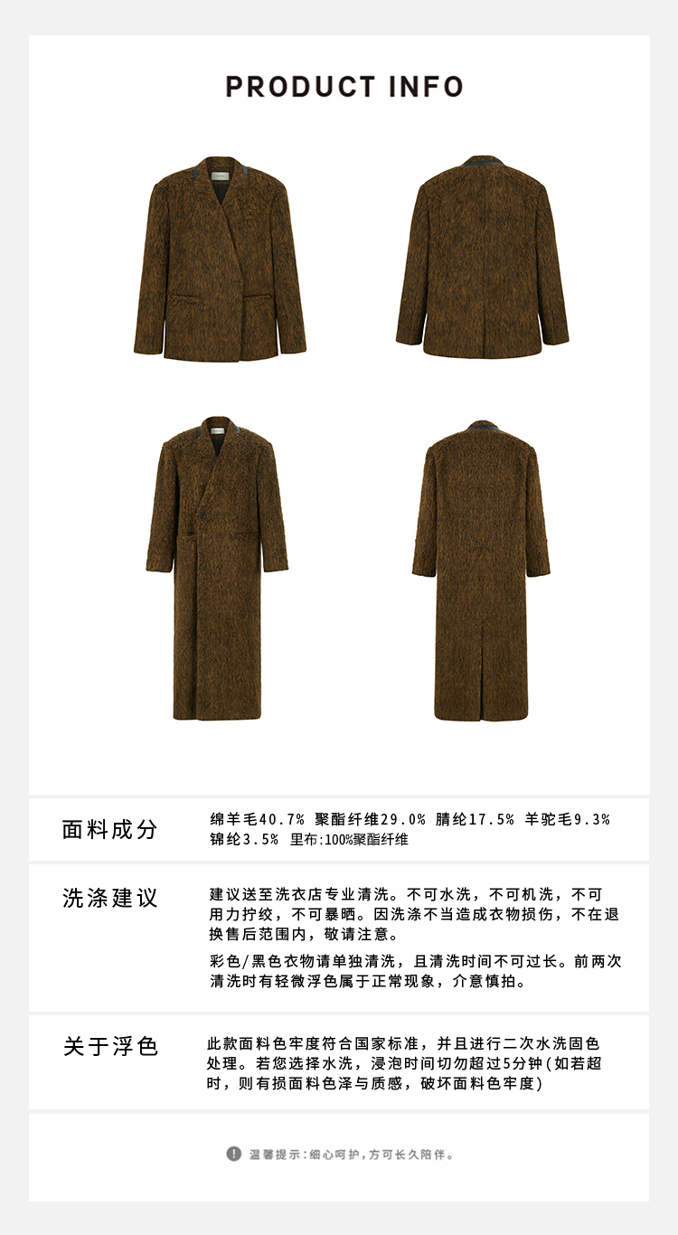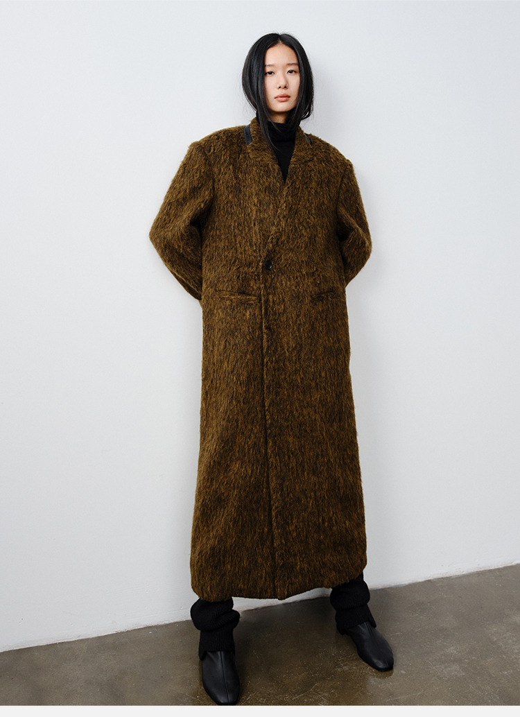 HIDEMI alpaca长毛羊驼毛苏力无领式垫肩一粒扣西装大衣 长款/短款