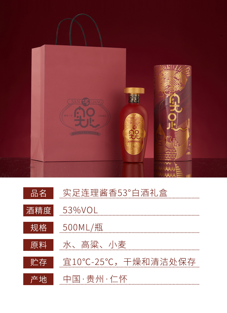 【实足】酱香53度-【实足连理红瓶-500ml*6瓶】-整箱装