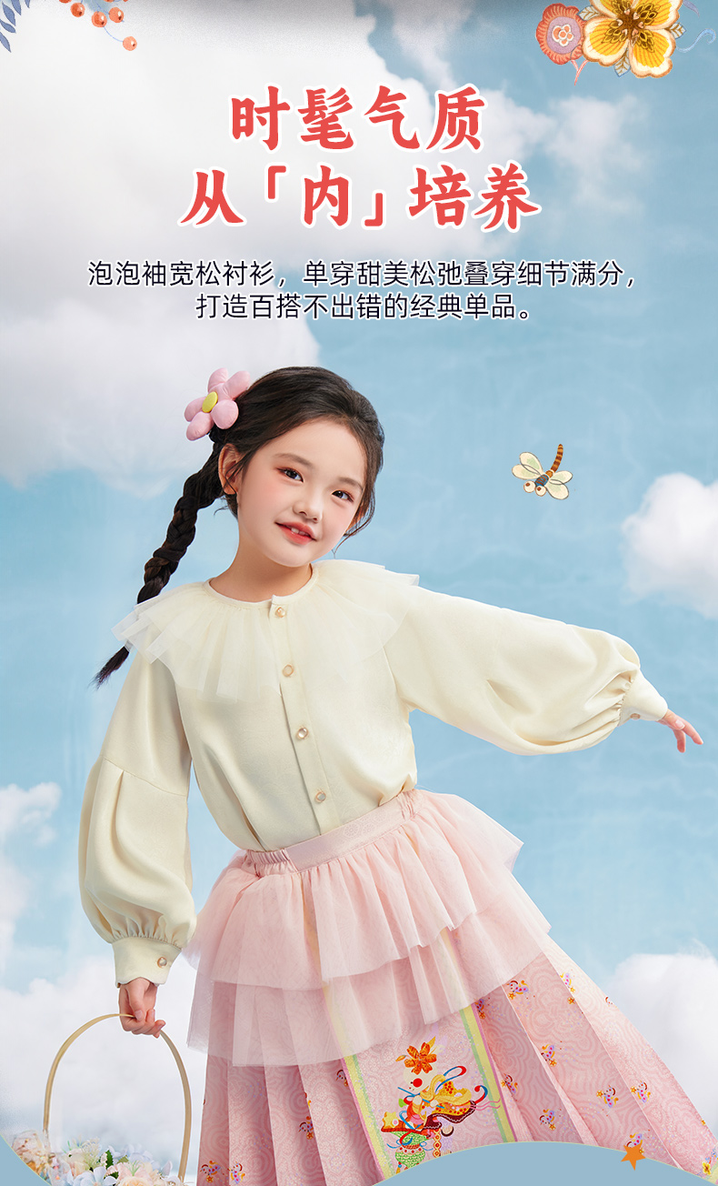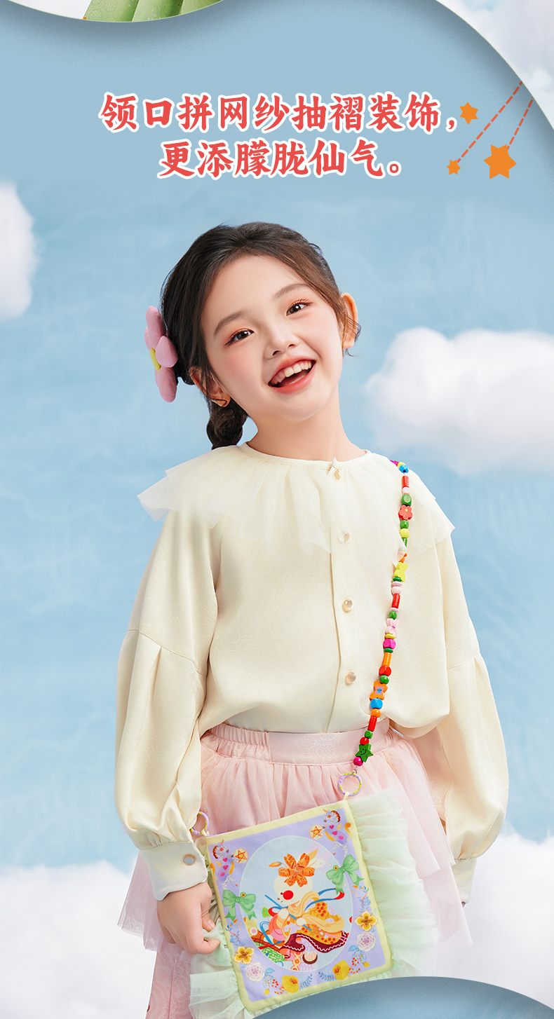 年衣童装女童衬衫2025年春新款复古新中式古风衬衣儿童甜美娃娃衫桃花奶糕衬衫