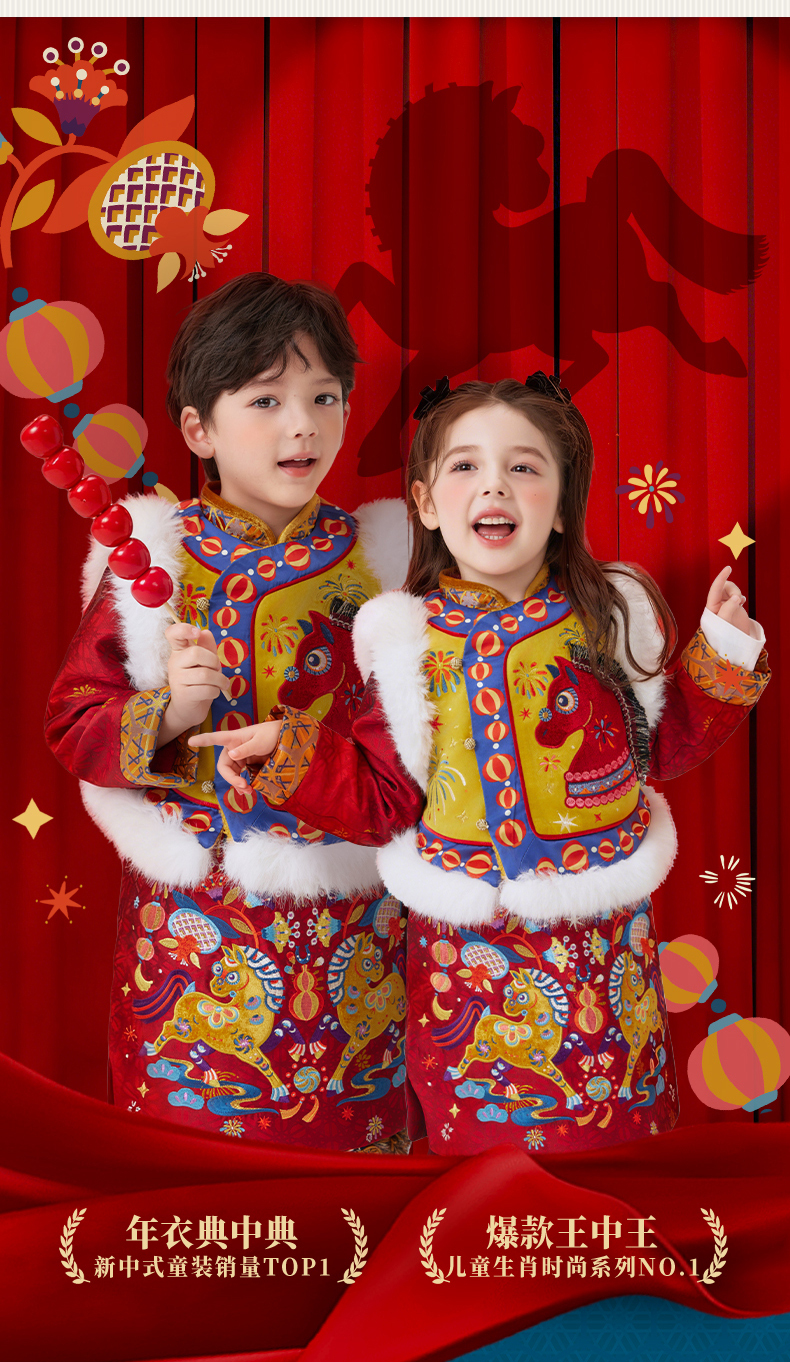 年衣童装中式马褂套装冬季新款女童演出服棉服盛世跃马中式马褂套装