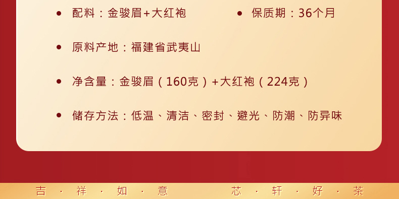 g 芯轩 武夷红茶吉祥金骏眉如意大红袍茶叶礼盒装