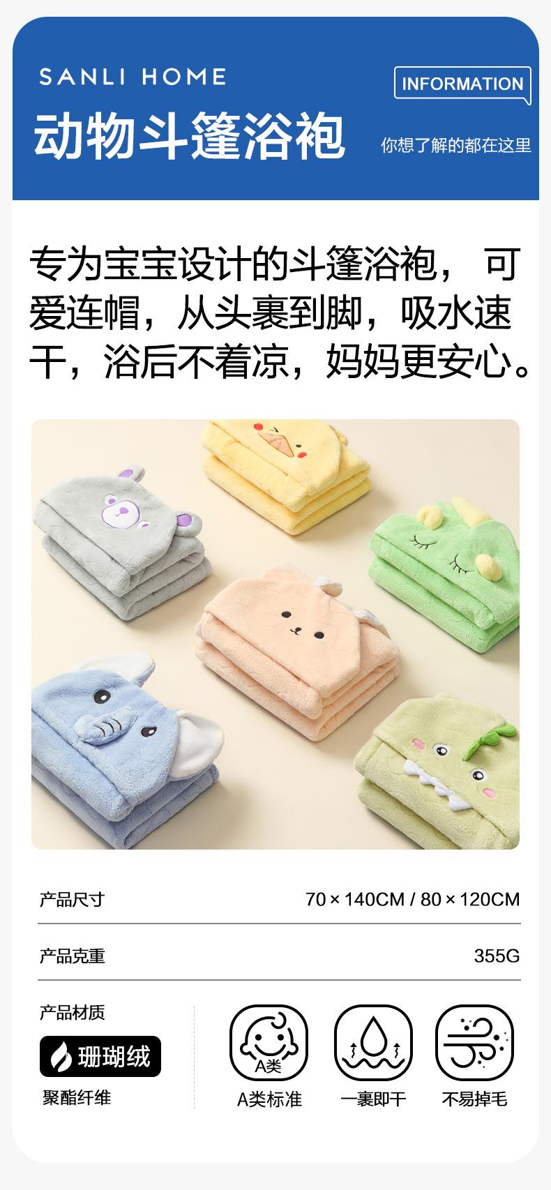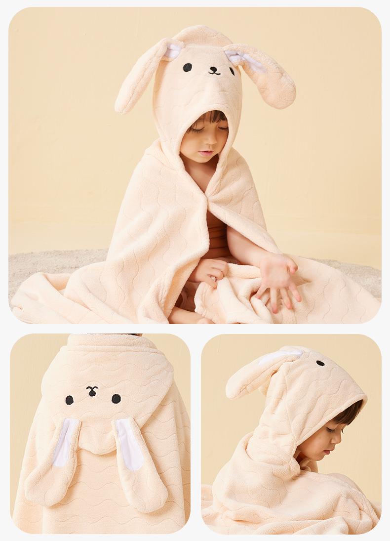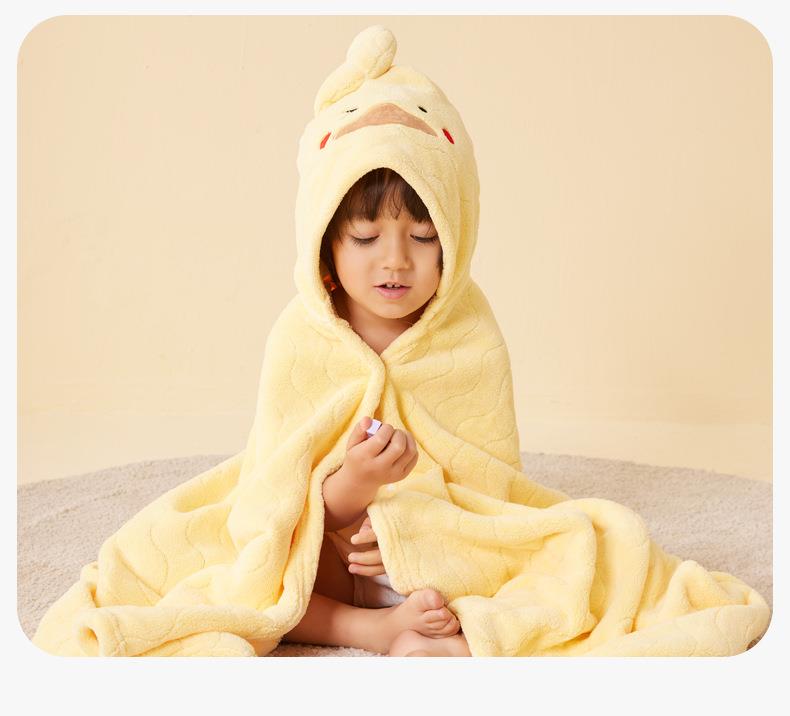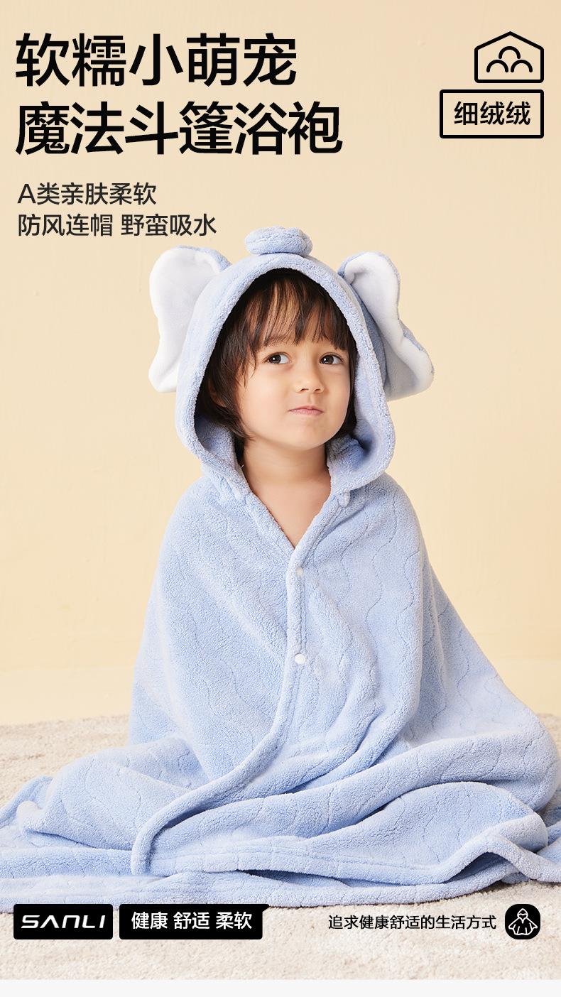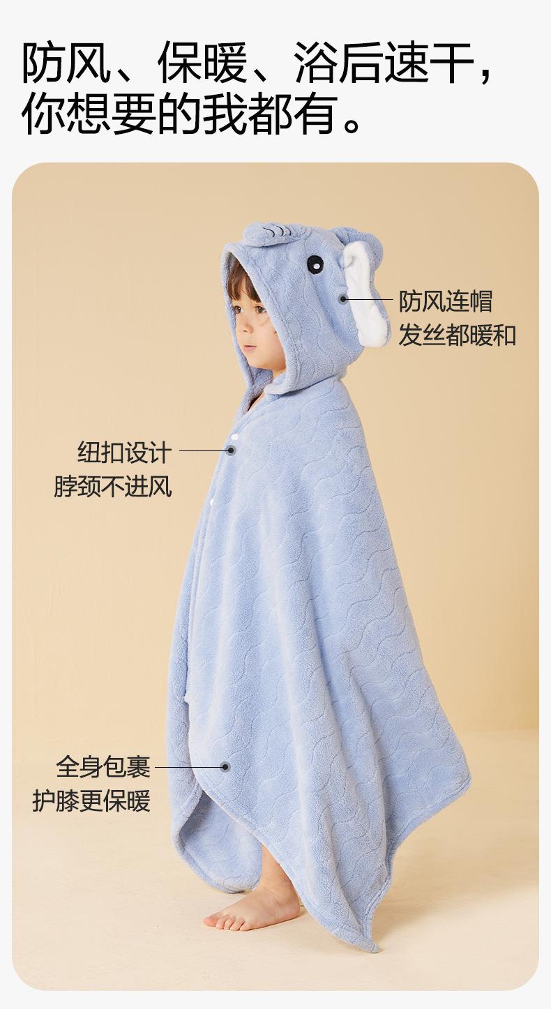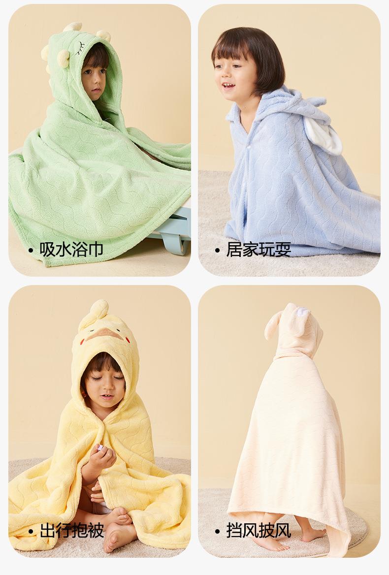 三利毛巾新款儿童披风立体卡通连帽斗篷宝宝可穿浴巾珊瑚绒大浴衣