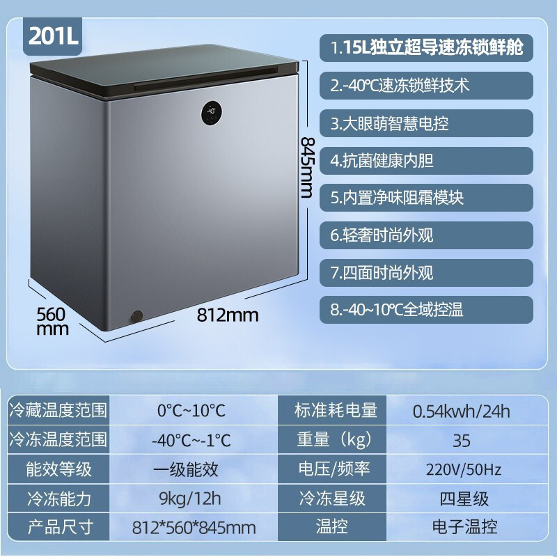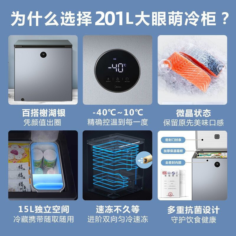 美的冰柜(202644)家用无需除霜超低温冷柜小型-40℃海鲜全冷冻柜一级能效冷藏冷冻转化母乳BD/BC-201KEMS 201L
