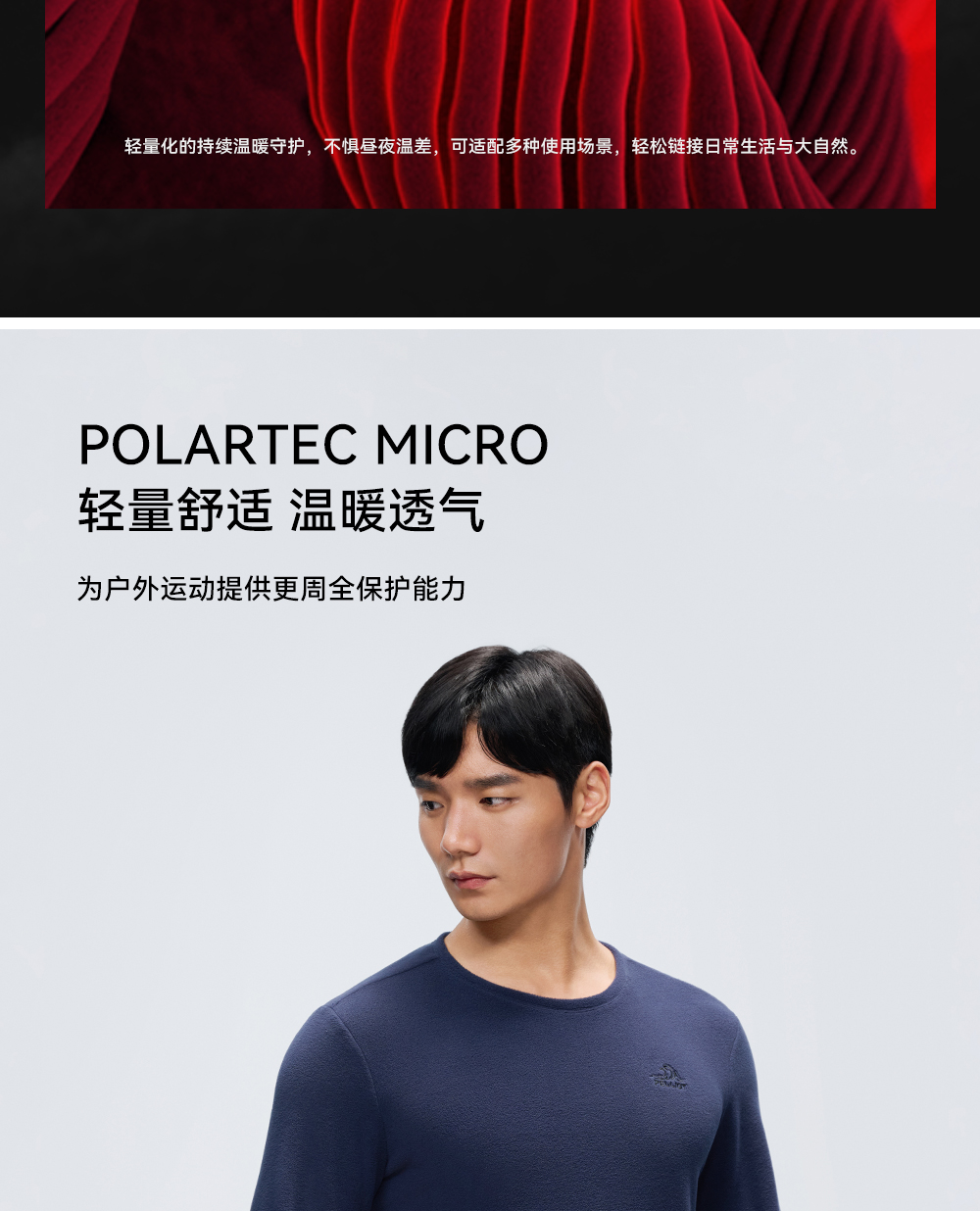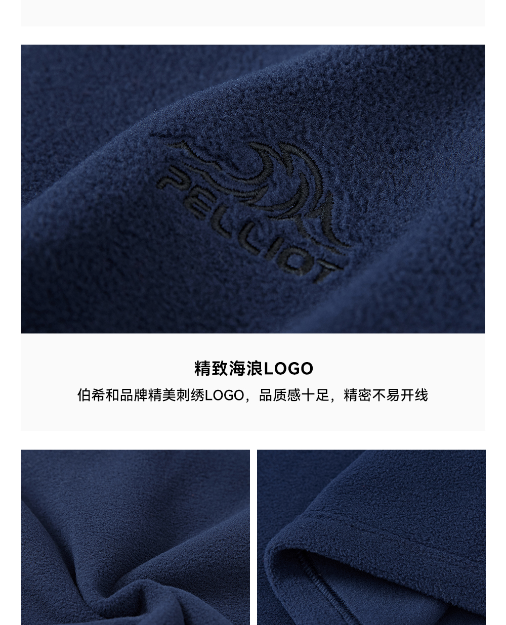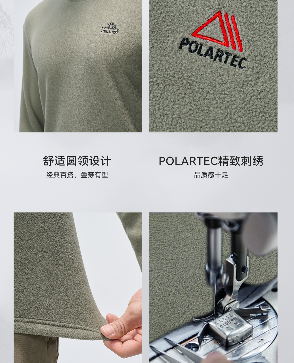 伯希和户外Polartec抓绒衣男冲锋衣内胆圆领休闲内搭轻量运动上衣