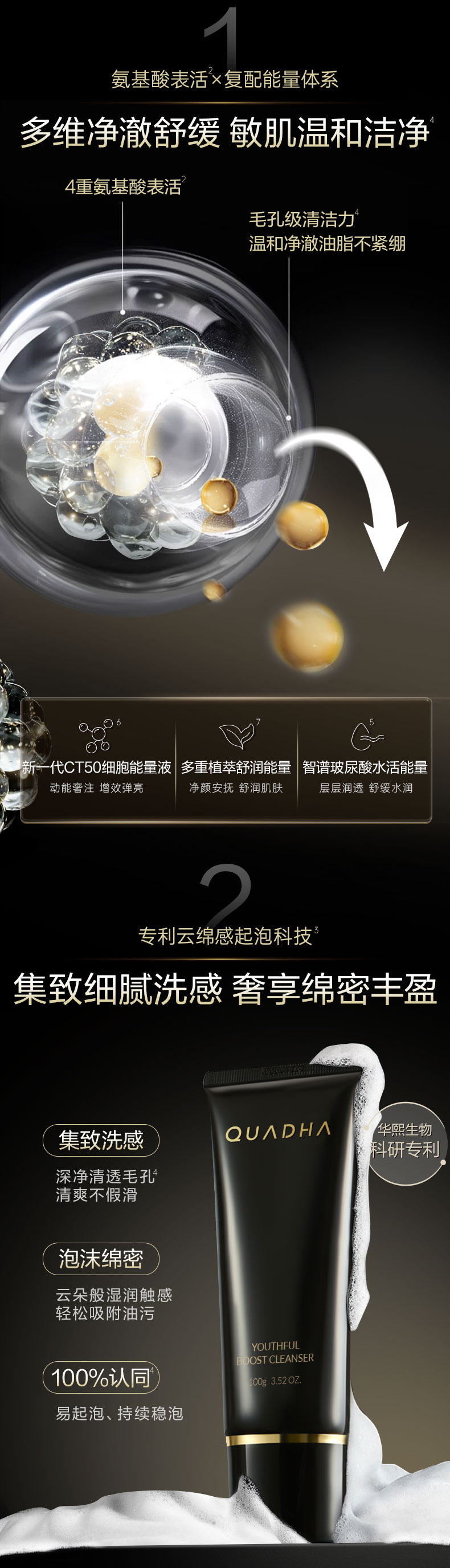 【夸迪】夸迪动能支撑净澈洁面100g 买100g至高享120g 四重氨基酸表活 温和净澈