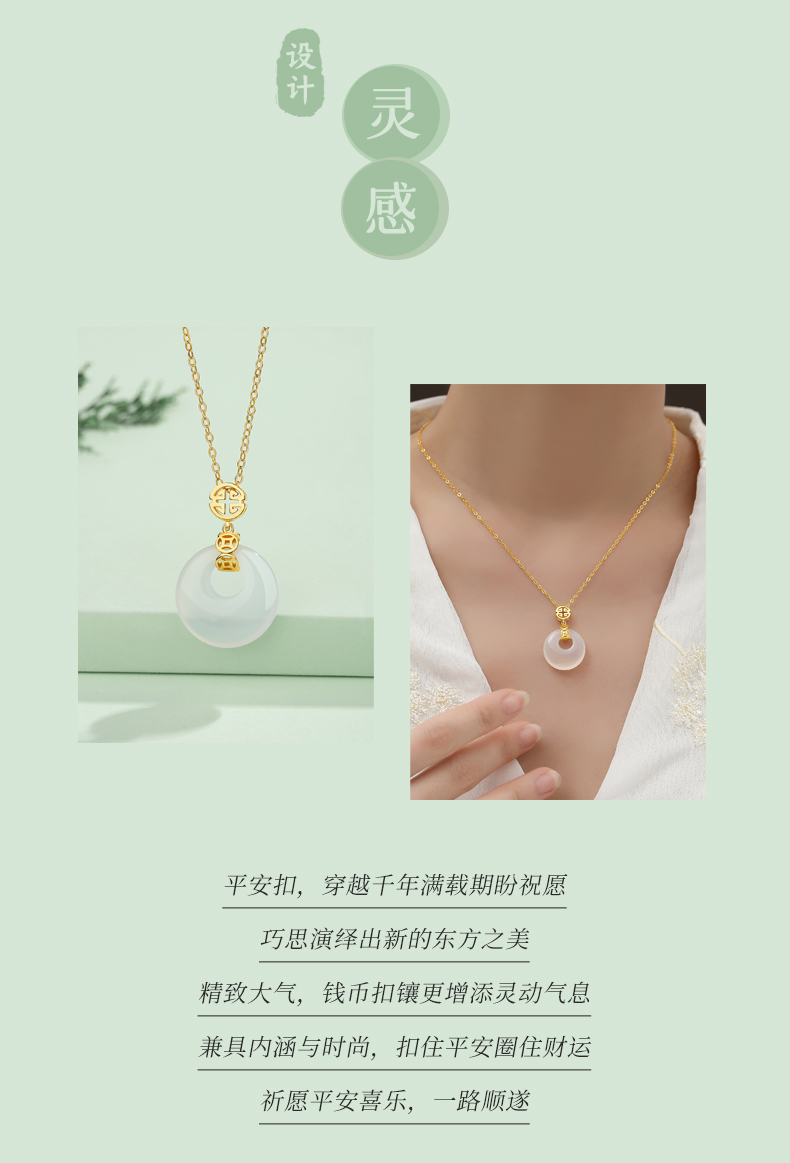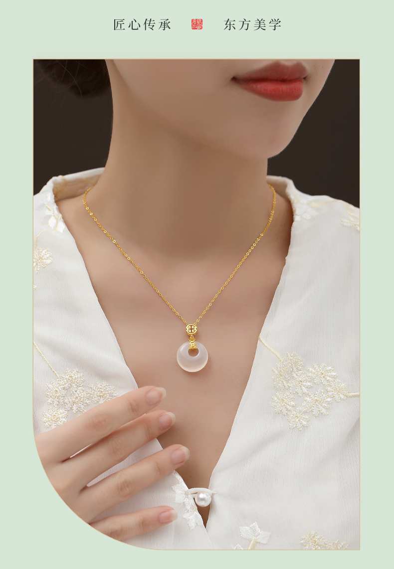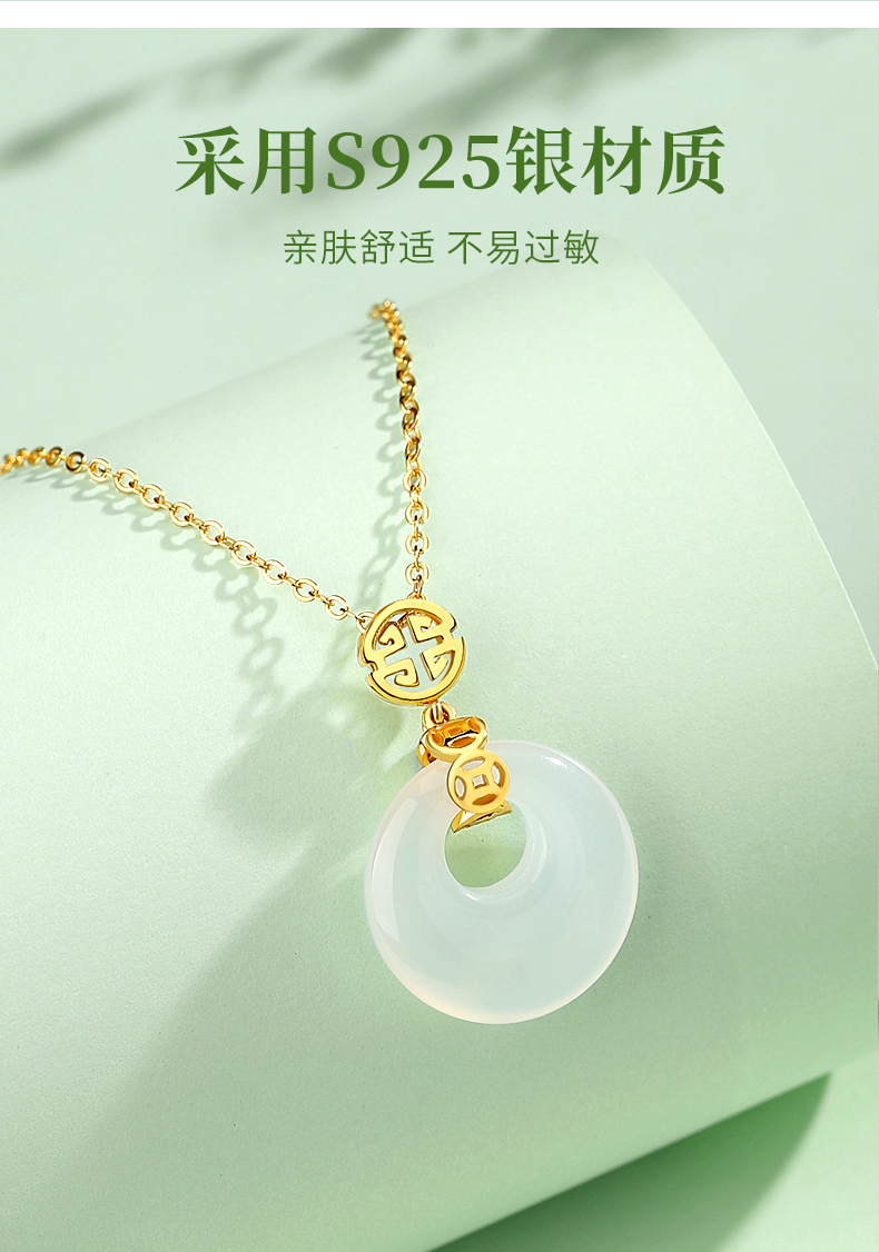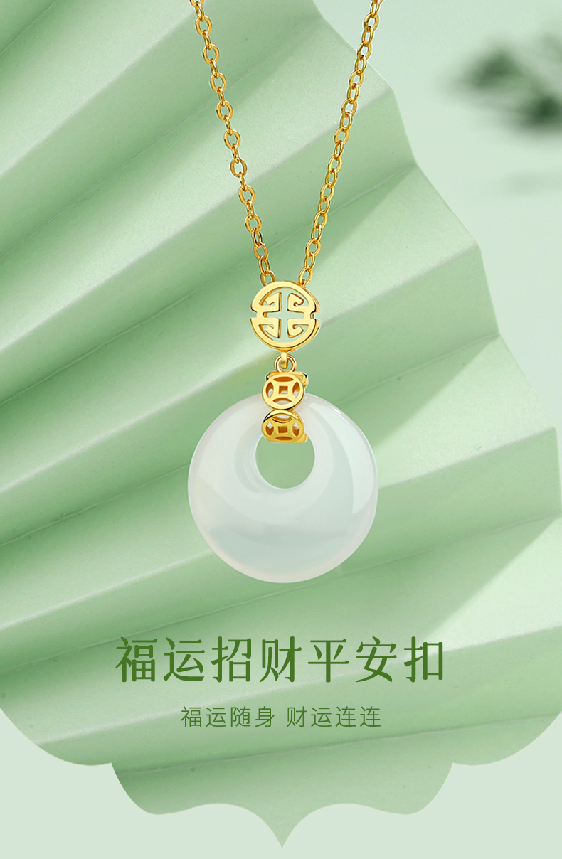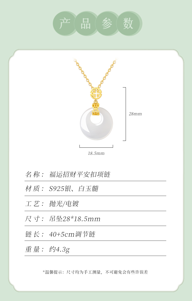 【福气满满】卡蒂罗/KADER 如意福牌项链 好运玉满福银镶玉平安扣 小众新中式如意锁骨链平安聚财上班上学