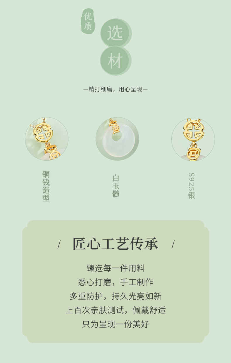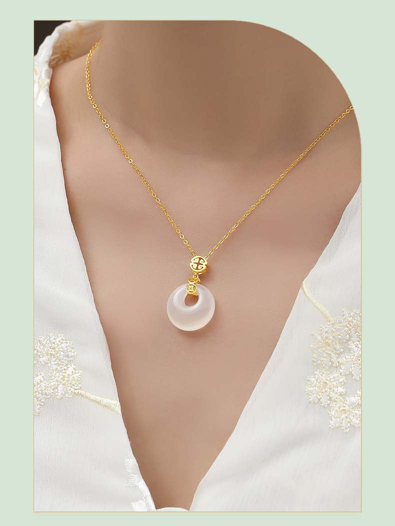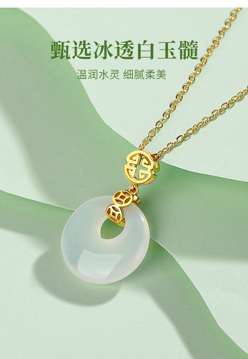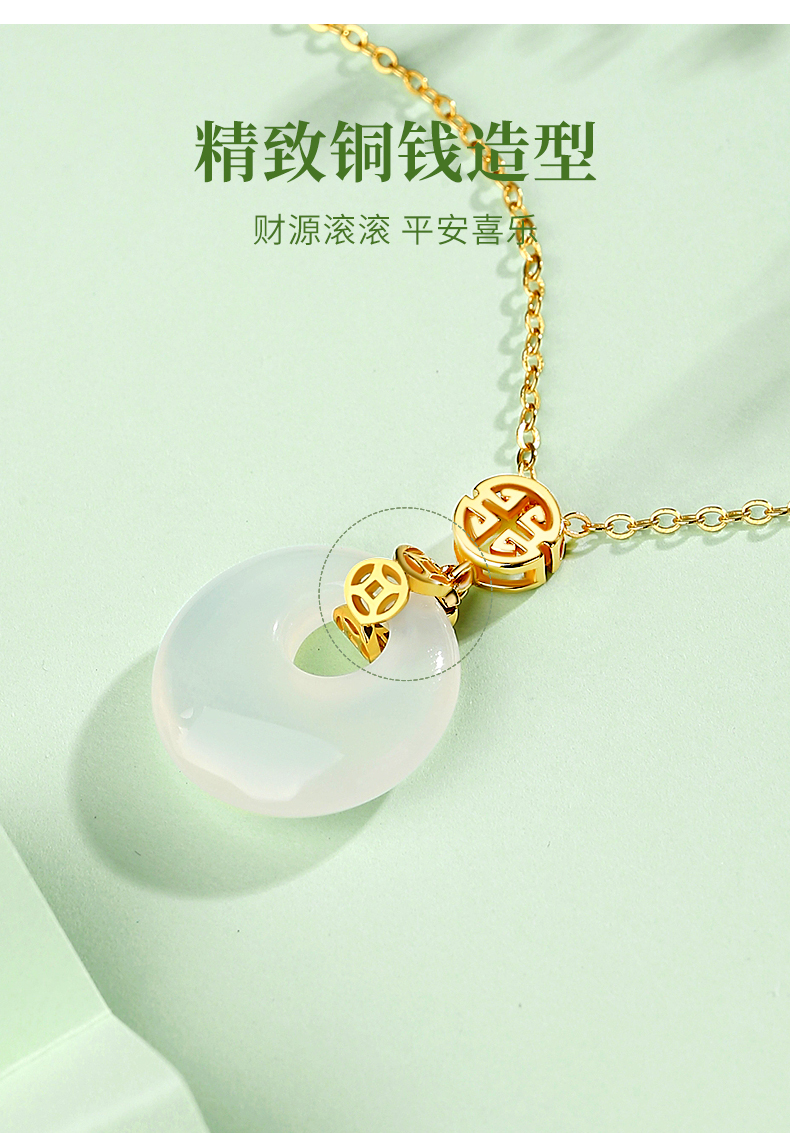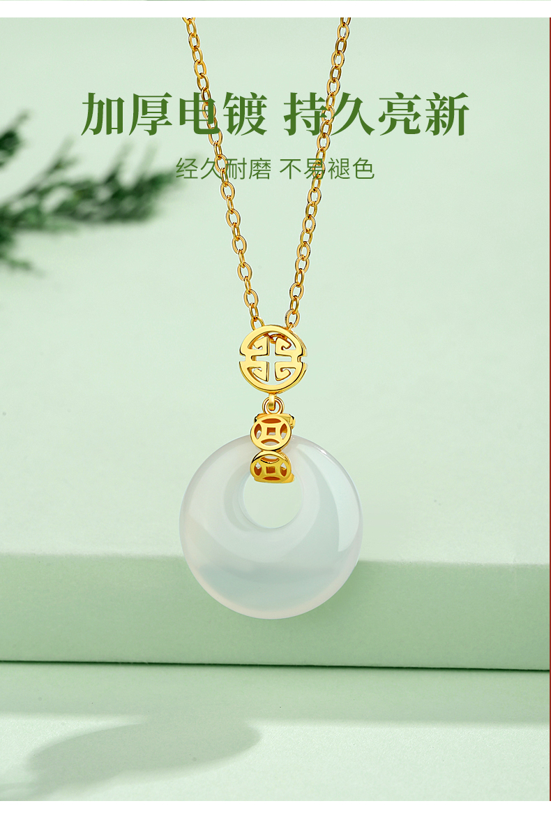 【福气满满】卡蒂罗/KADER 如意福牌项链 好运玉满福银镶玉平安扣 小众新中式如意锁骨链平安聚财上班上学