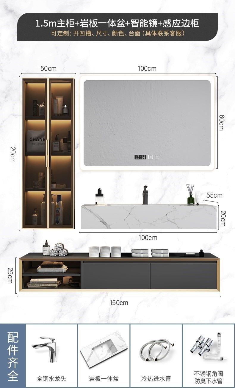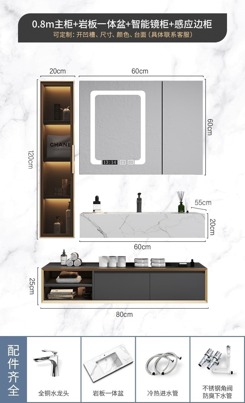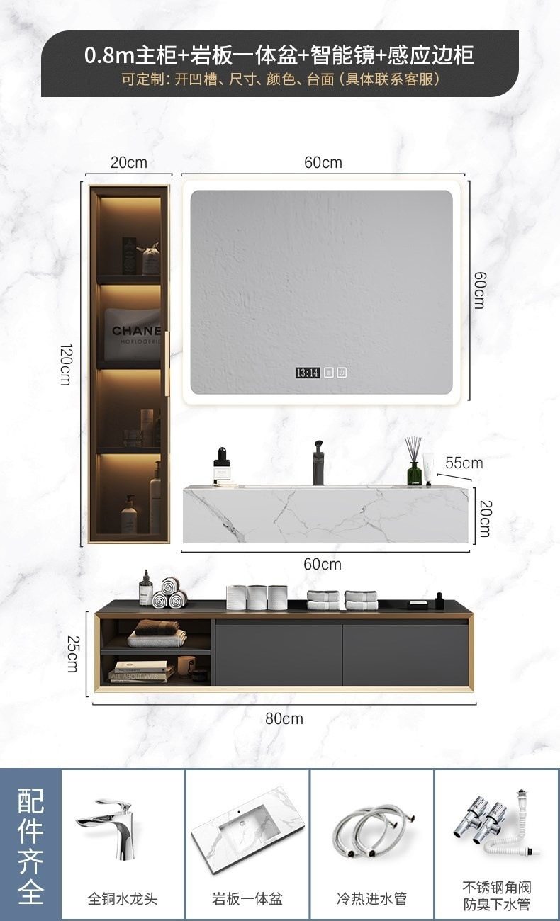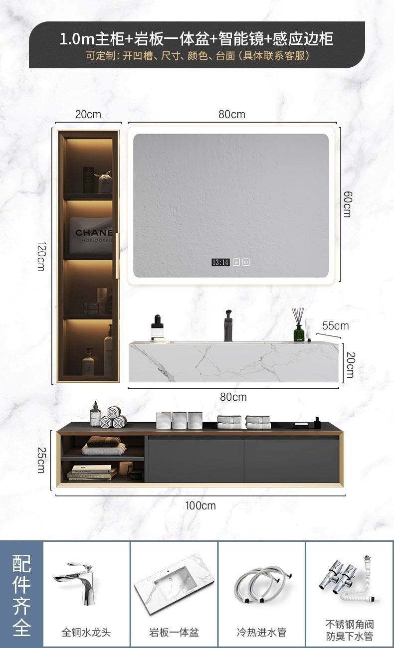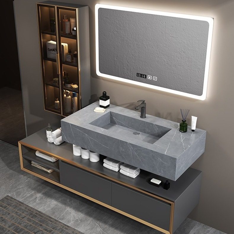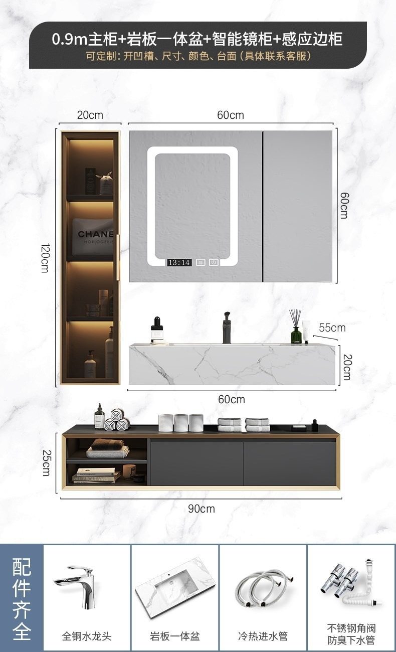 北欧洗手池现代浴室柜盆卫生间岩板浴室柜洗脸盆智能组合一体轻奢