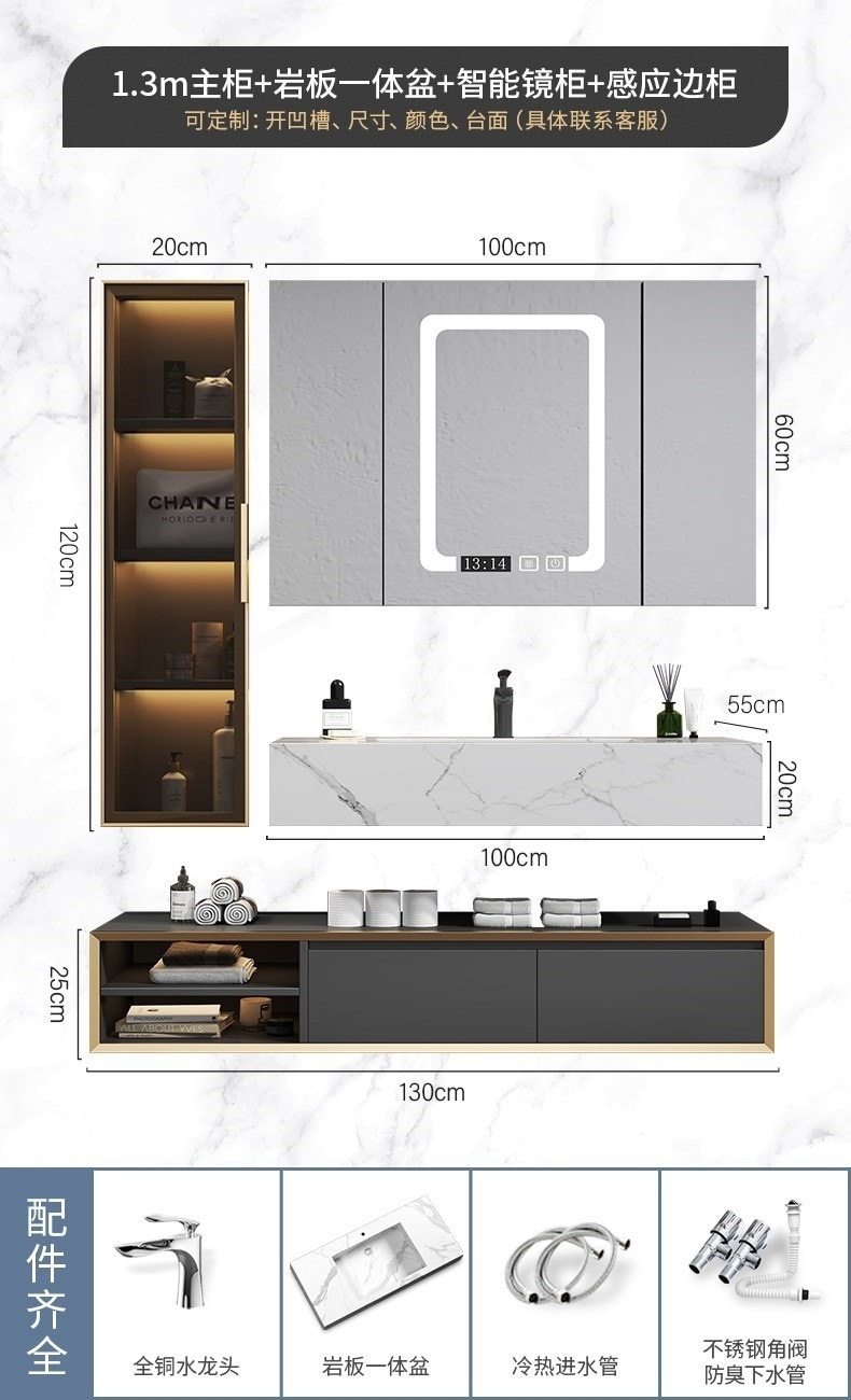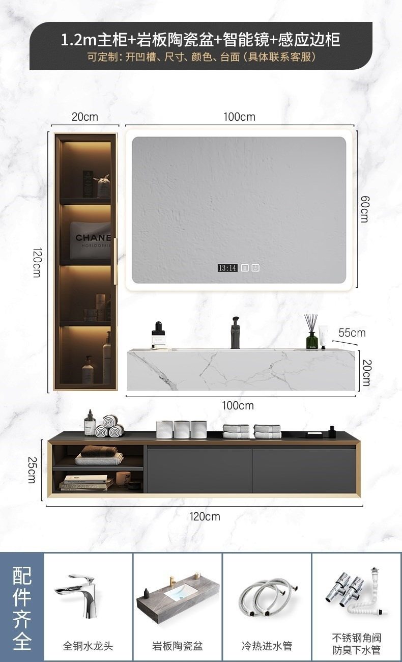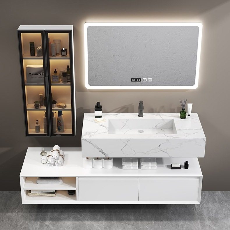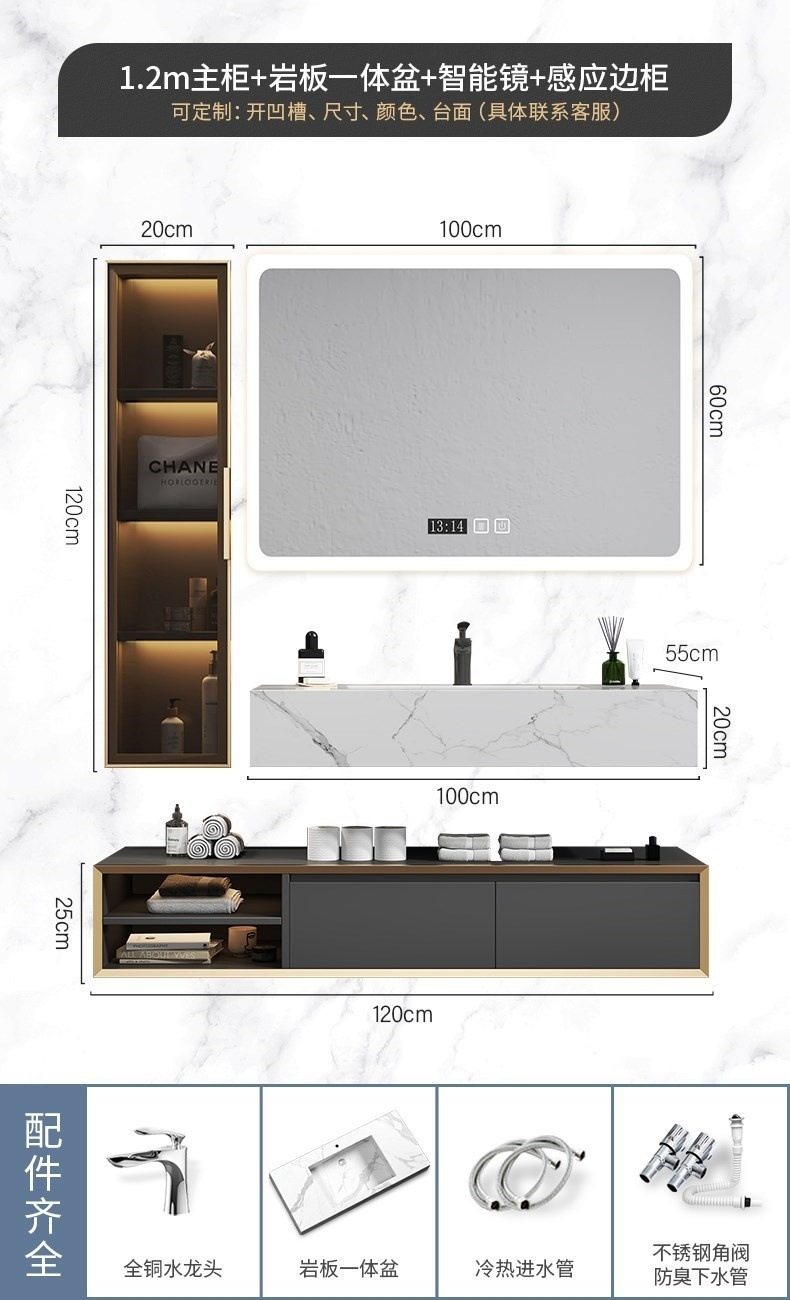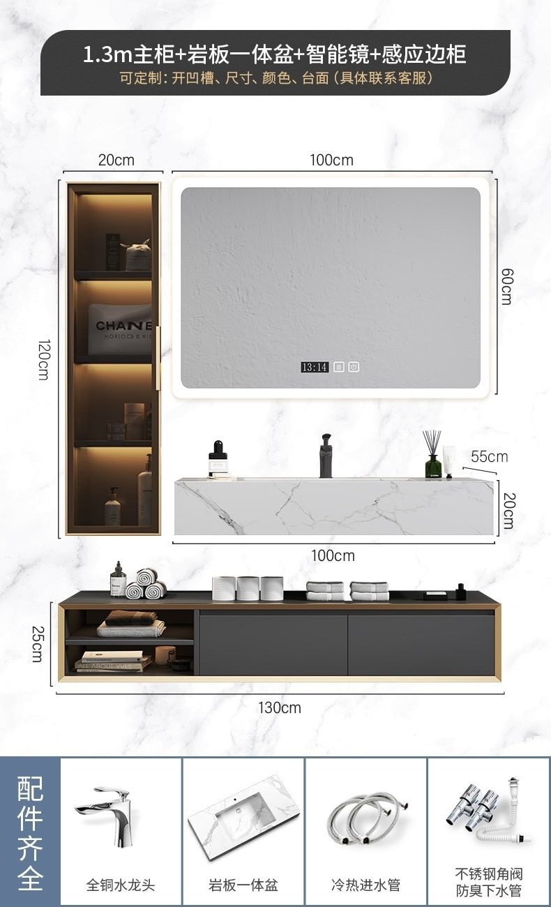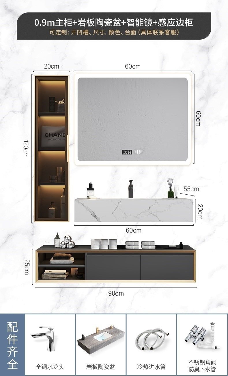 北欧洗手池现代浴室柜盆卫生间岩板浴室柜洗脸盆智能组合一体轻奢