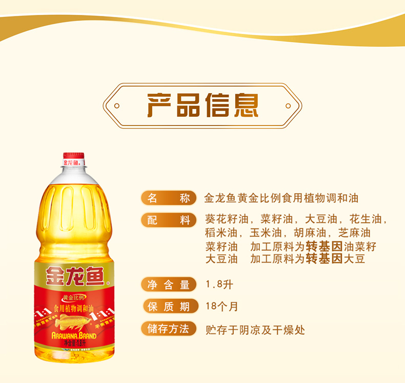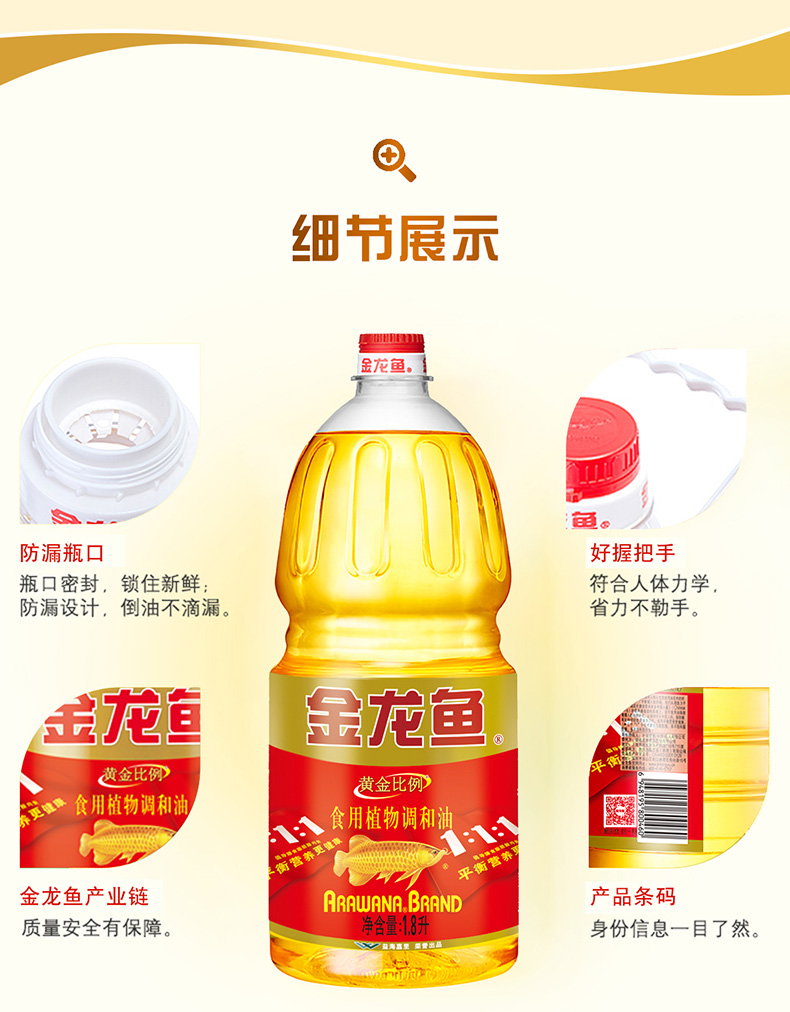 金龙鱼黄金比例食用植物调和油 1.8L【LY】