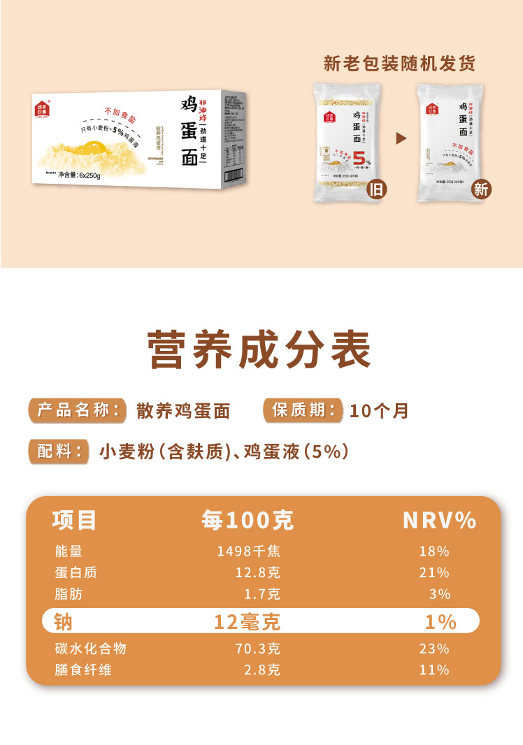 【产品介绍】配料仅有机小麦粉+鸡蛋液、健康安全; 非油炸、热风干燥、不易上火; 爽滑劲道不易烂、老人小孩都能吃;