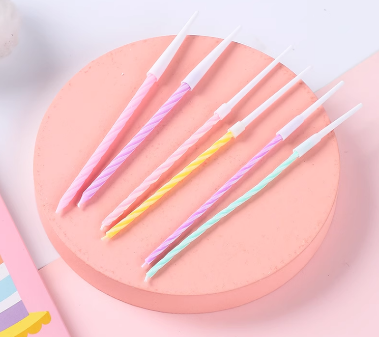 喜相逢A3蜡烛 12支 彩色螺纹蜡烛 生日蜡烛直蜡 粉盒蜡烛