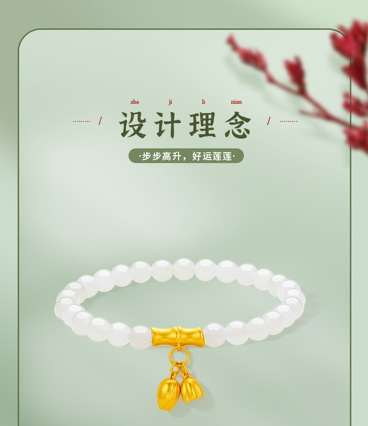 周六福和田玉手串女金镶玉黄金白玉步步高升莲蓬手链送女友礼物