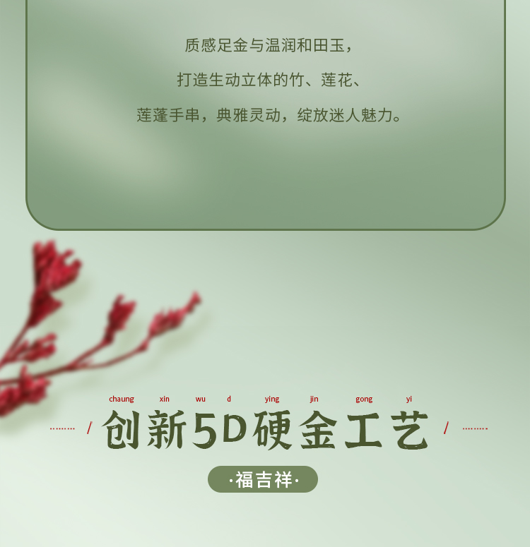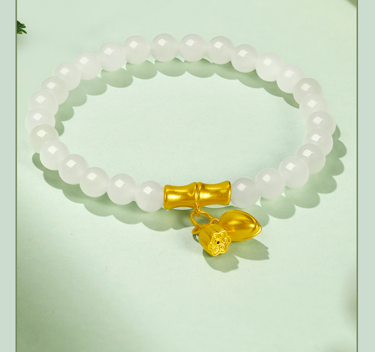 周六福黄金和田玉手链女款和田玉石金竹玉叶手串送女友礼物