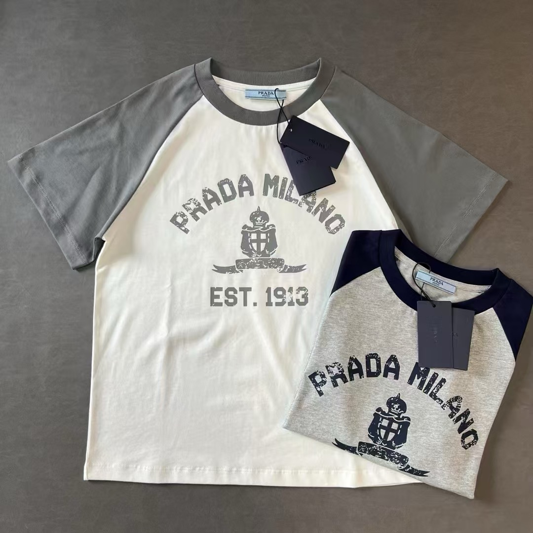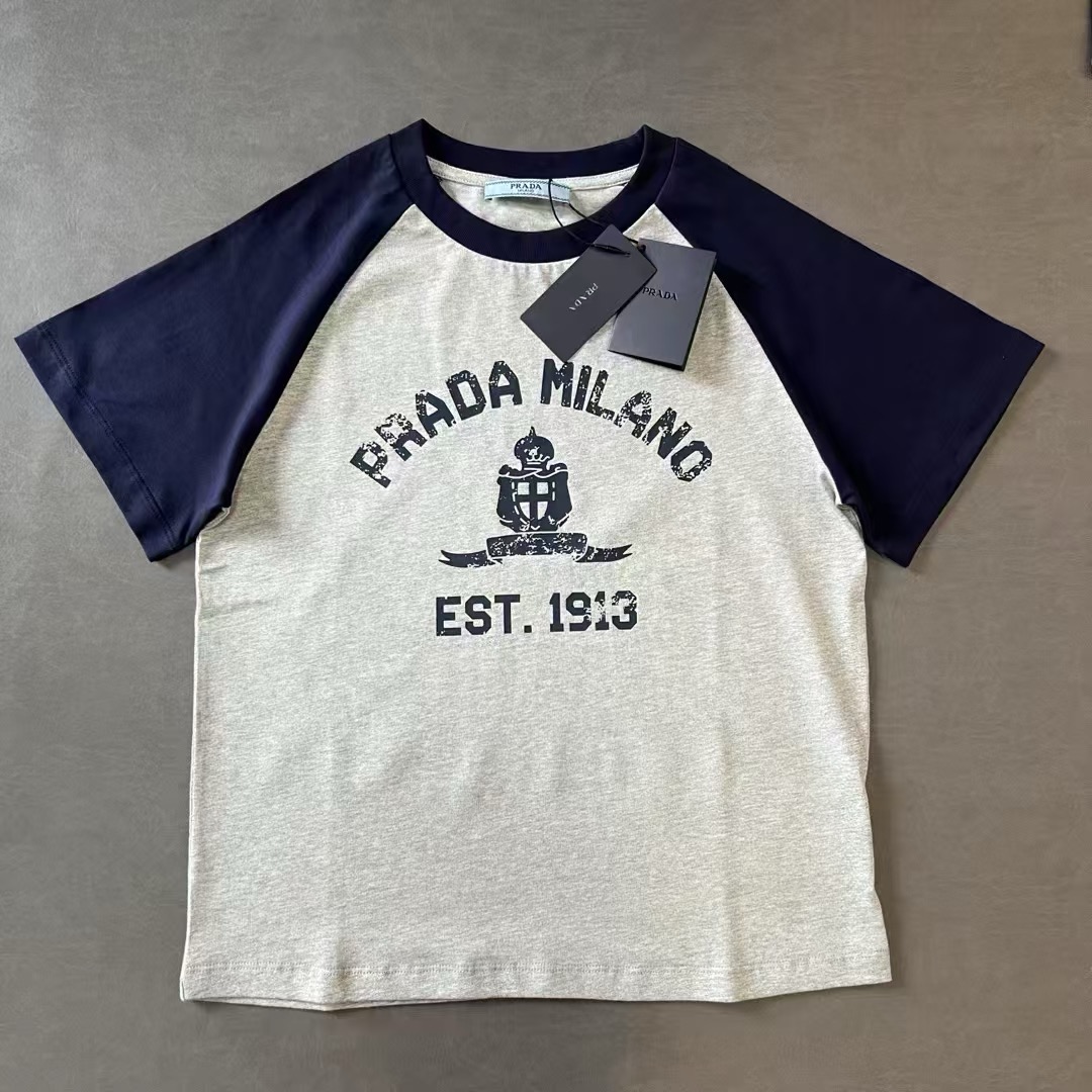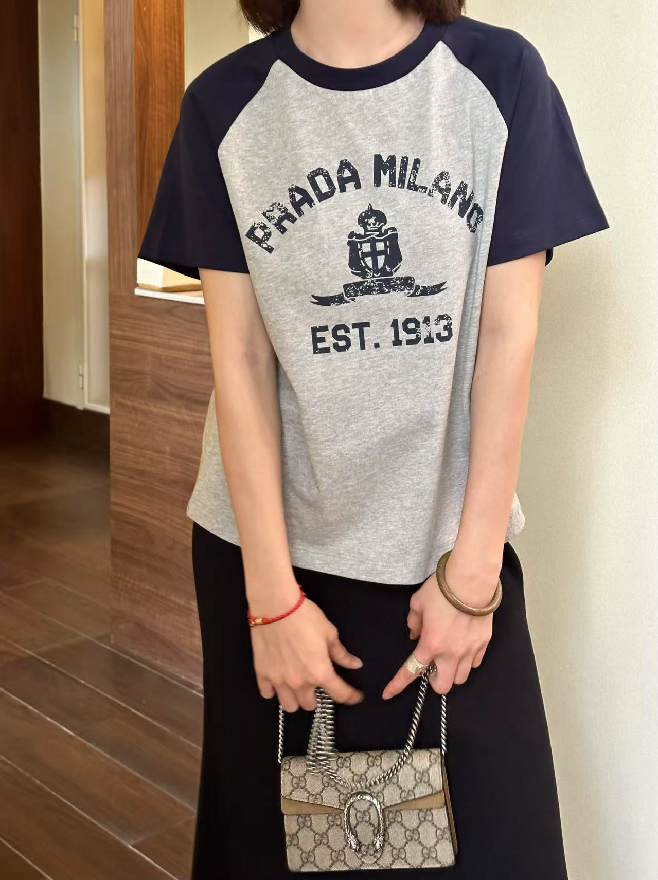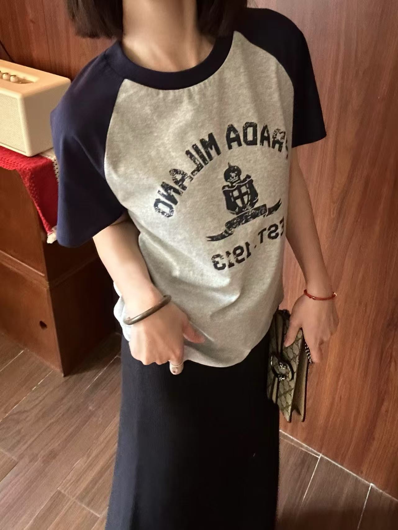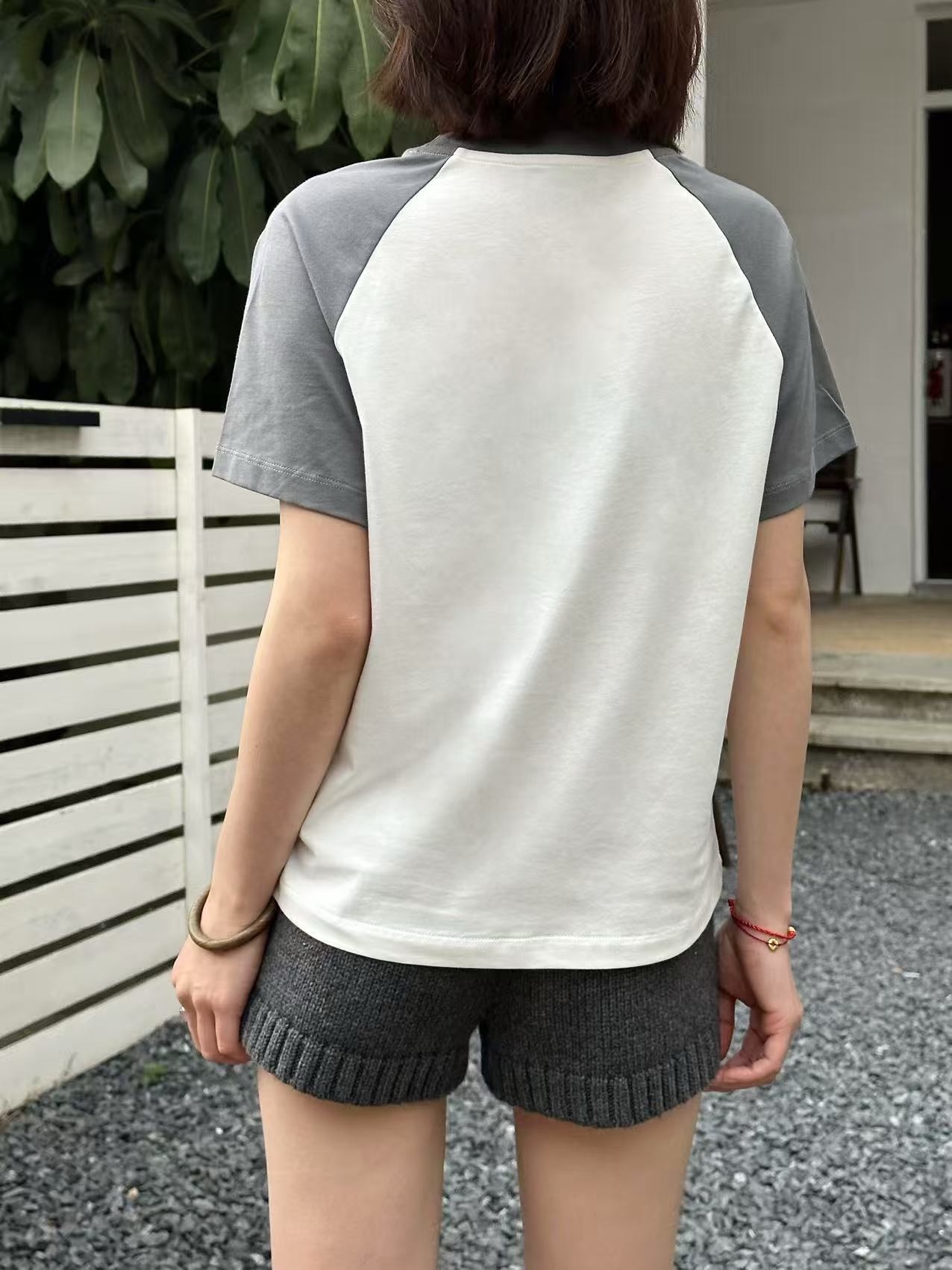 P家 拼色插肩袖女款圆领短袖T恤 Z-15091