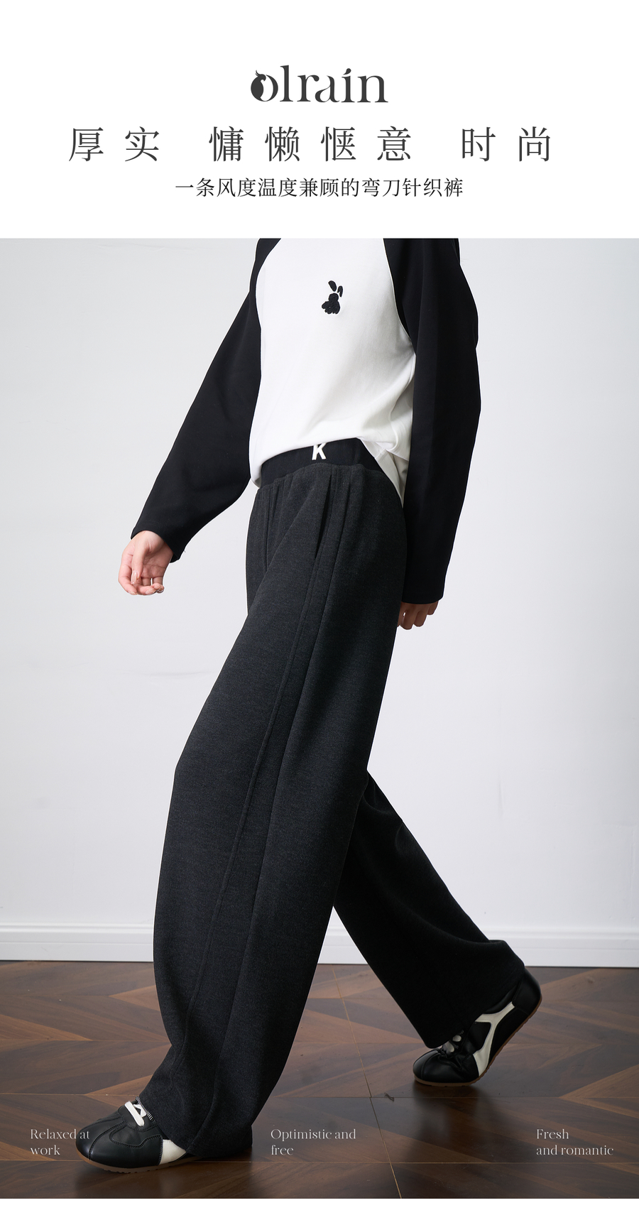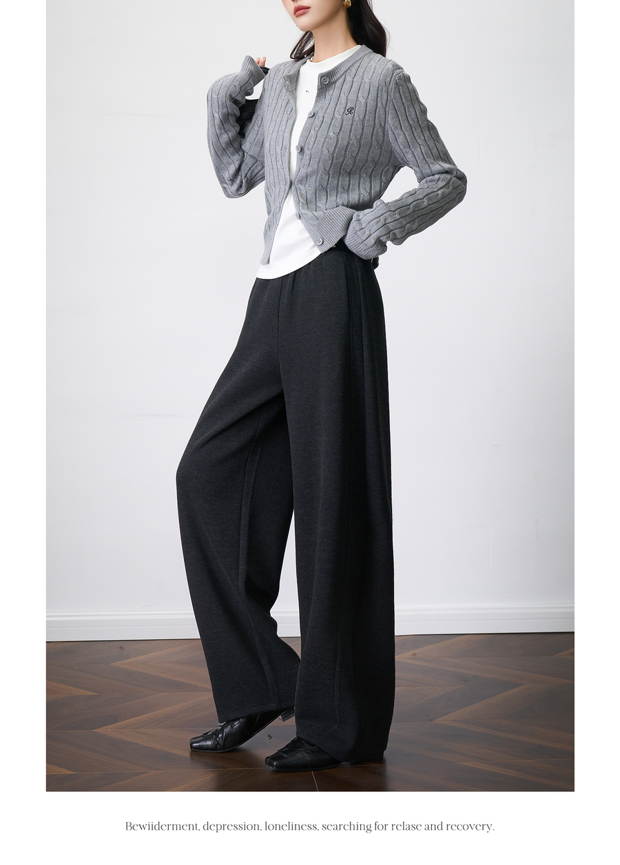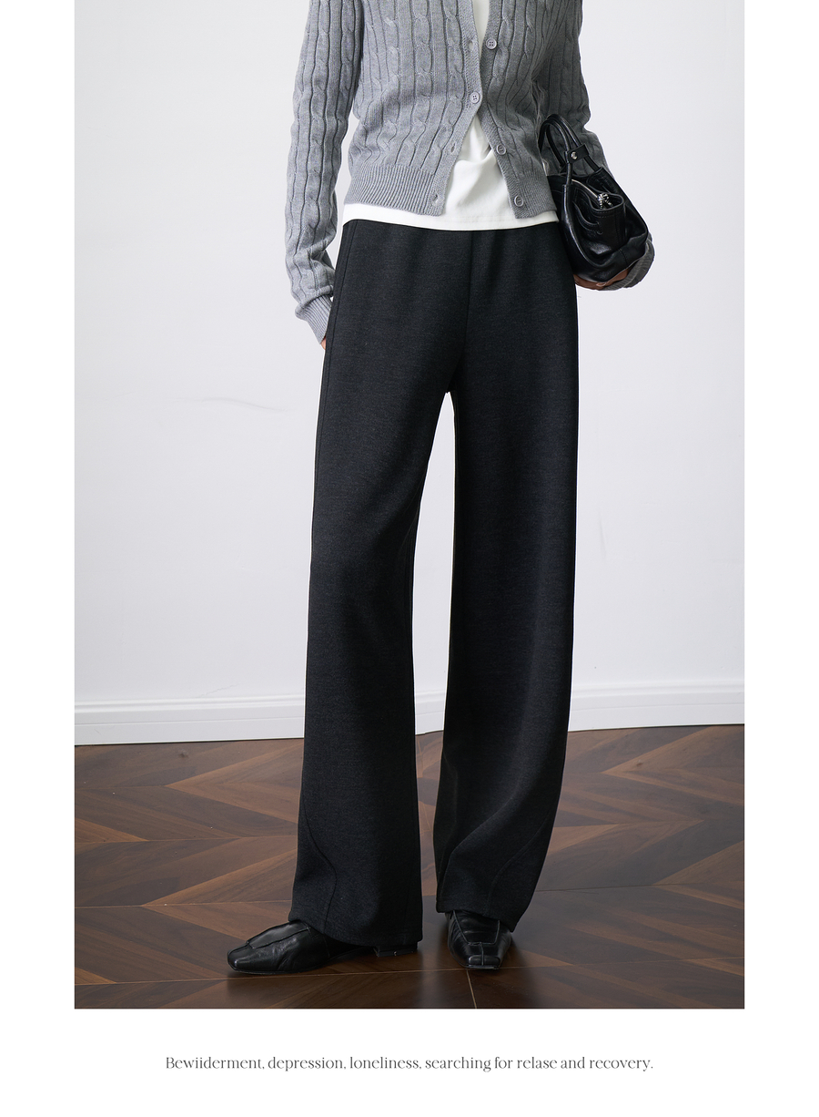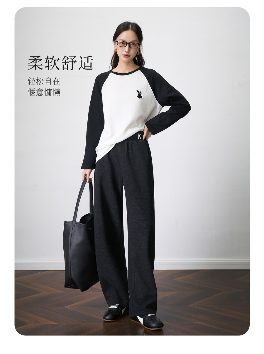 OLrain欧芮儿2025新款女秋季字母刺绣加厚针织休闲裤弯刀阔腿卫裤