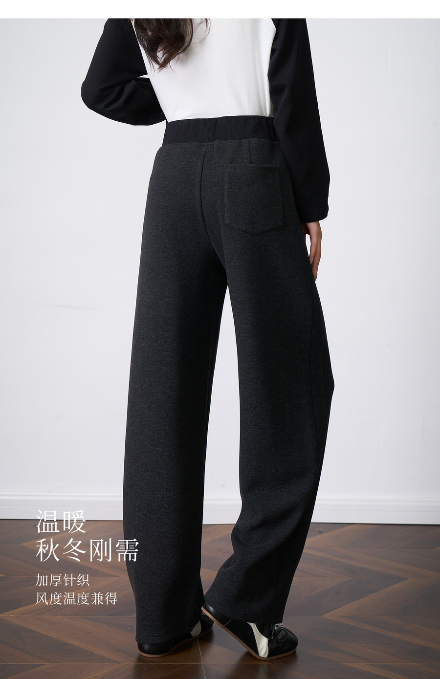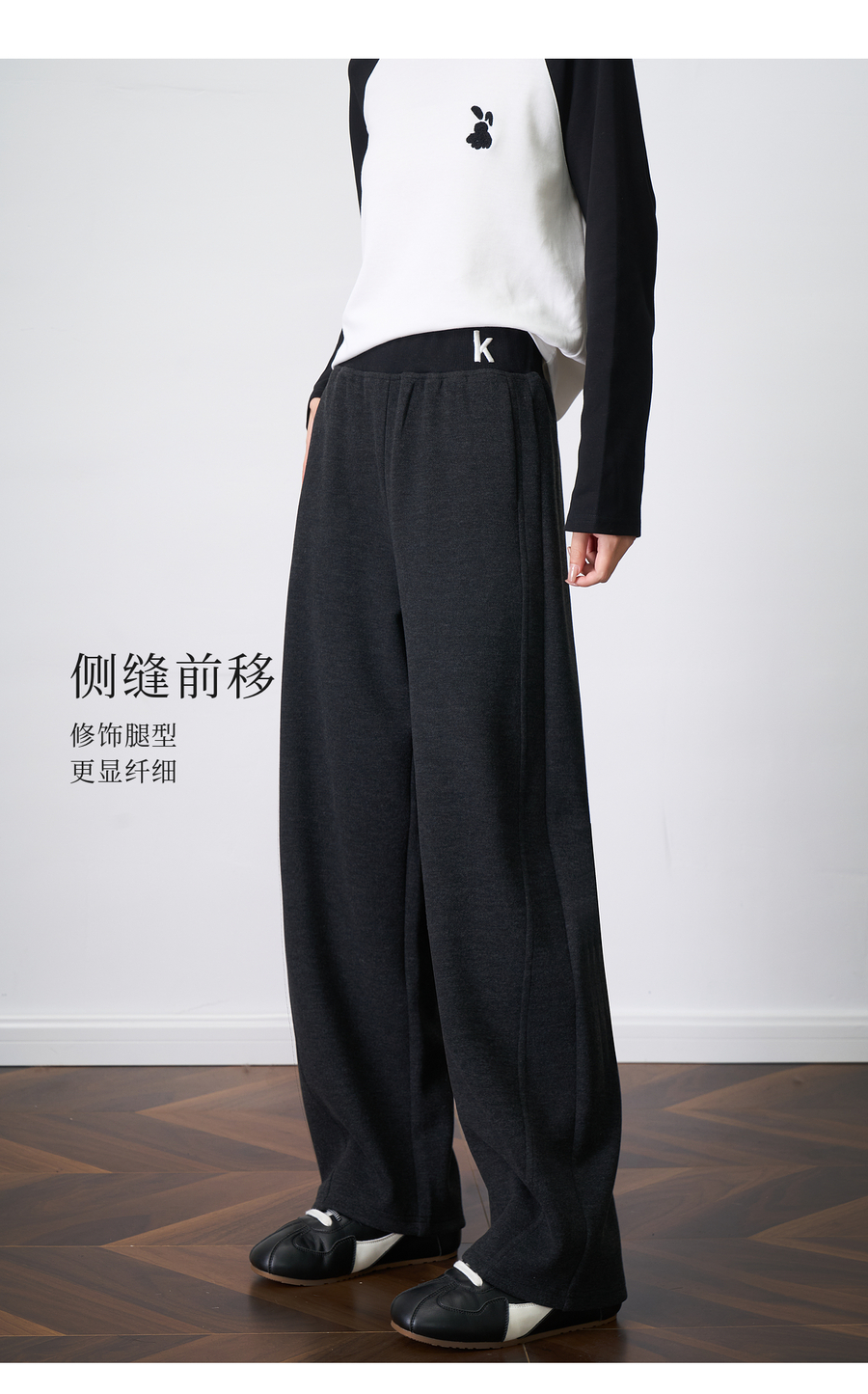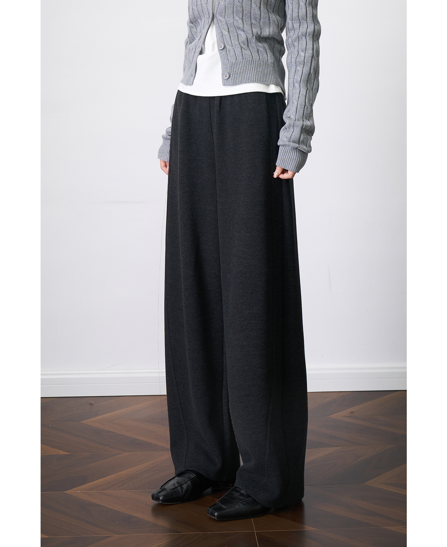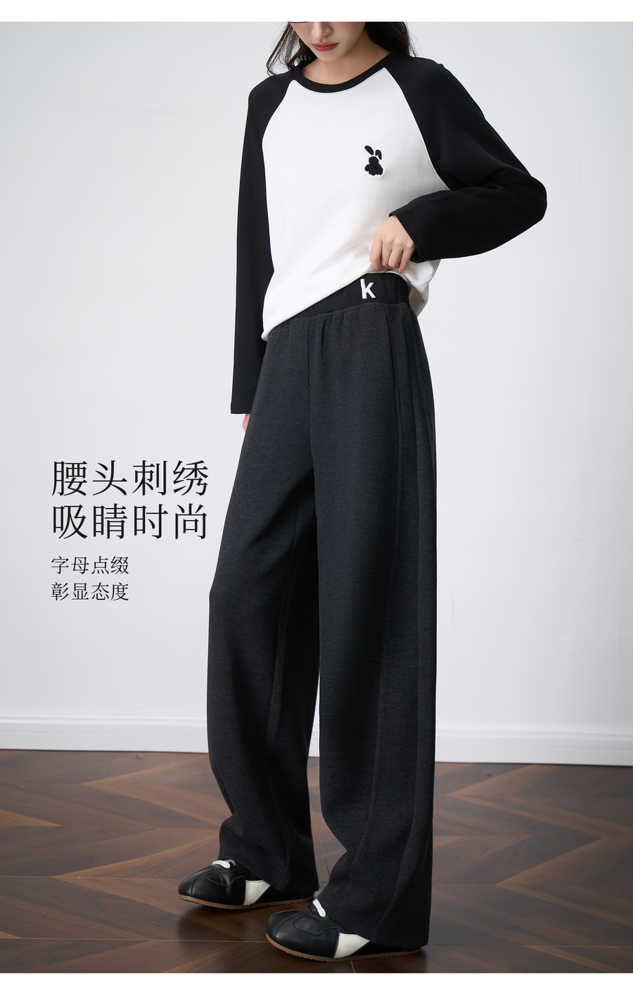 OLrain欧芮儿2025新款女秋季字母刺绣加厚针织休闲裤弯刀阔腿卫裤
