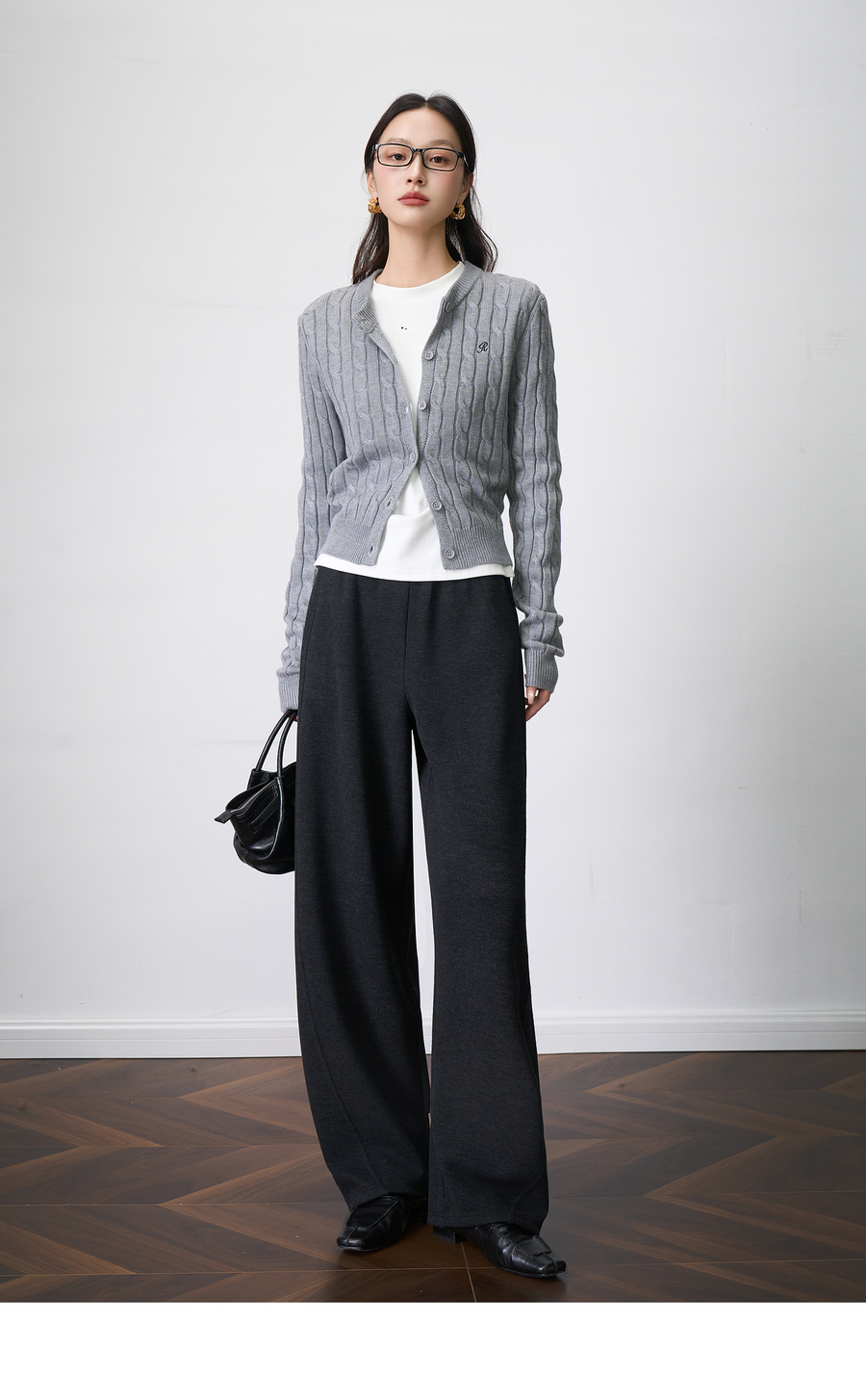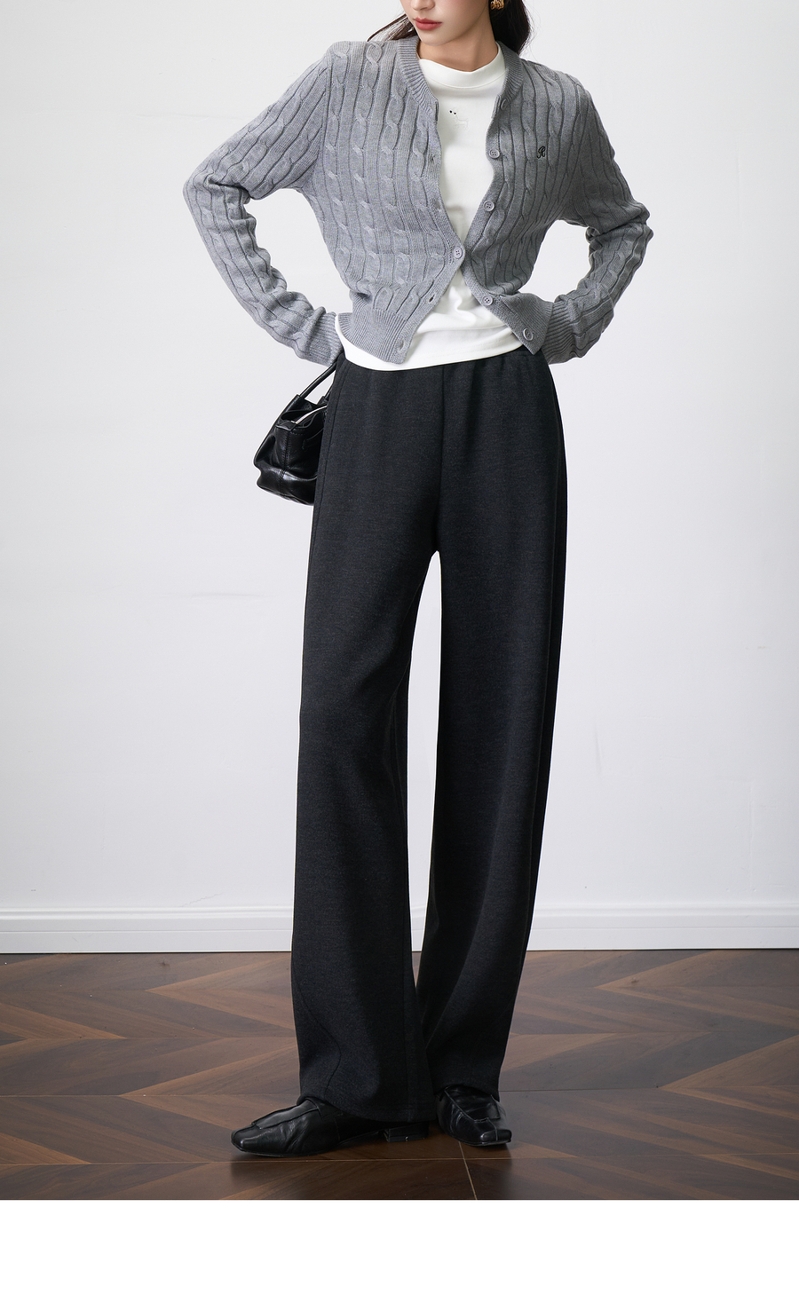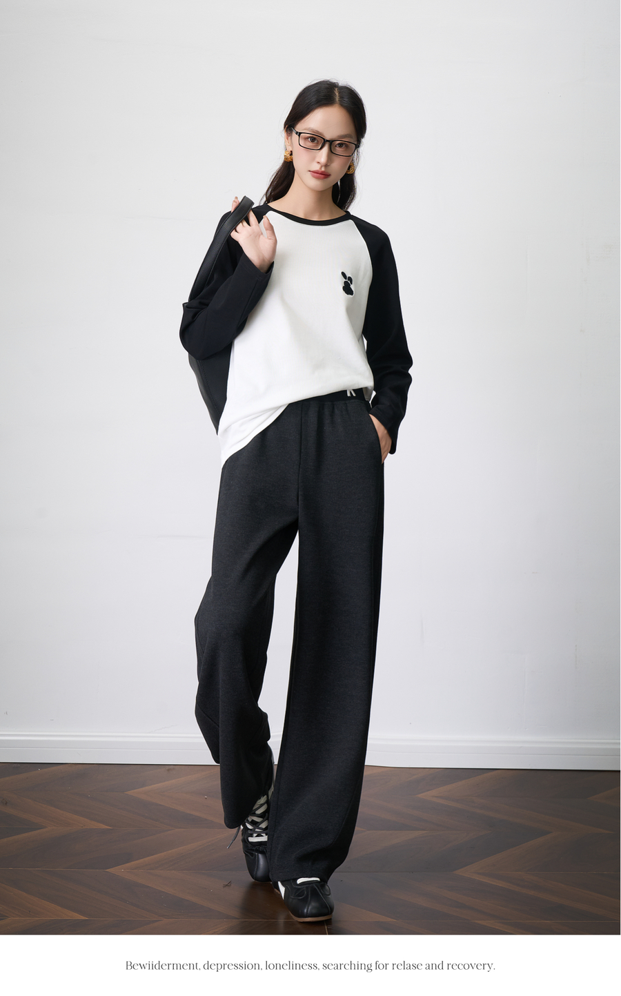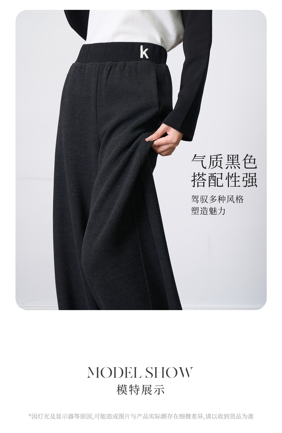 OLrain欧芮儿2025新款女秋季字母刺绣加厚针织休闲裤弯刀阔腿卫裤