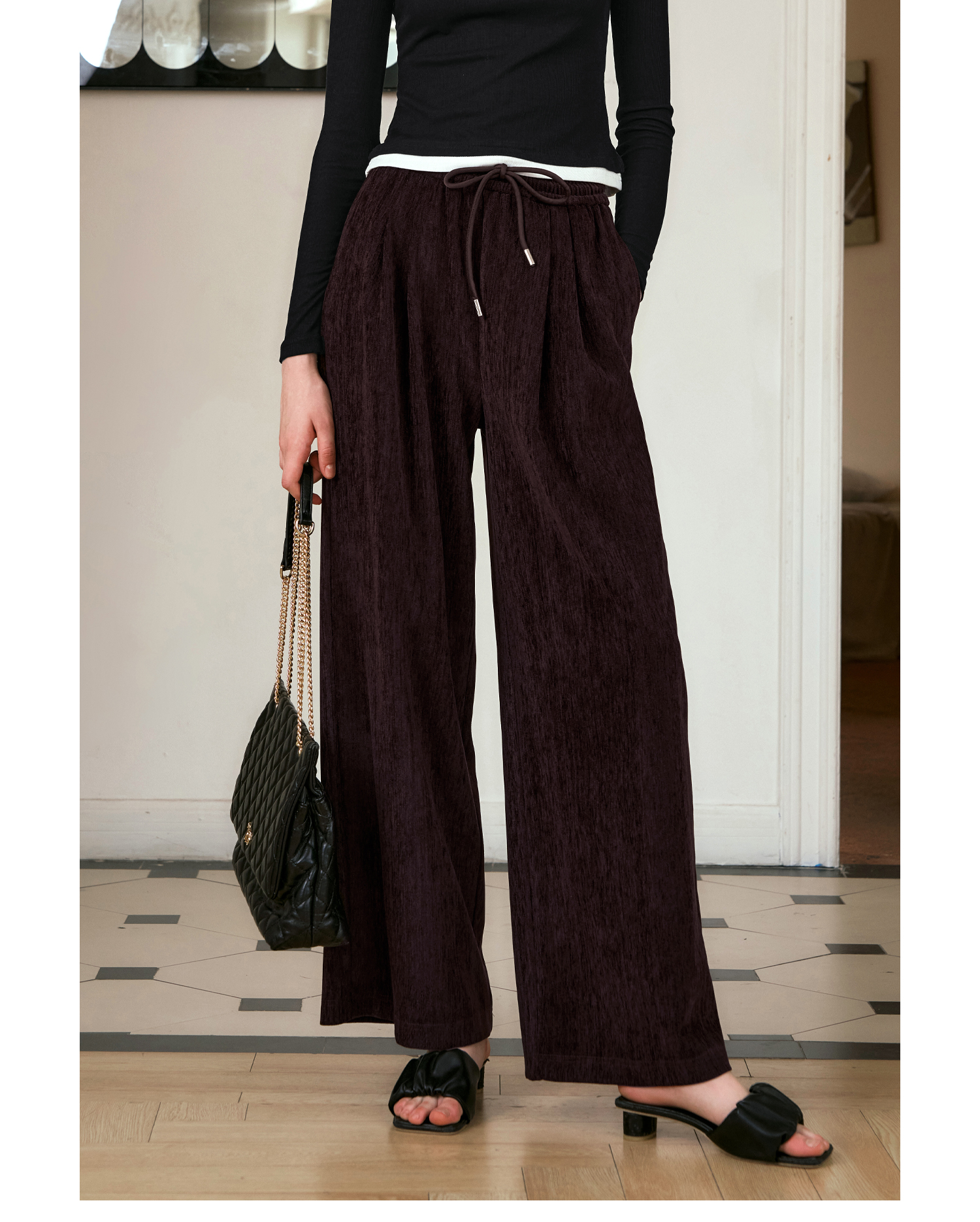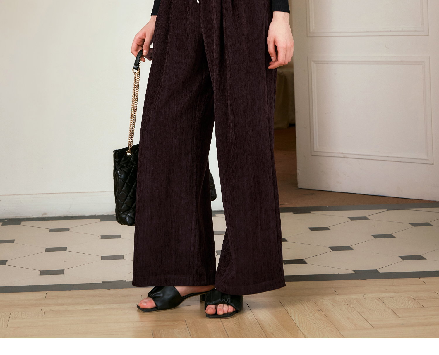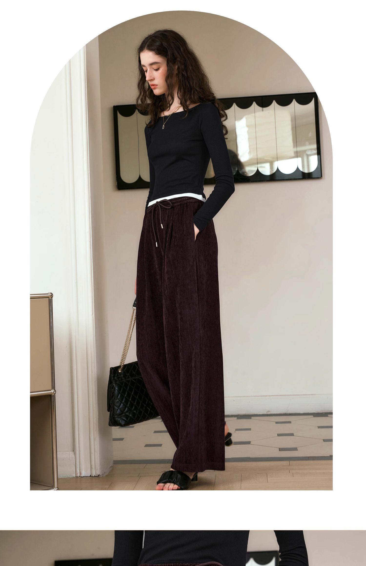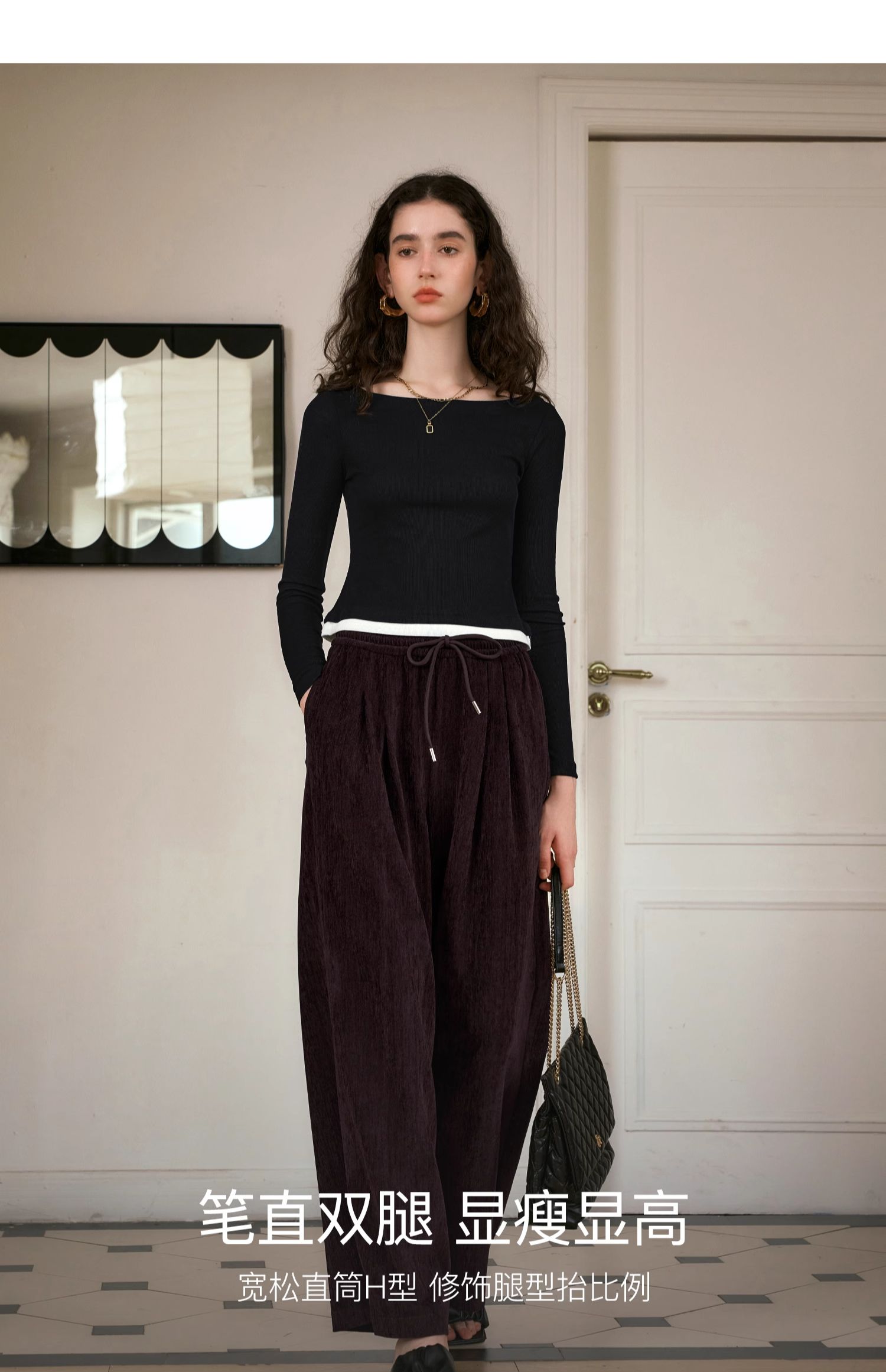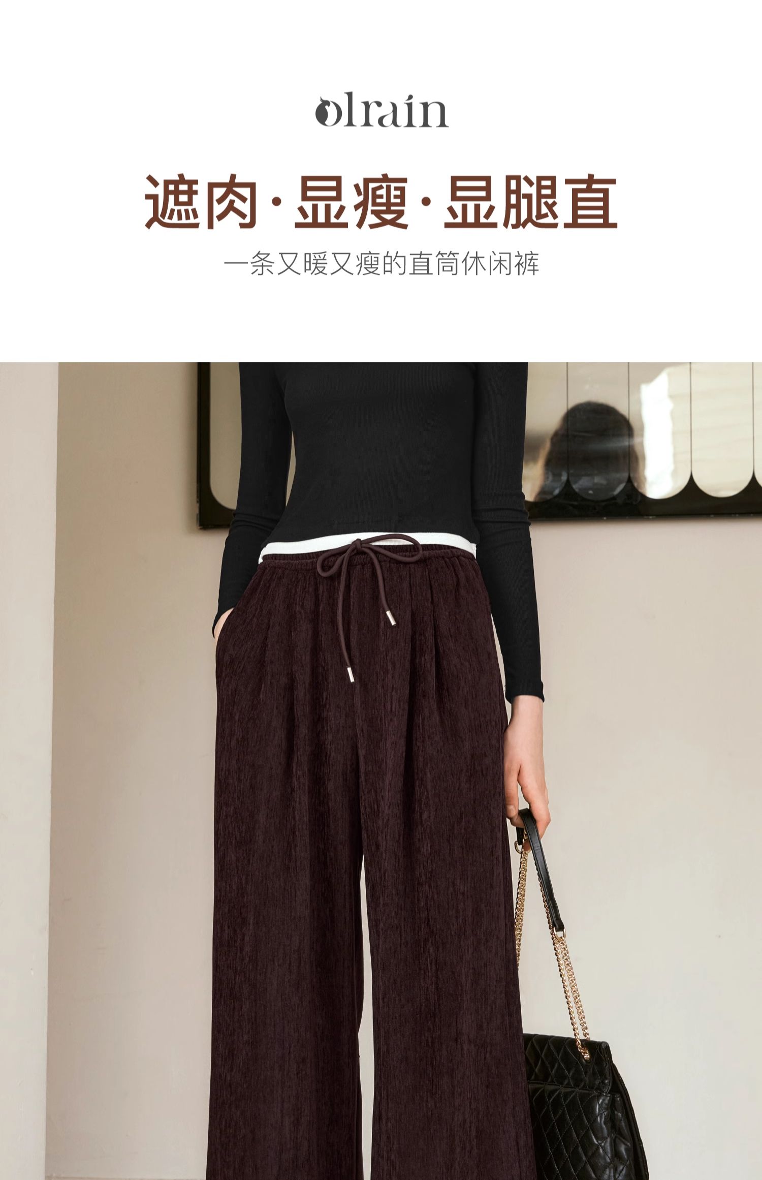 OLrain欧芮儿高腰休闲裤女秋季2024年新款慵懒风通勤宽松直筒长裤