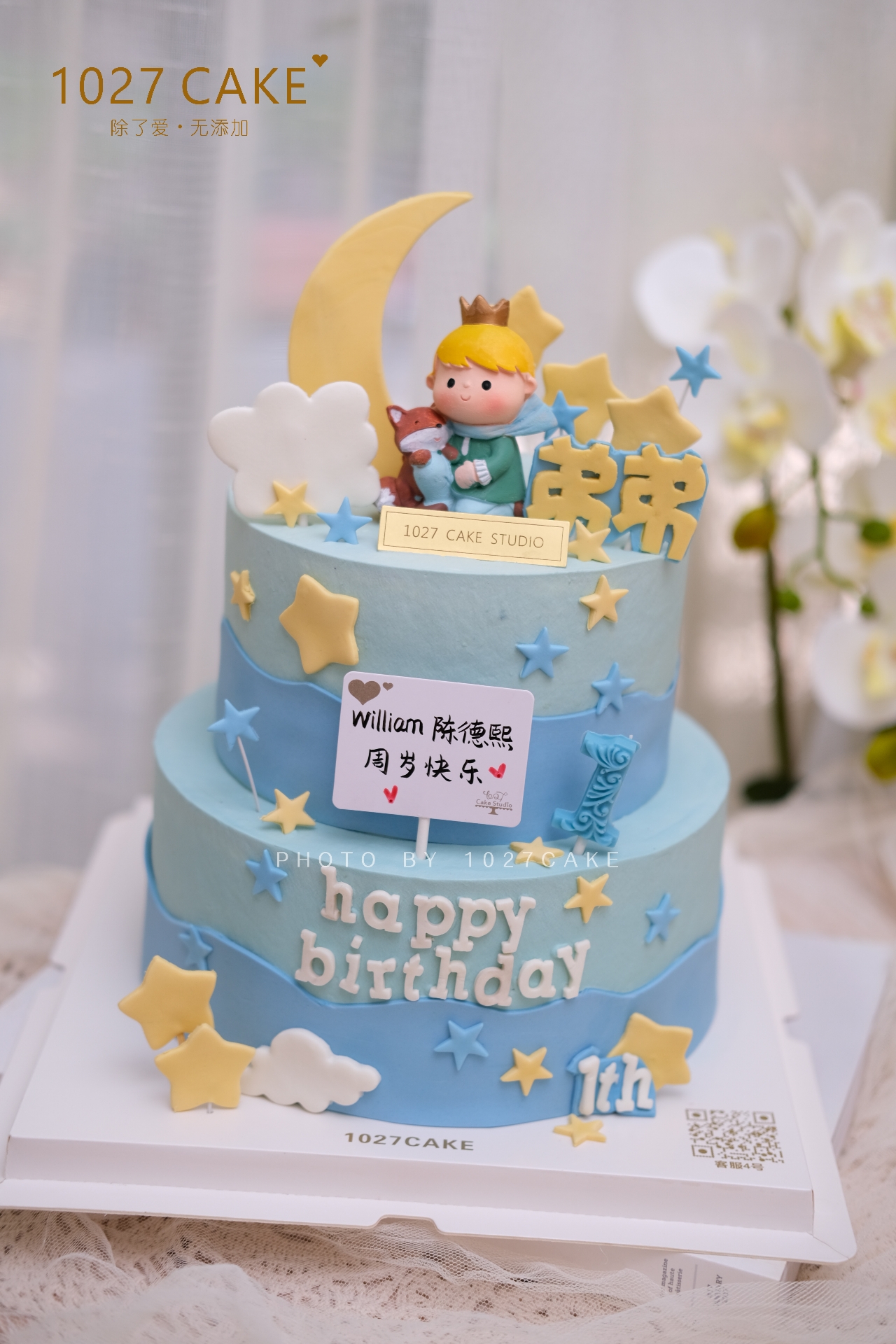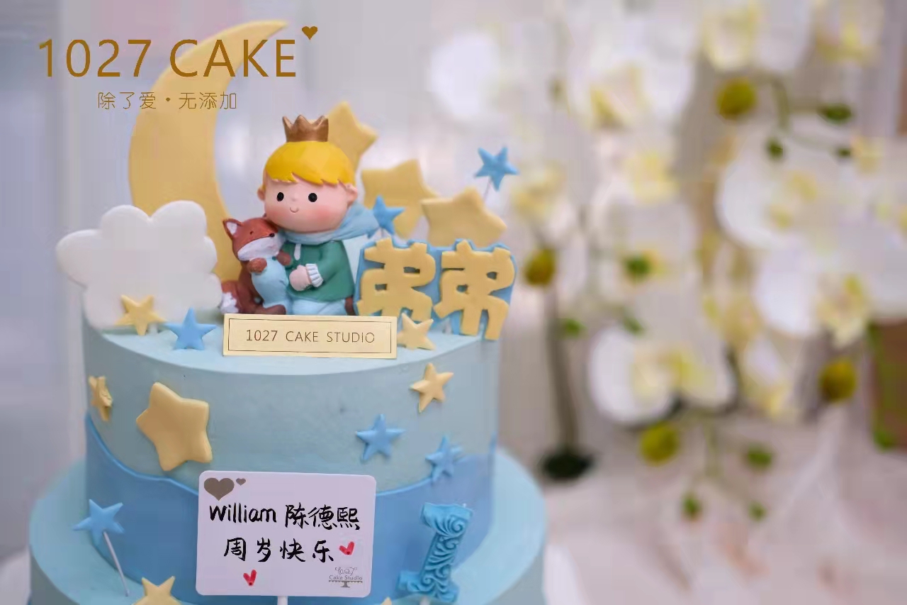 1027CAKE | 双层 蓝色系 翻糖小装饰 周岁蛋糕 小王子