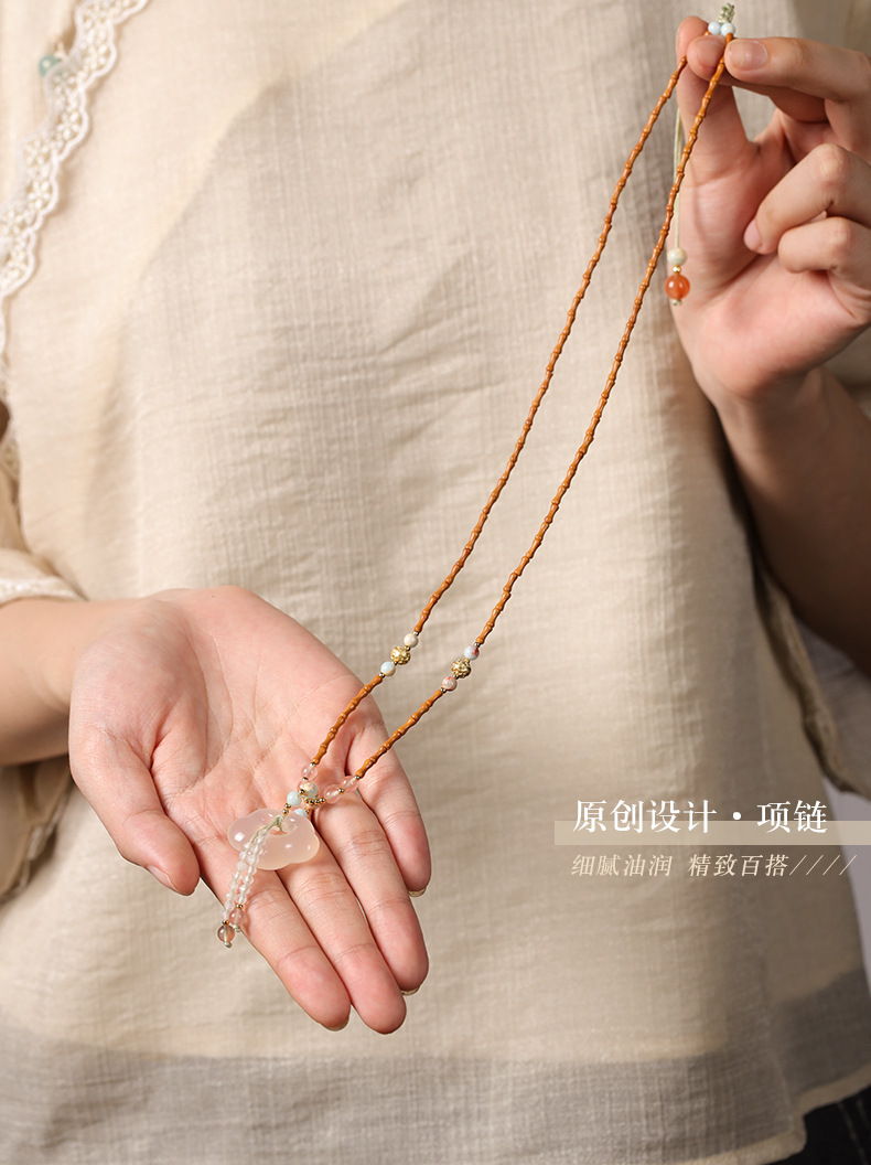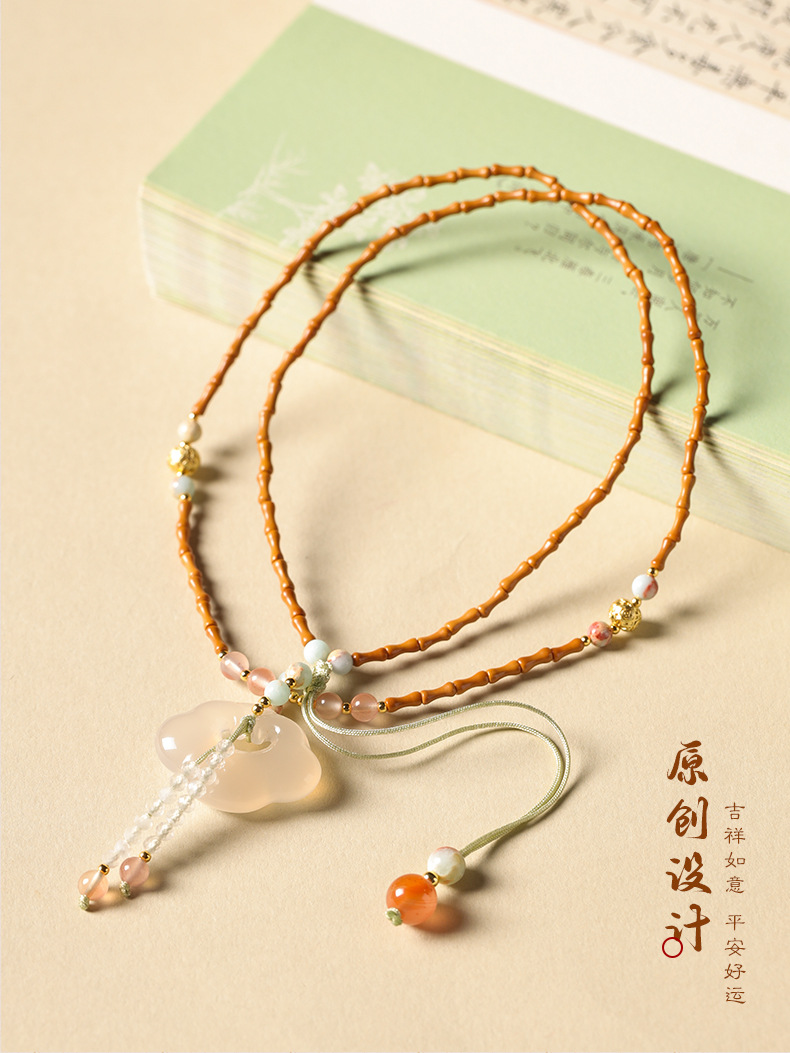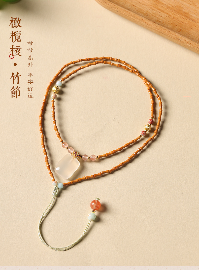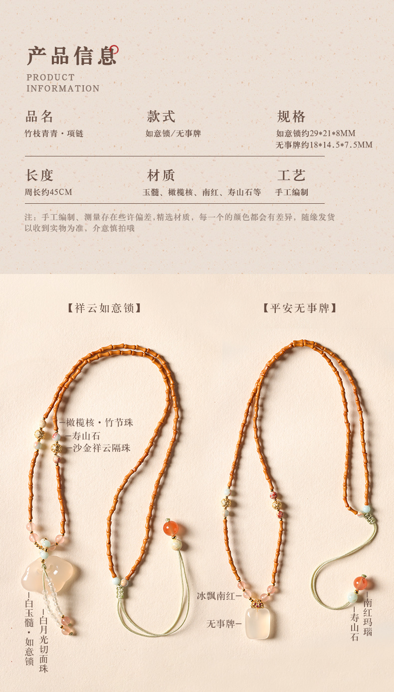 「竹枝青青·高级感小众设计」新中式橄榄核竹节白玉髓如意锁项链 国风设计款平安无事牌锁骨链女时尚饰品