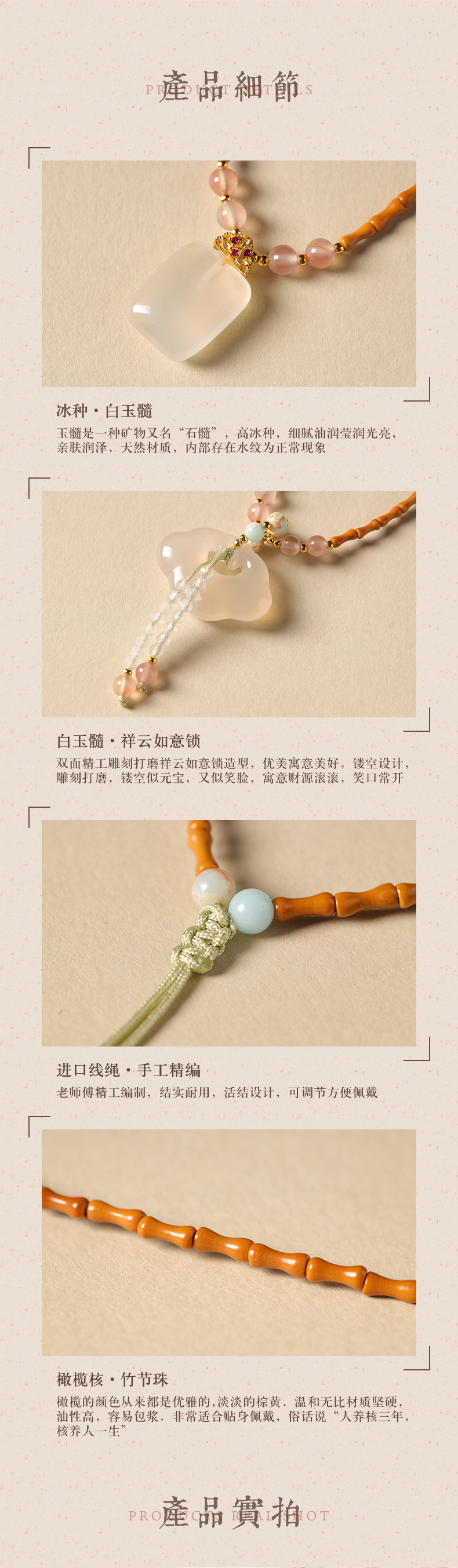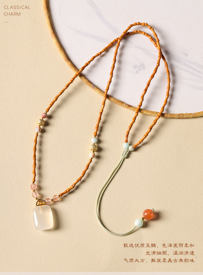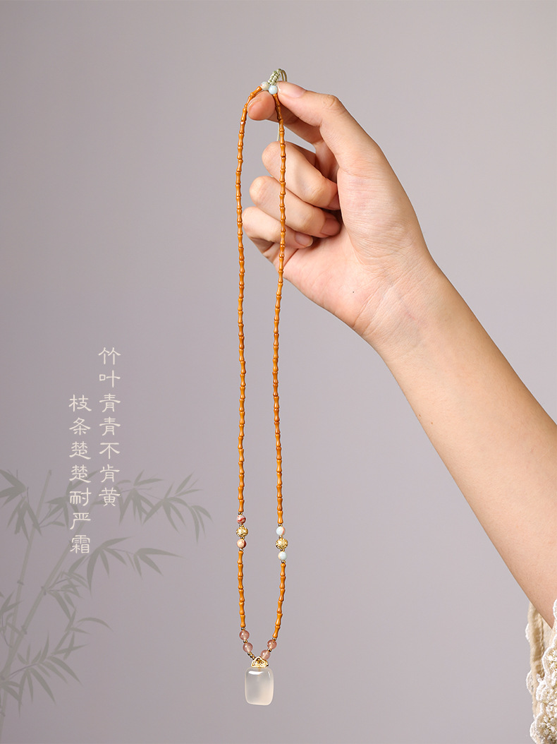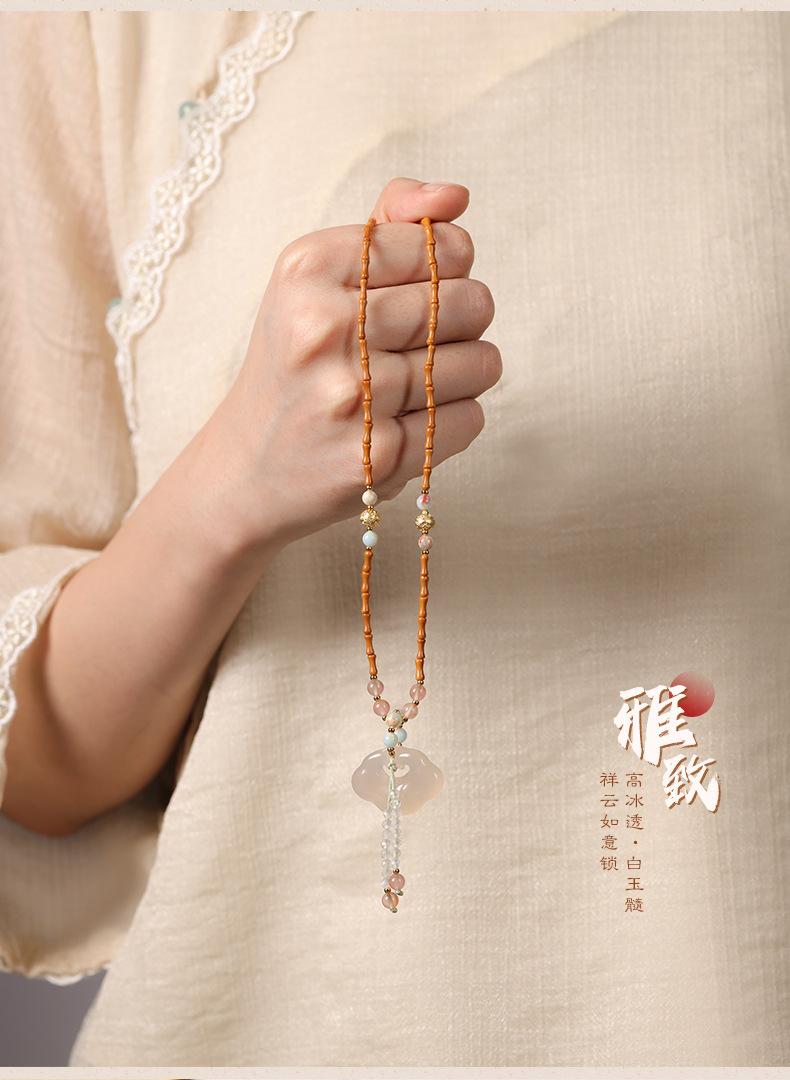 「竹枝青青·高级感小众设计」新中式橄榄核竹节白玉髓如意锁项链 国风设计款平安无事牌锁骨链女时尚饰品