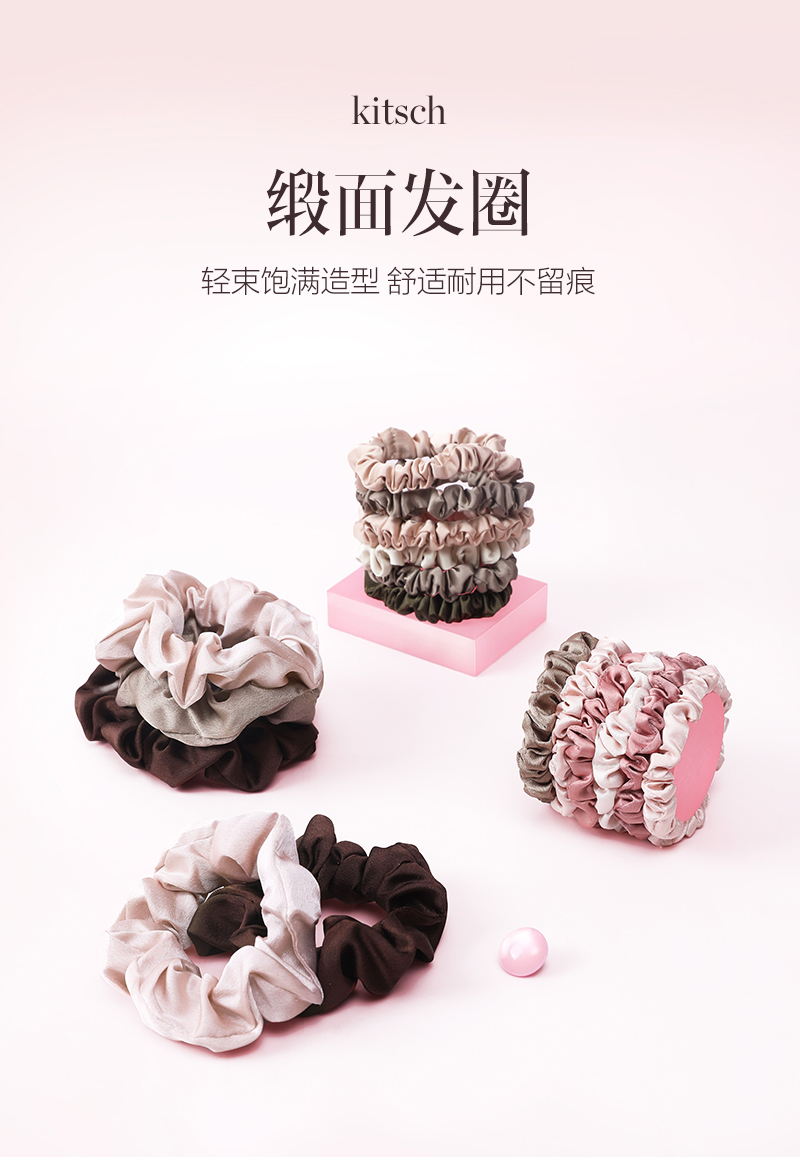 保税直发 kitsch 小号缎面发圈 桉树 6件装(奶白色1+浅褐色2+灰褐色2+墨绿色1)/盒 / 赤陶色 6件装(浅香槟色1+浅粉色2+玫瑰粉2+浅褐色)2g/盒