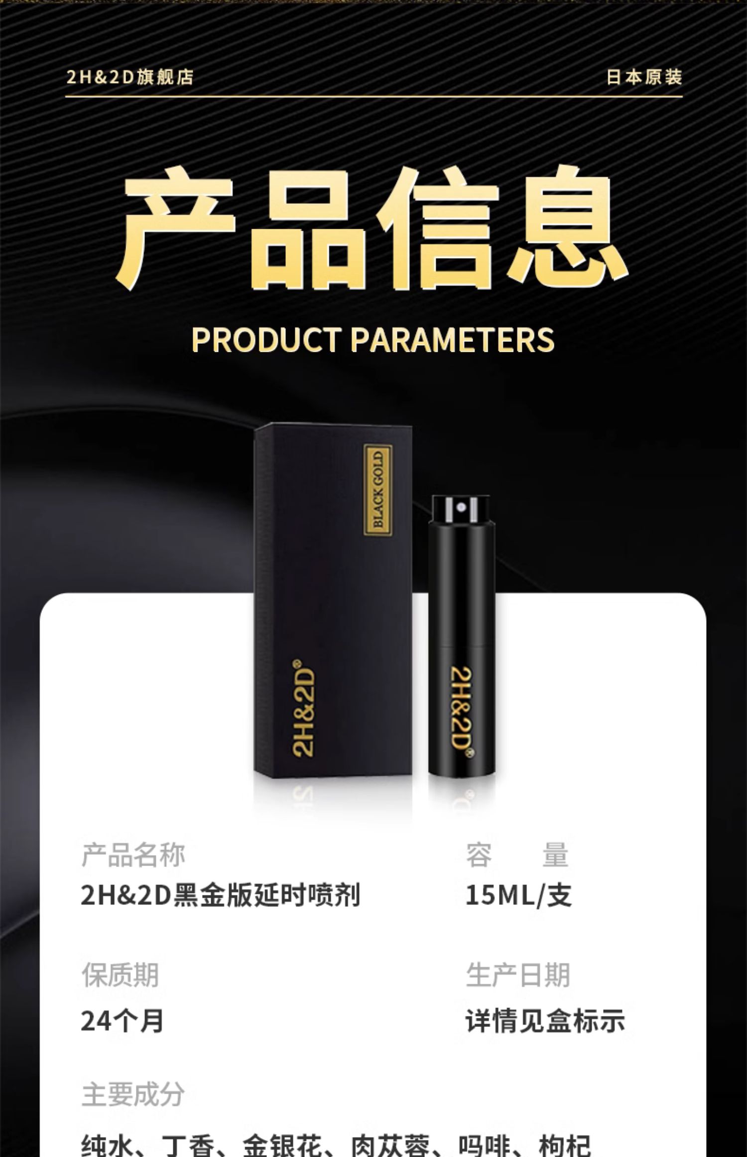 日本2H2D持久喷剂 15ML/瓶