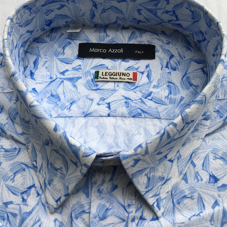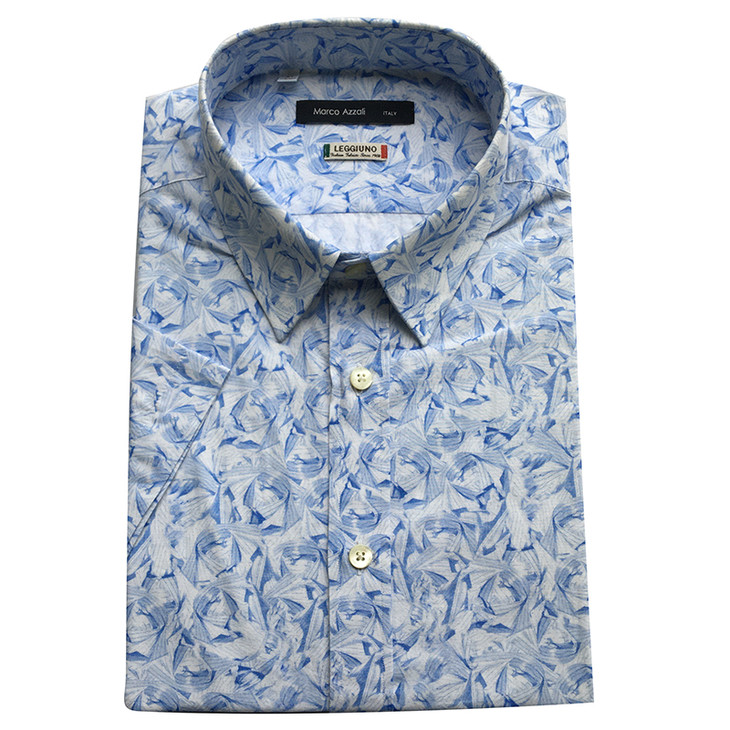 Marco Azzali 蓝色印花LEGGIUNO短袖衬衫 C3209600