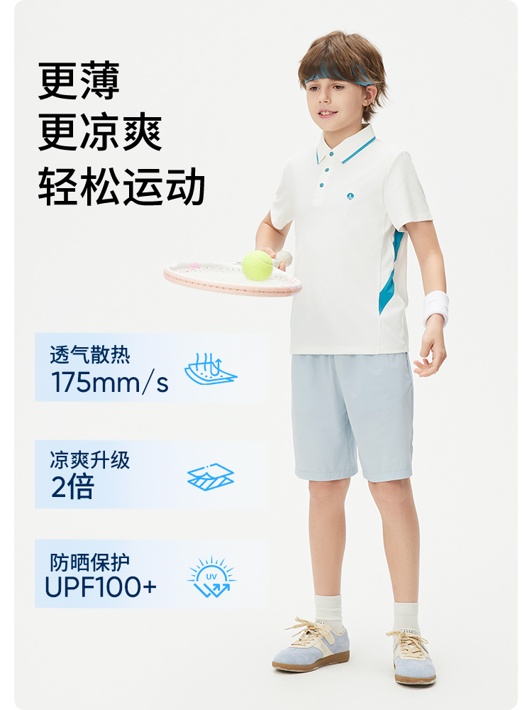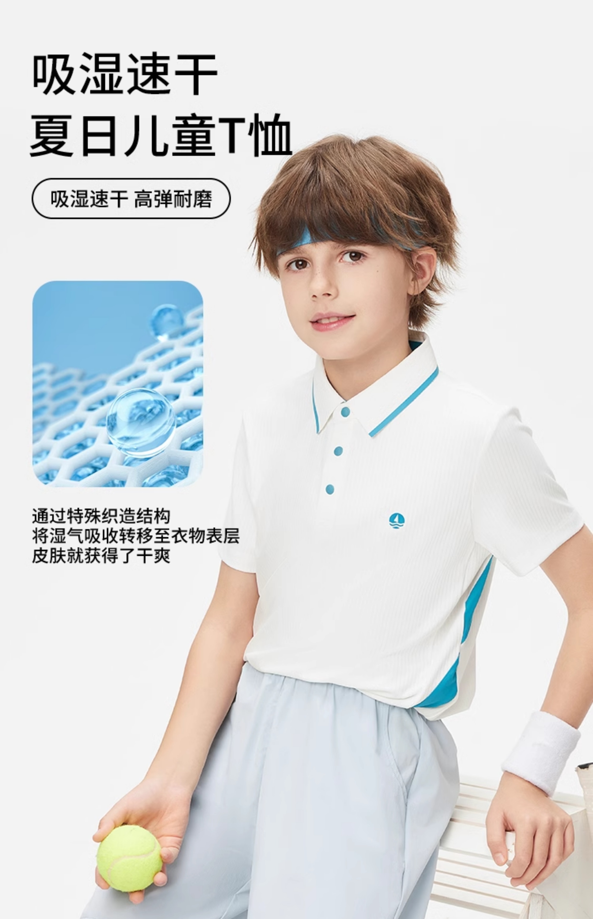 【英氏】【110-180】【5A抑菌】男童夏季短袖POLO衫