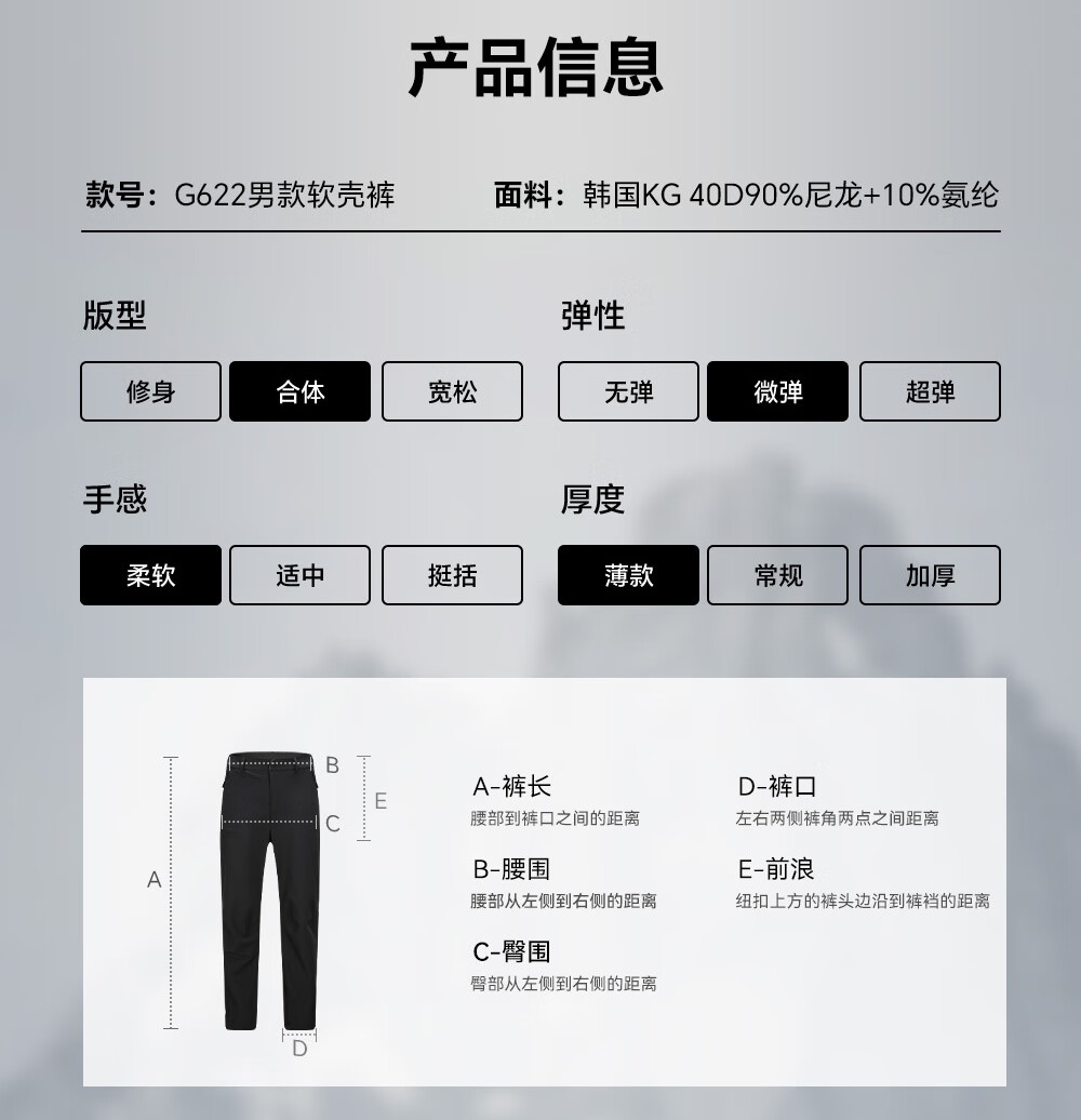 天石鹅铠甲户外登山徒步透气防风耐磨运动软壳裤男款G622 石墨灰 3XL