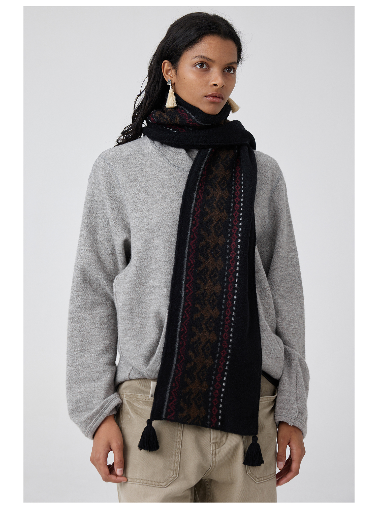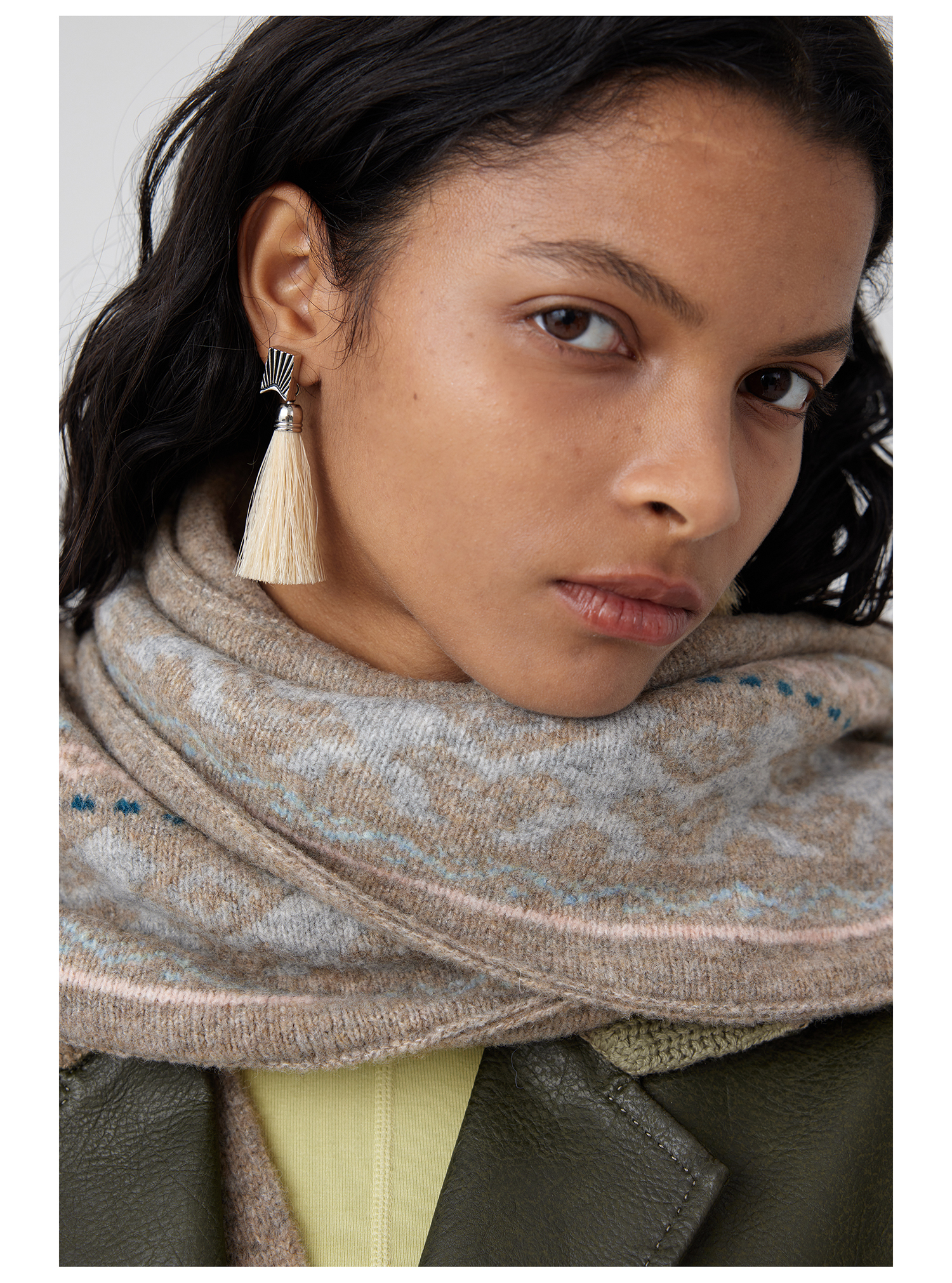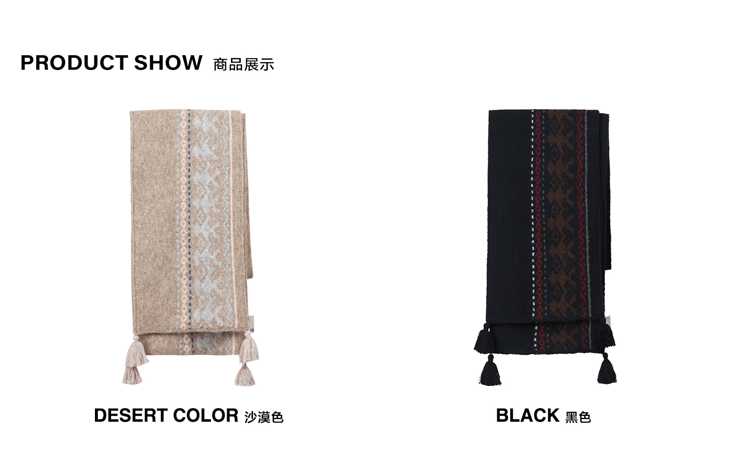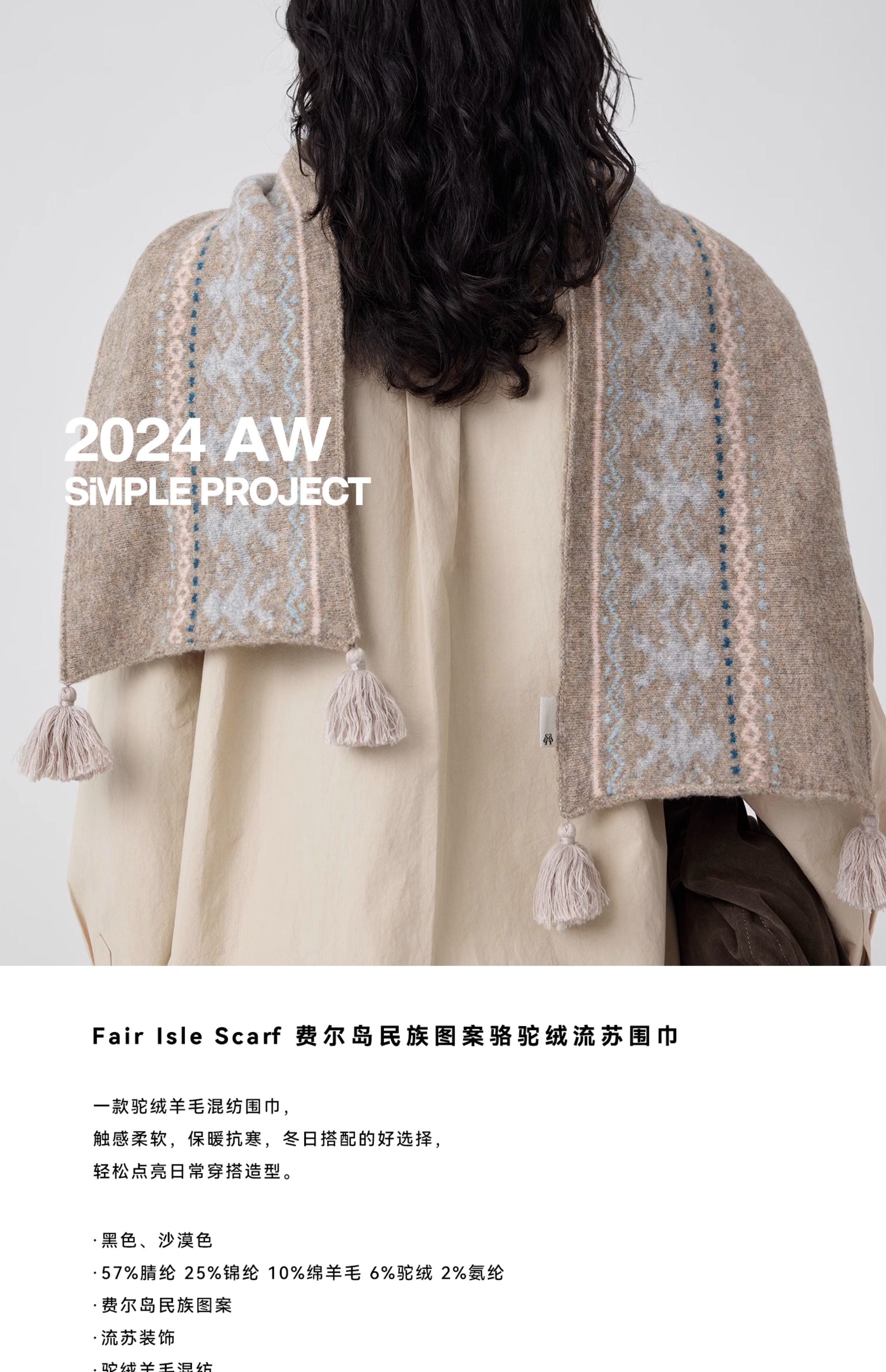 Simple Project/A24250/费尔岛民族图案骆驼绒流苏围巾