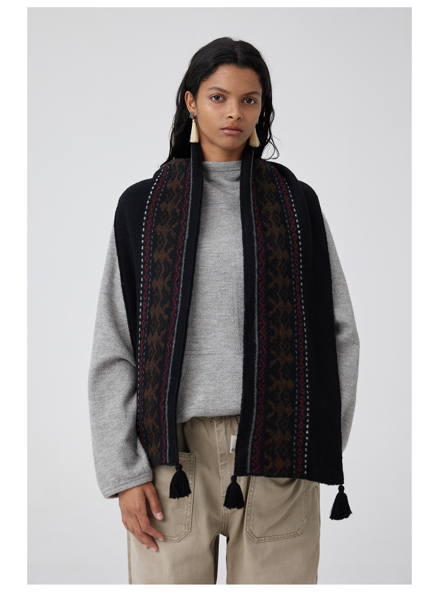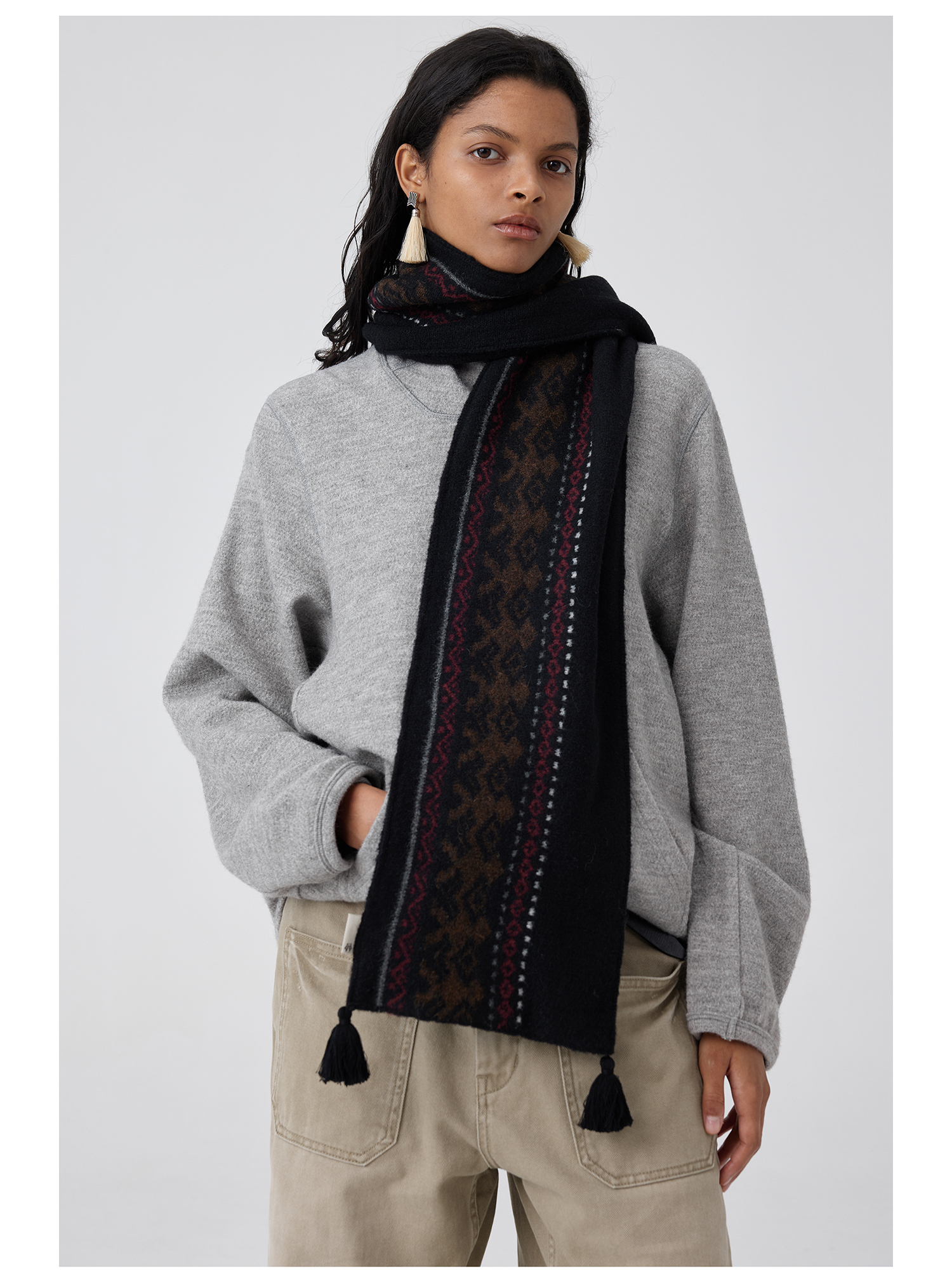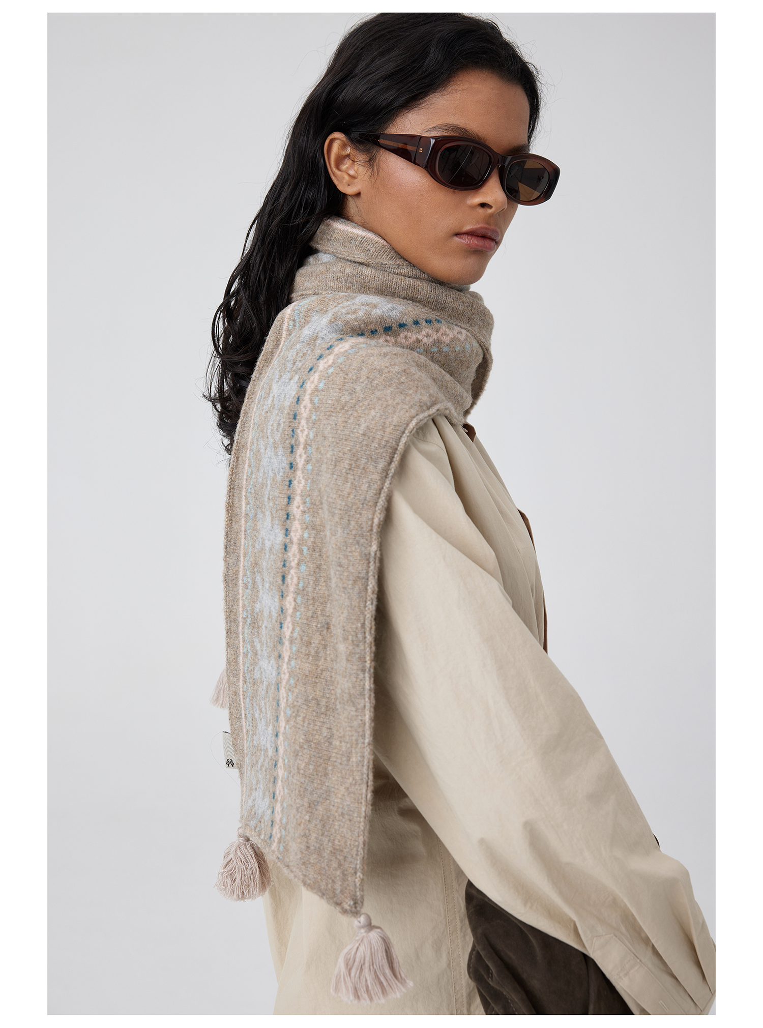 Simple Project/A24250/费尔岛民族图案骆驼绒流苏围巾