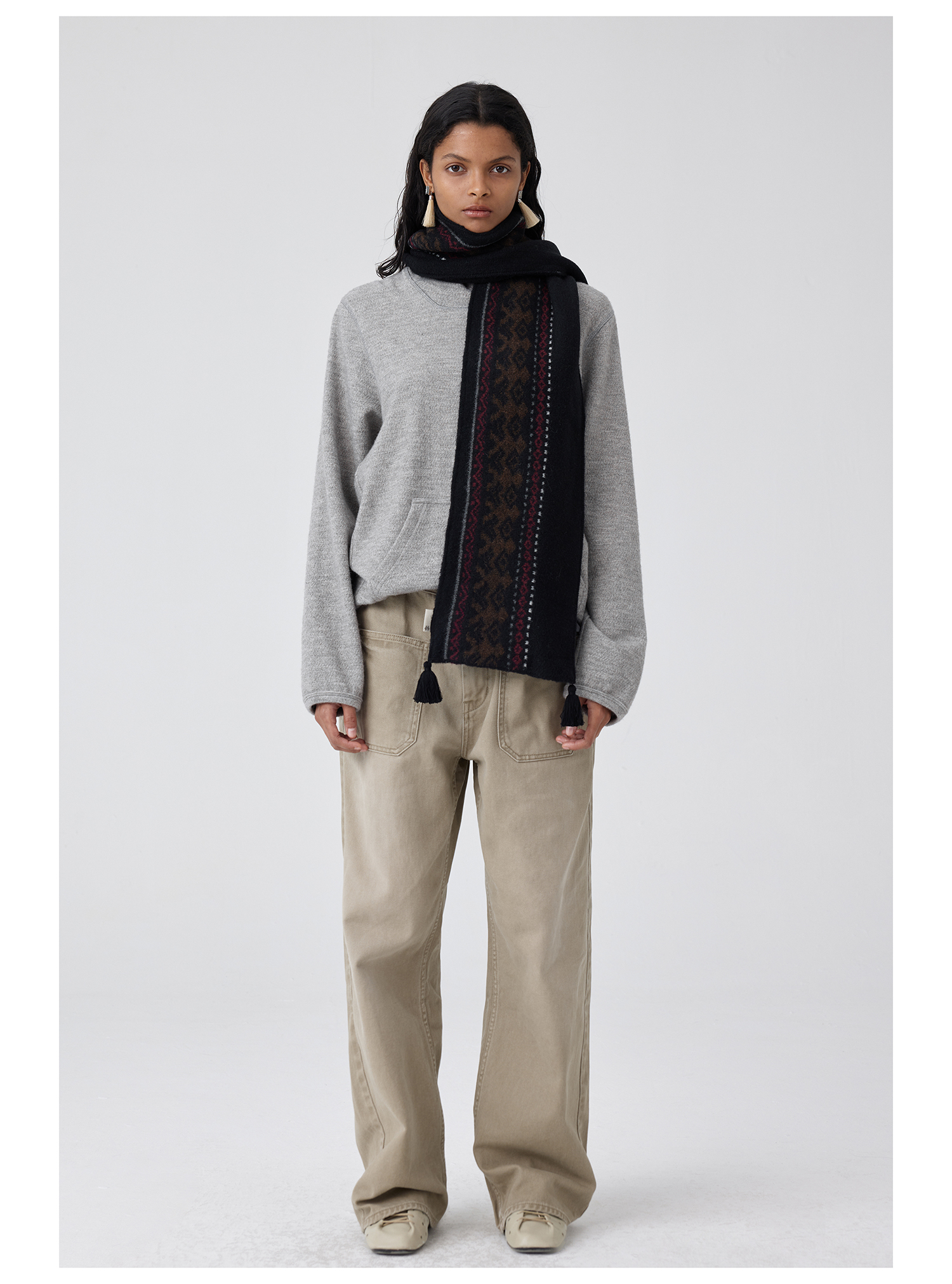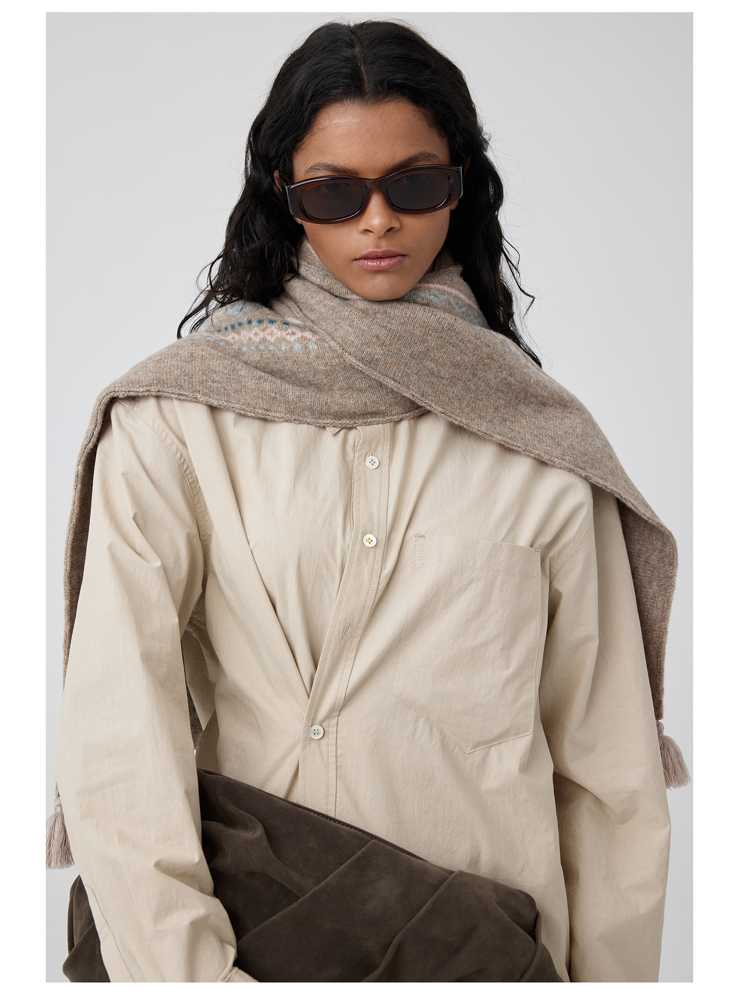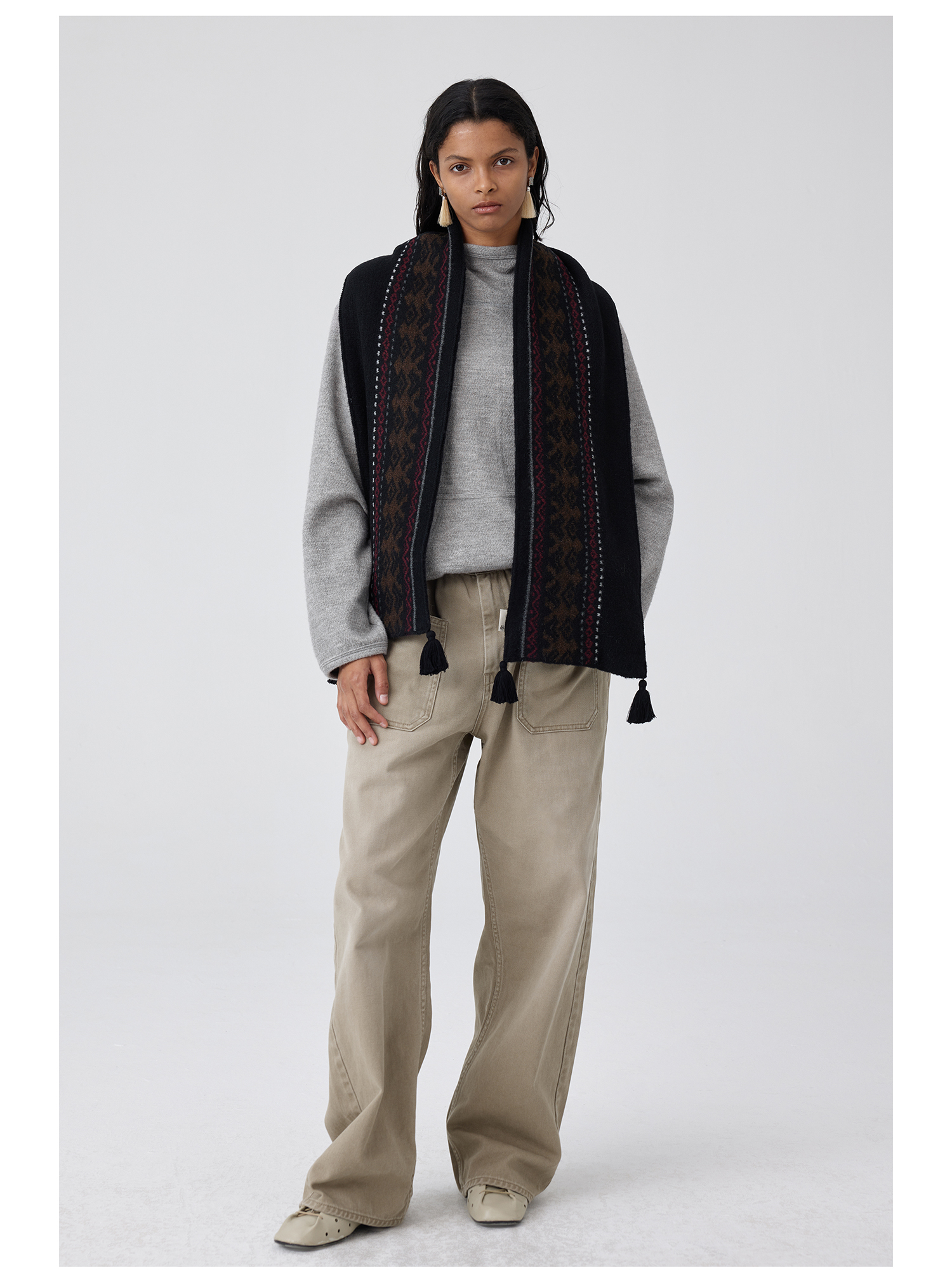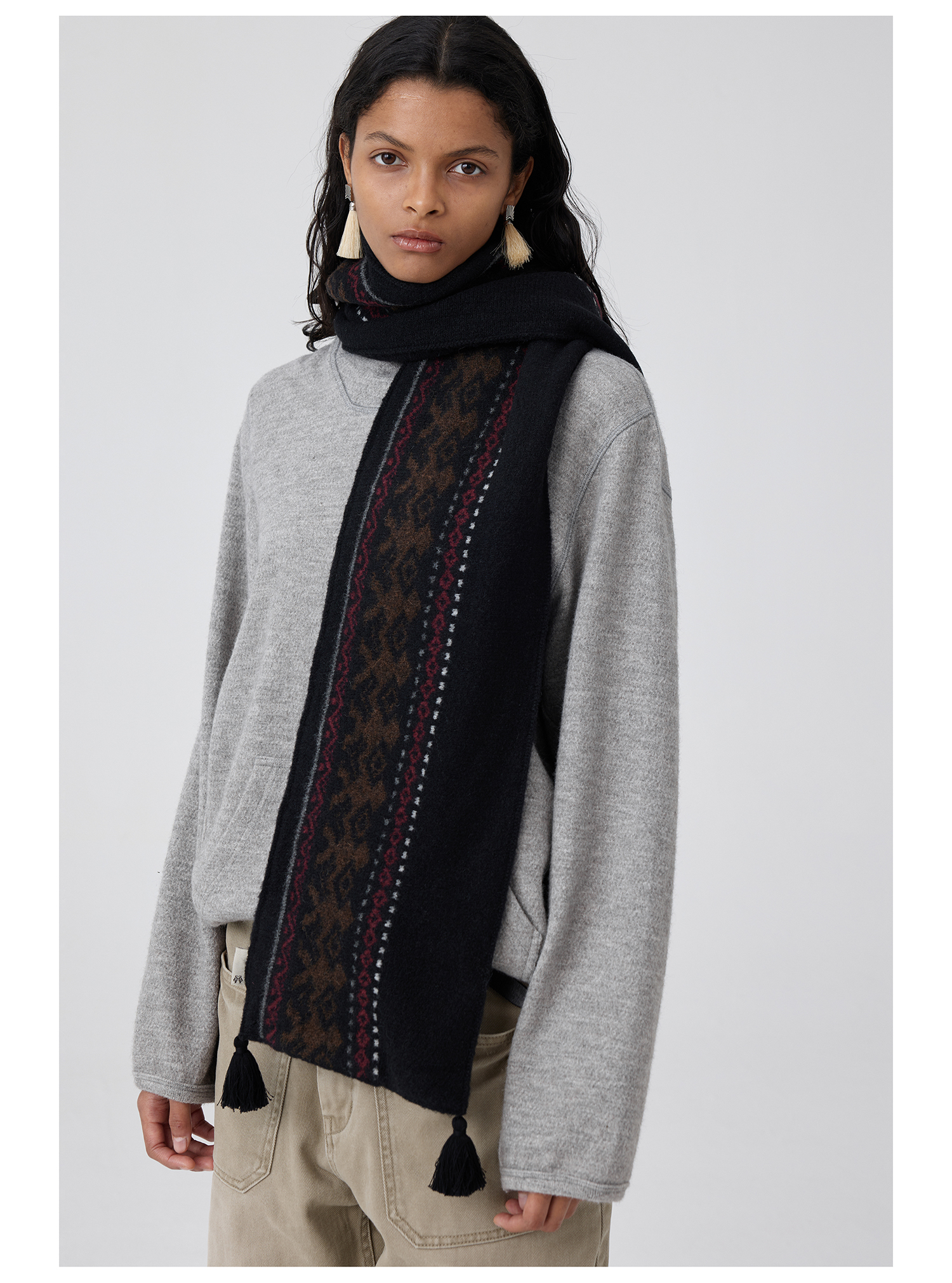 Simple Project/A24250/费尔岛民族图案骆驼绒流苏围巾